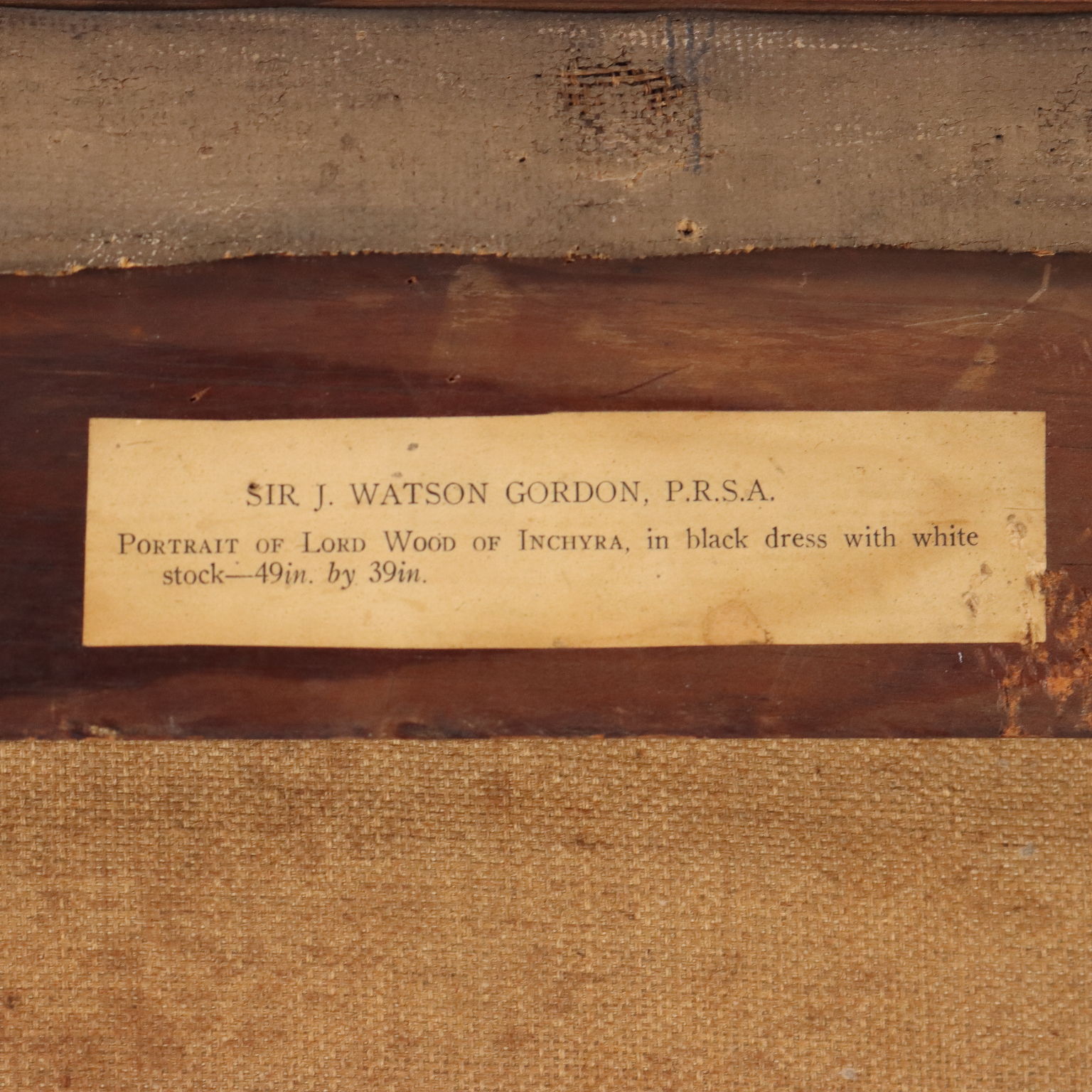 Olio su tela. Al retro è presente cartiglio con attribuzione e titolo dell'opera. Sir John Watson Gordon si affermò come ritrattista, realizzando nella sua vita i ritratti di moltissimi personaggi inglesi illustri, e divenendo anche pittore di corte. Il nobiluomo qui ritratto appartiene alla casata dei Wood di Inchyra, località nello Perthshire in Scozia. Il dipinto è presentato in cornice.