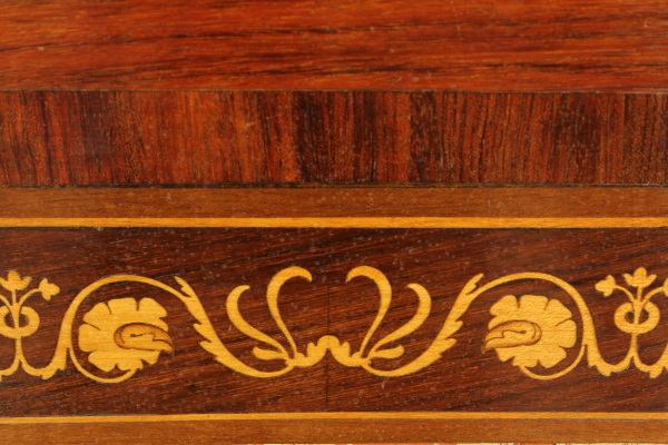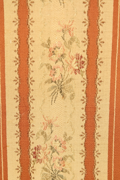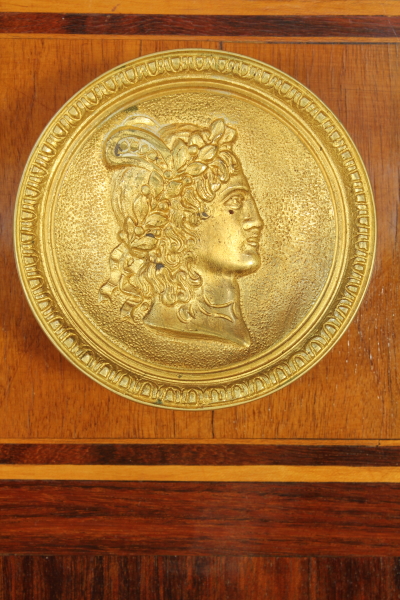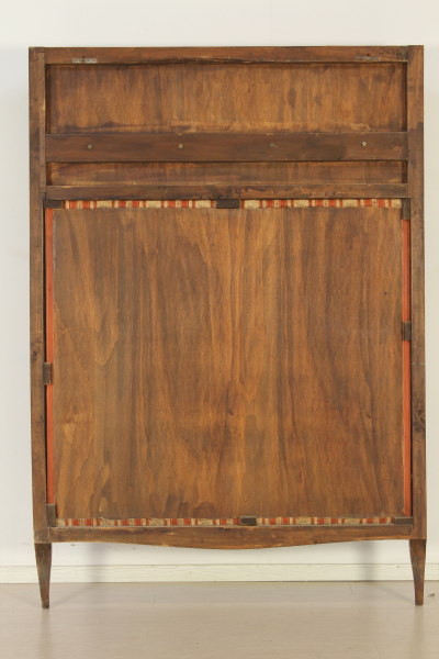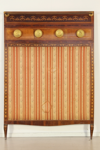 Appendiabiti intarsiato secondo il gusto lombardo neoclassico; stoffa centrale e appendini a forma di medaglione in bronzo dorato.