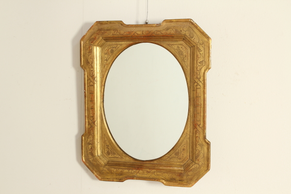Specchiera a cabaret con incisioni nella doratura come decoro.
