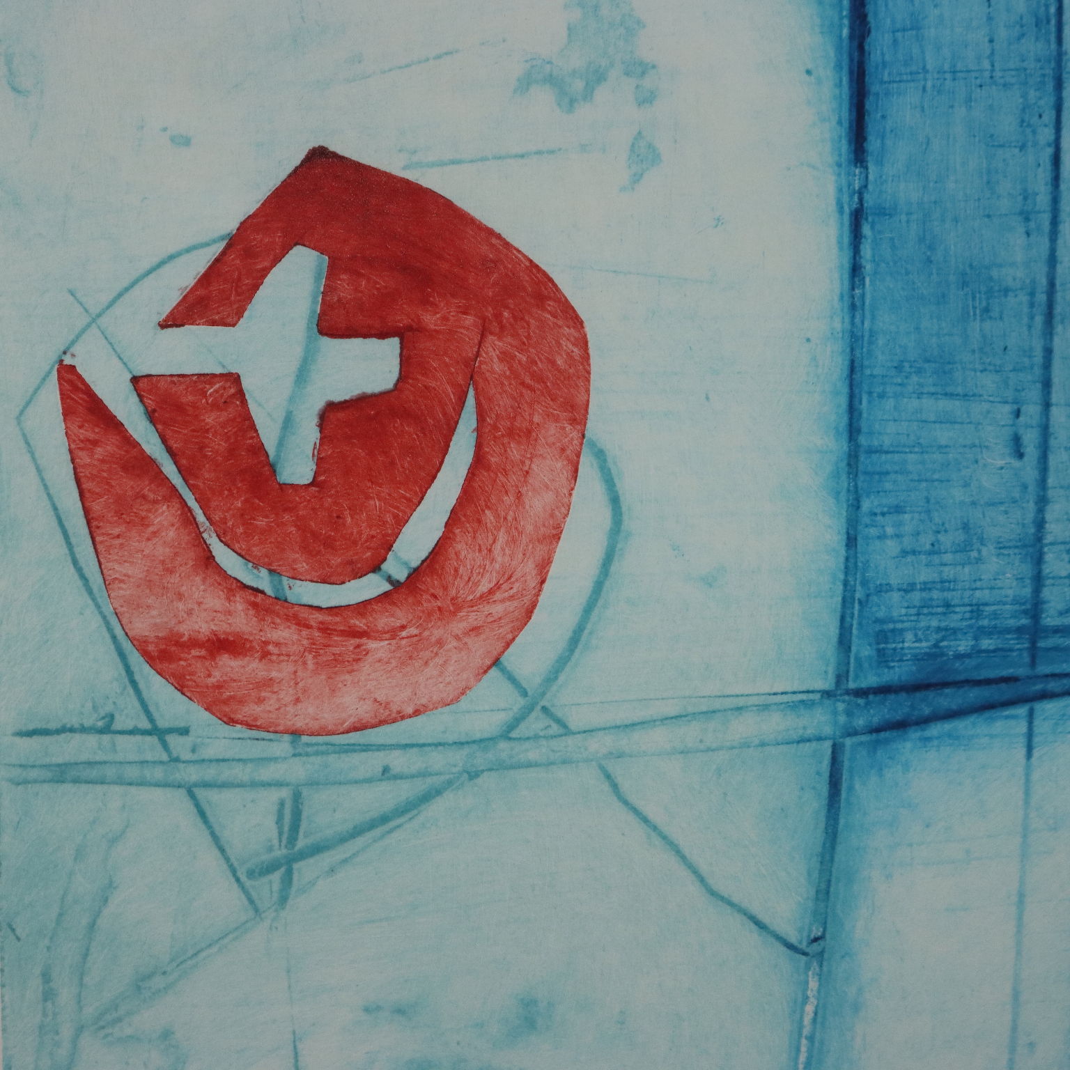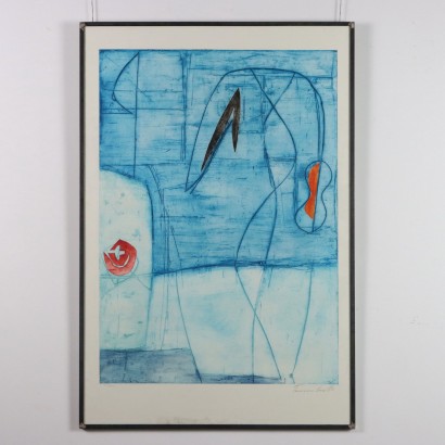 Acquaforte. Firmata in basso a destra, numerata n. XVI/XXV in basso a sinistra. Tommaso Cascella vive i linguaggi artistici come un'espressione naturale della propria persona. La sua pittura è incline a una trasposizione tridimensionale in simbiosi con la tecnica scultorea. Le intense composizioni cromatiche di Cascella sono vere e proprie architetture costellate di simboli, quasi un alfabeto alchemico carico di significati universali. Opera in cornice di metallo.