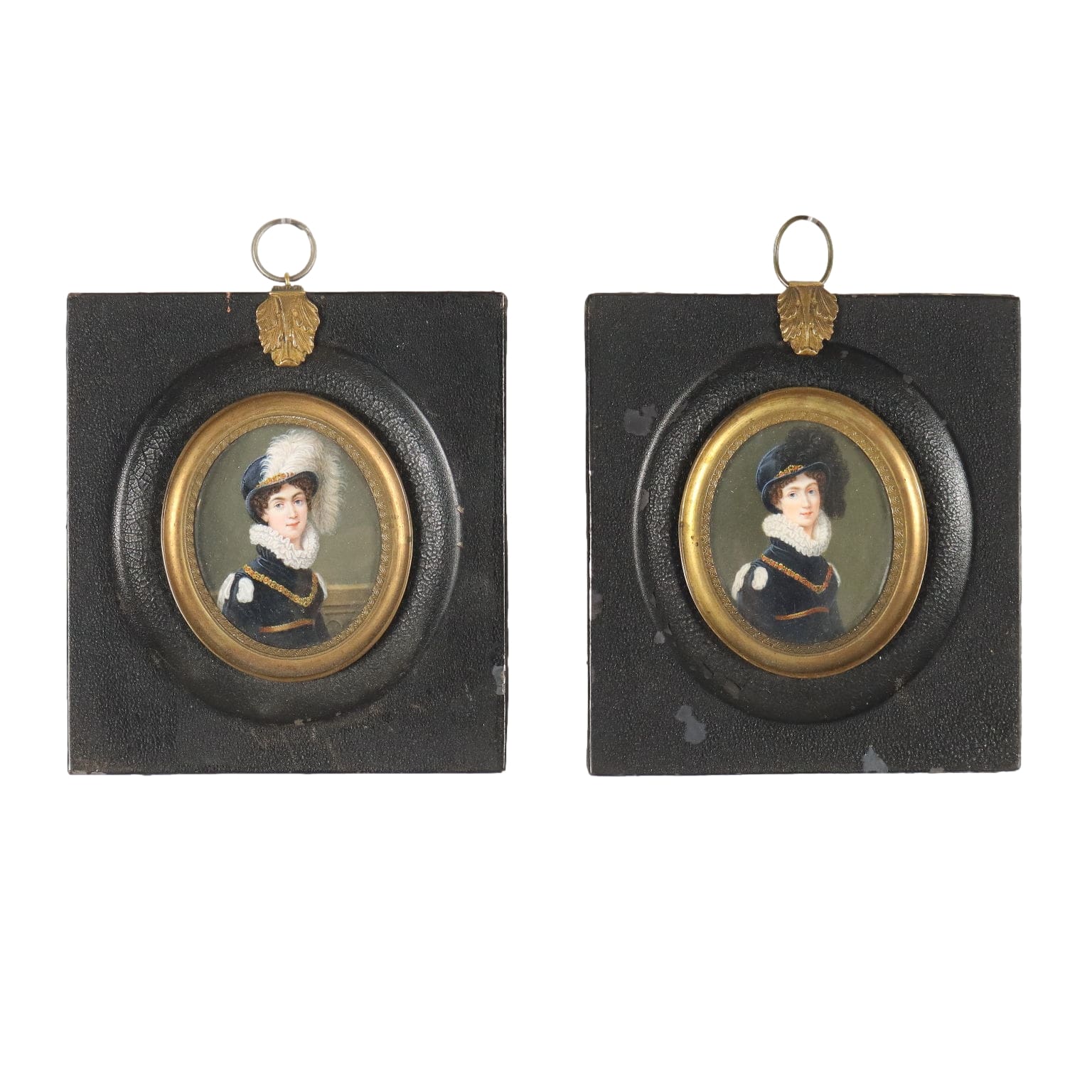 Dipinti Coppia di Miniature con Ritratto di Augusta di Baviera