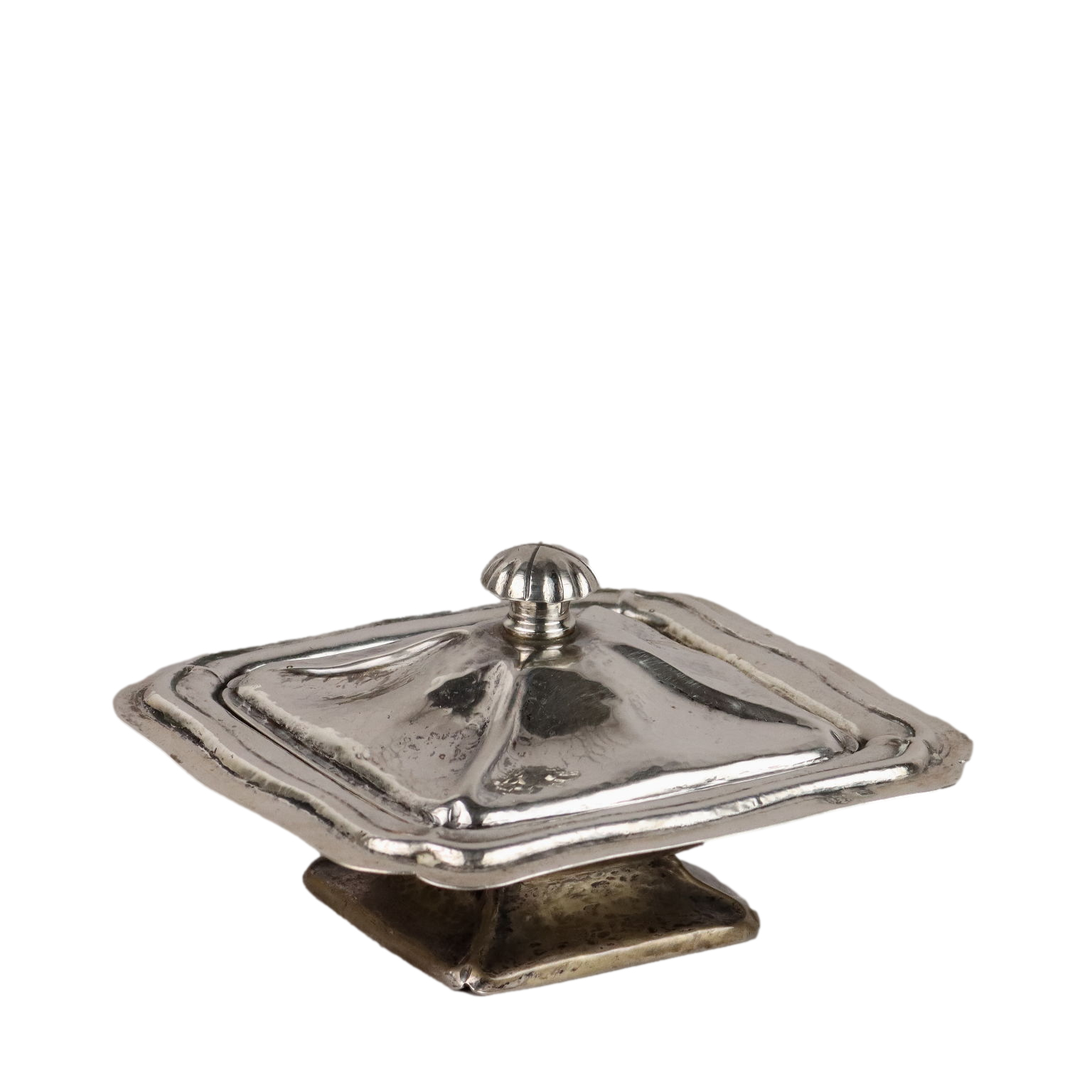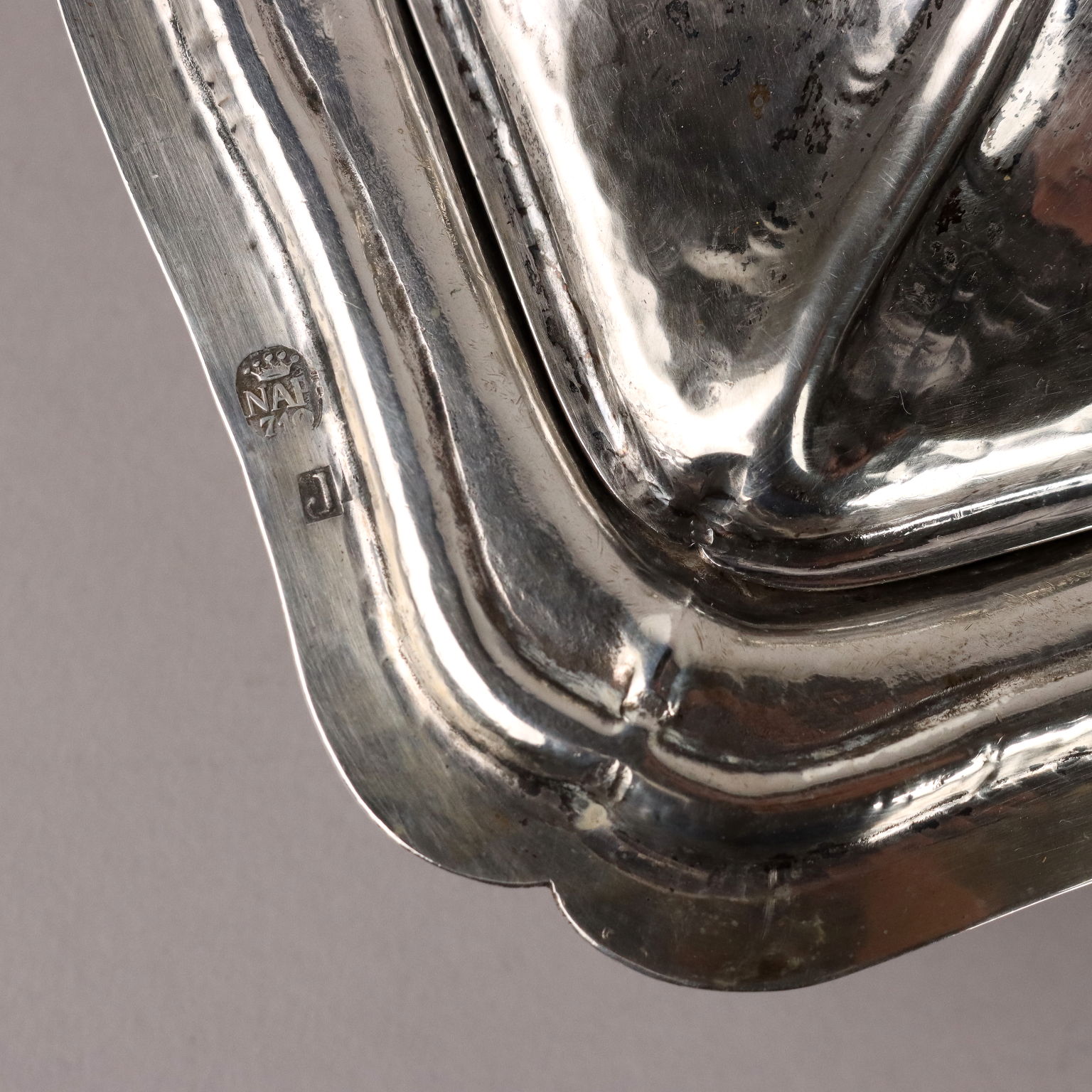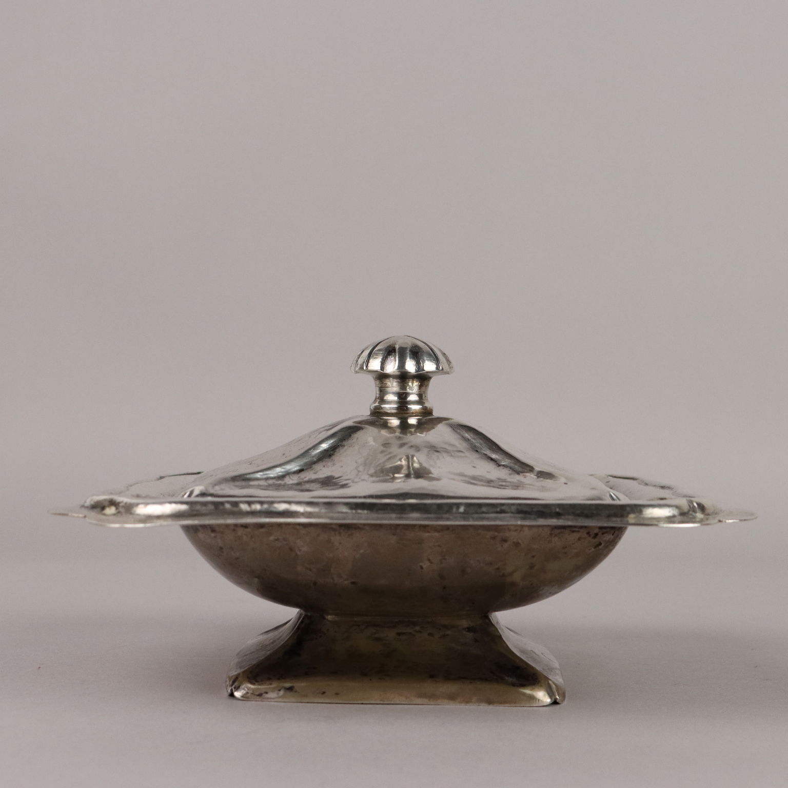 Porta caramelle in argento sbalzato a bordo mosso. Marchi dell'argento incussi. Grammi 530.