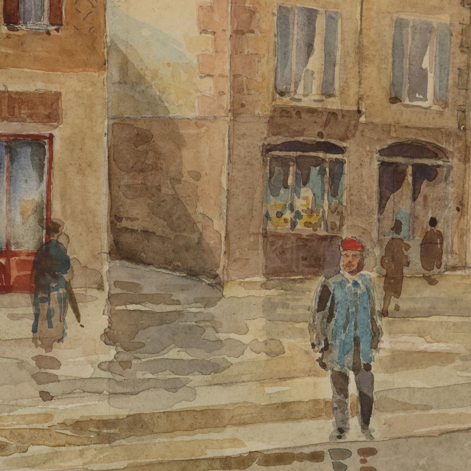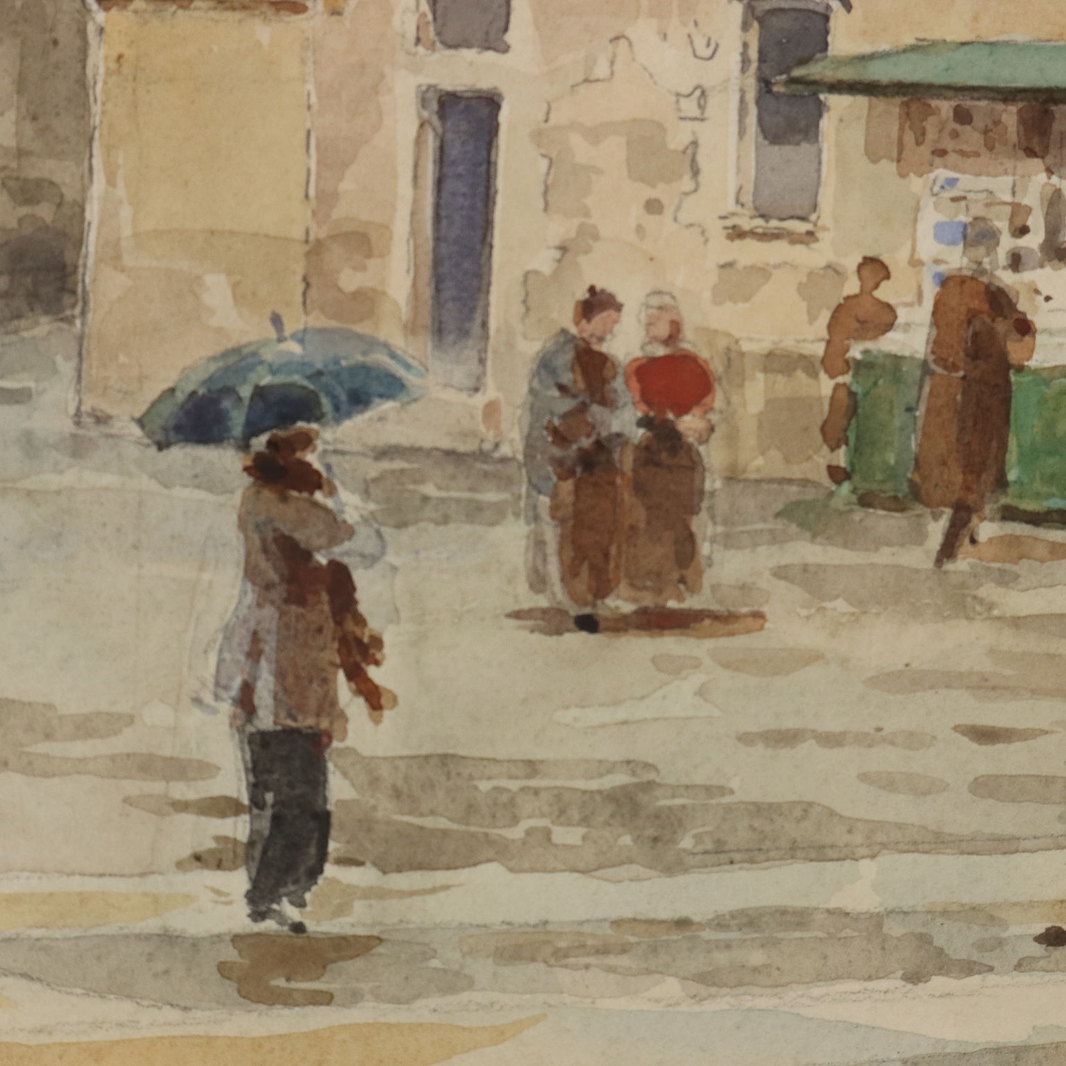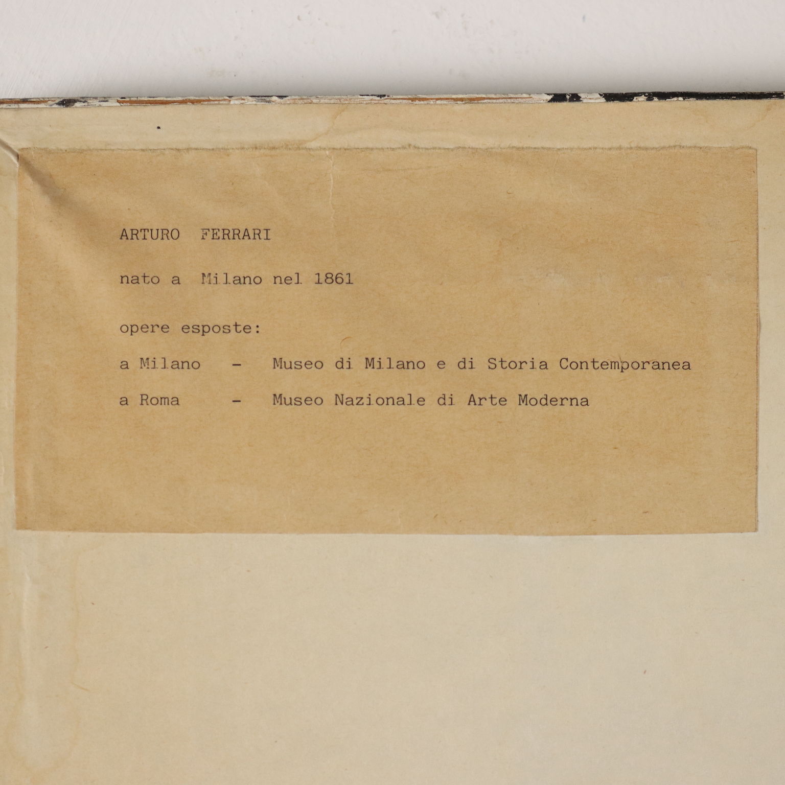 Acquarello su carta. Firmato in basso a sinistra. Etichetta in metallo sulla cornice con il titolo e la data dell' opera. Arturo Ferrari fu un pittore milanese che fece delle vedute prospettiche milanesi il soggetto ricorrente all'interno della sua vasta produzione di oli e acquerelli. In breve tempo divenne l'artefice di una rievocazione poetica e sentimentale della vecchia Milano che nel passaggio verso il Novecento, complice una radicale ristrutturazione edilizia, andava assumendo un nuovo volto. Questo scorcio di Milano propone un particolare di Piazza Vetra con il varco di accesso laterale alle Colonne di San Lorenzo e la cupola della Basilica omonima. L'opera è presentata in cornice in stile.