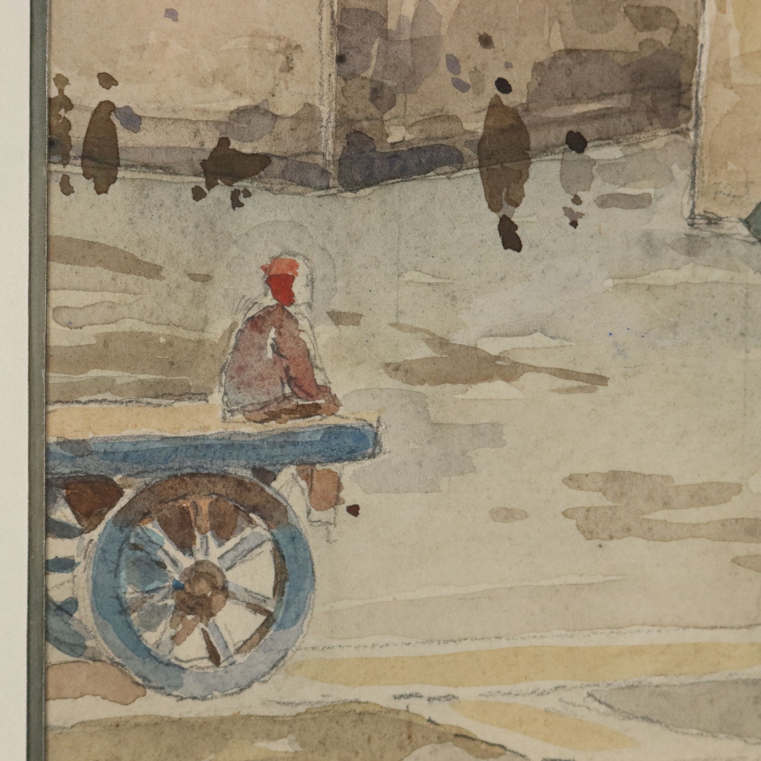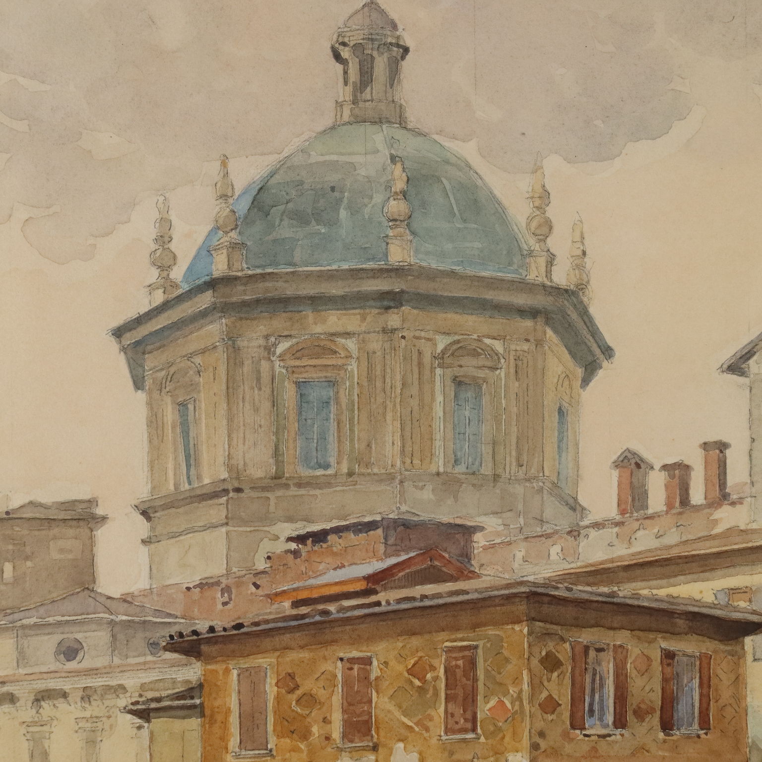 Dipinto Acquarello di Arturo Ferrari - San Lorenzo Milano 1898