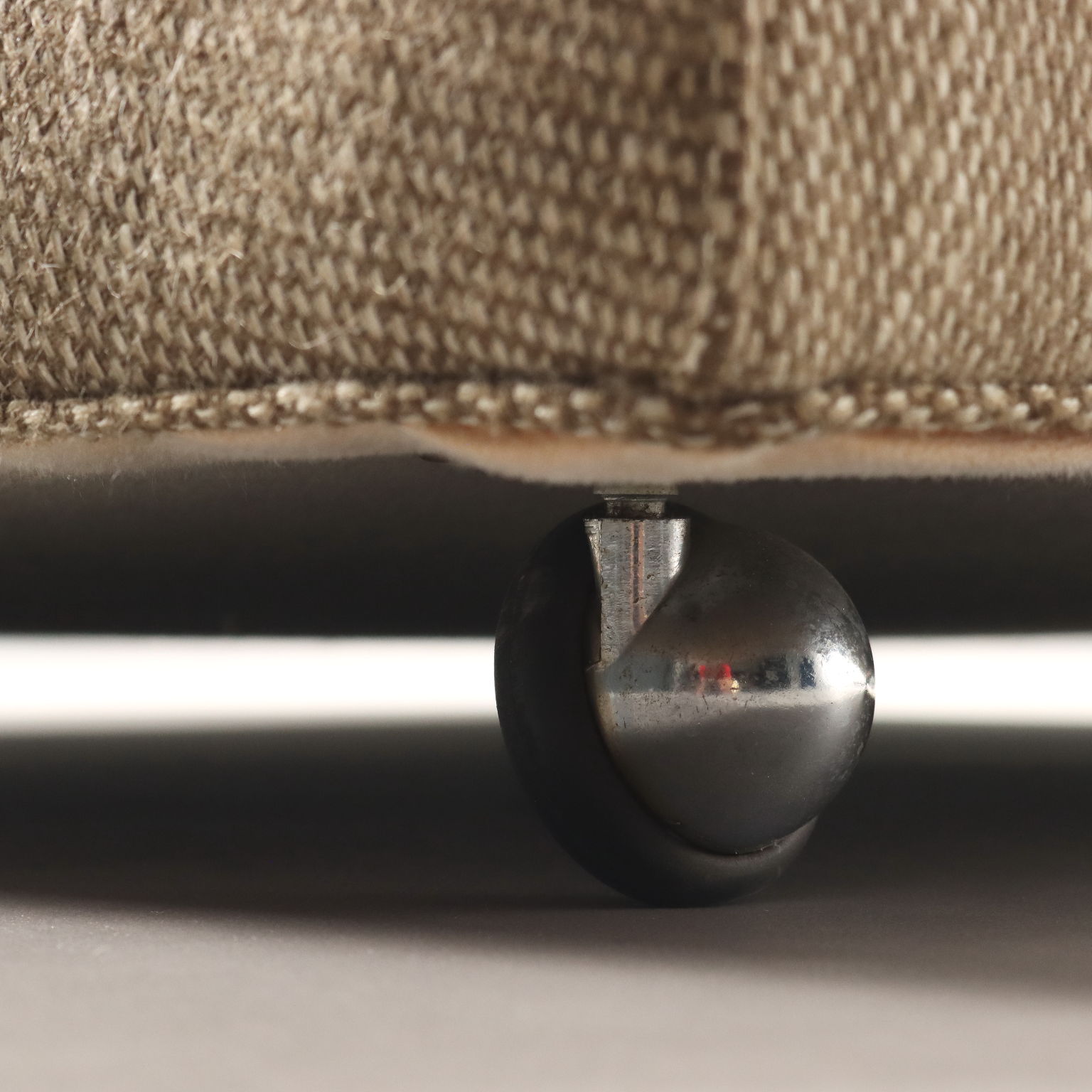 Due grandi poltrone vintage con tessuto originale del periodo nei toni del beige, rotelle e piedi in legno.
