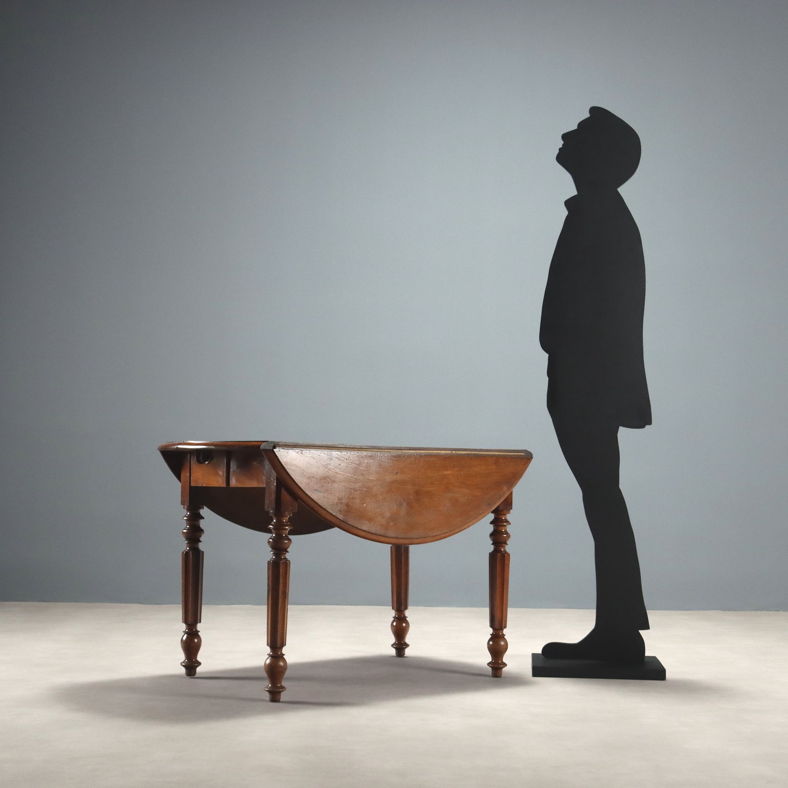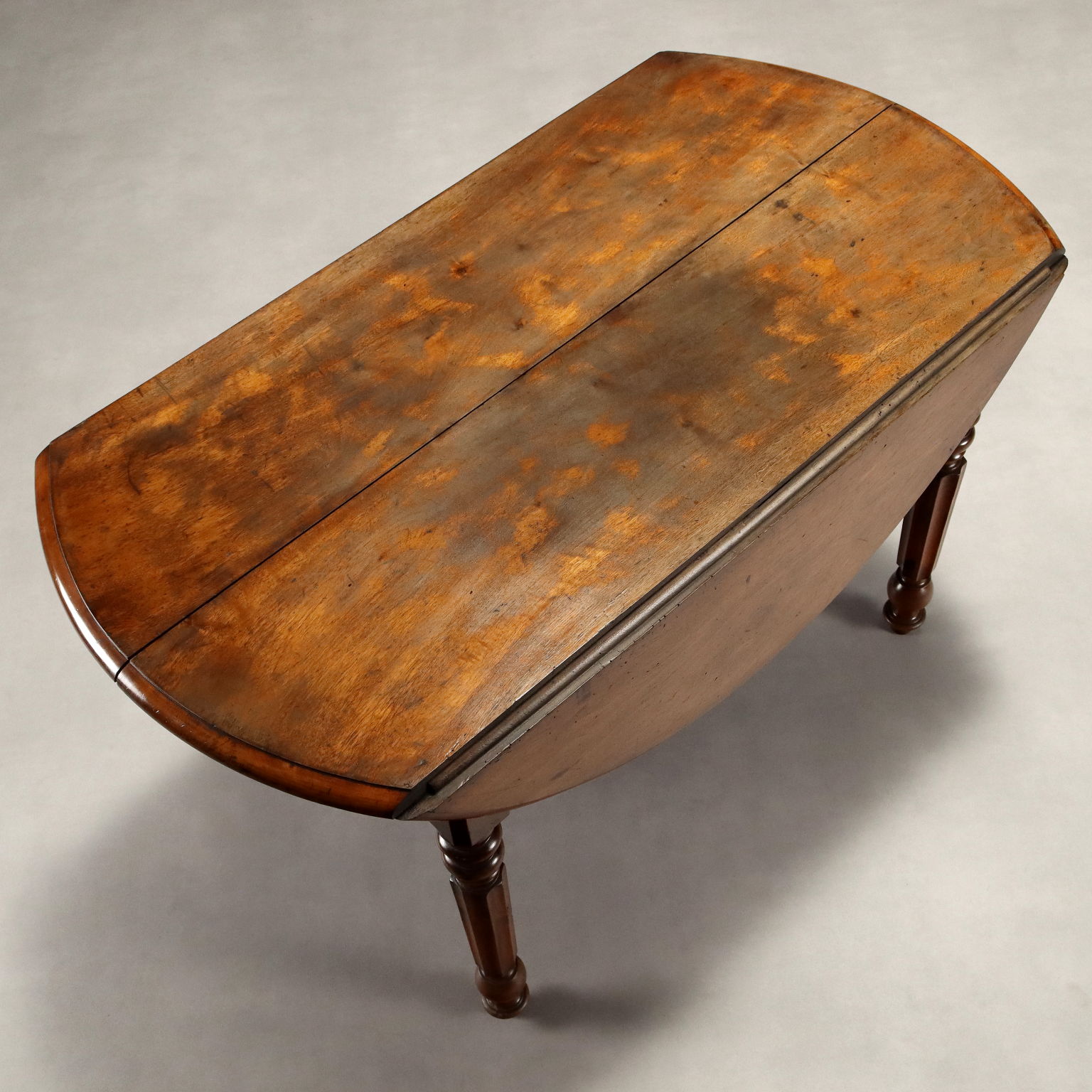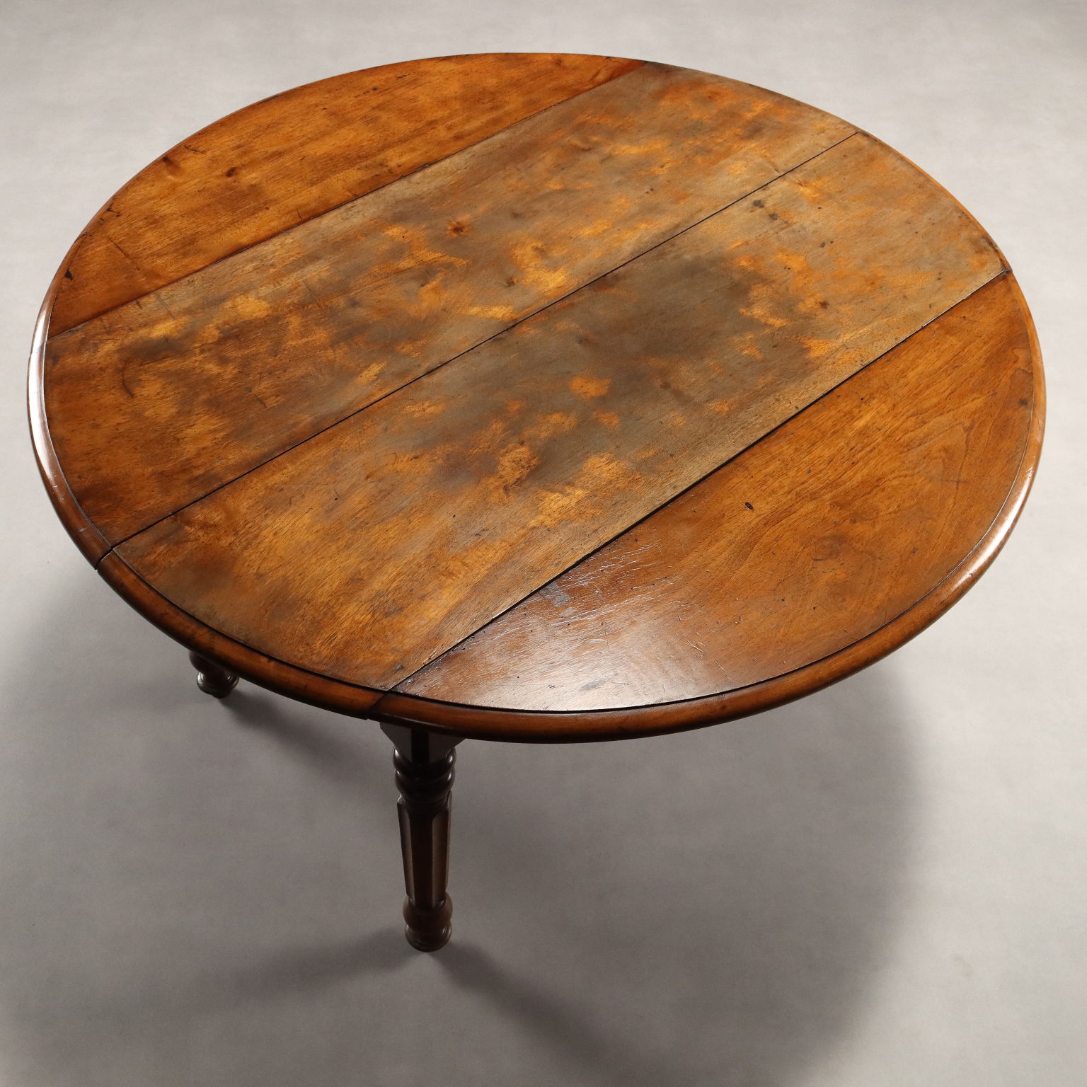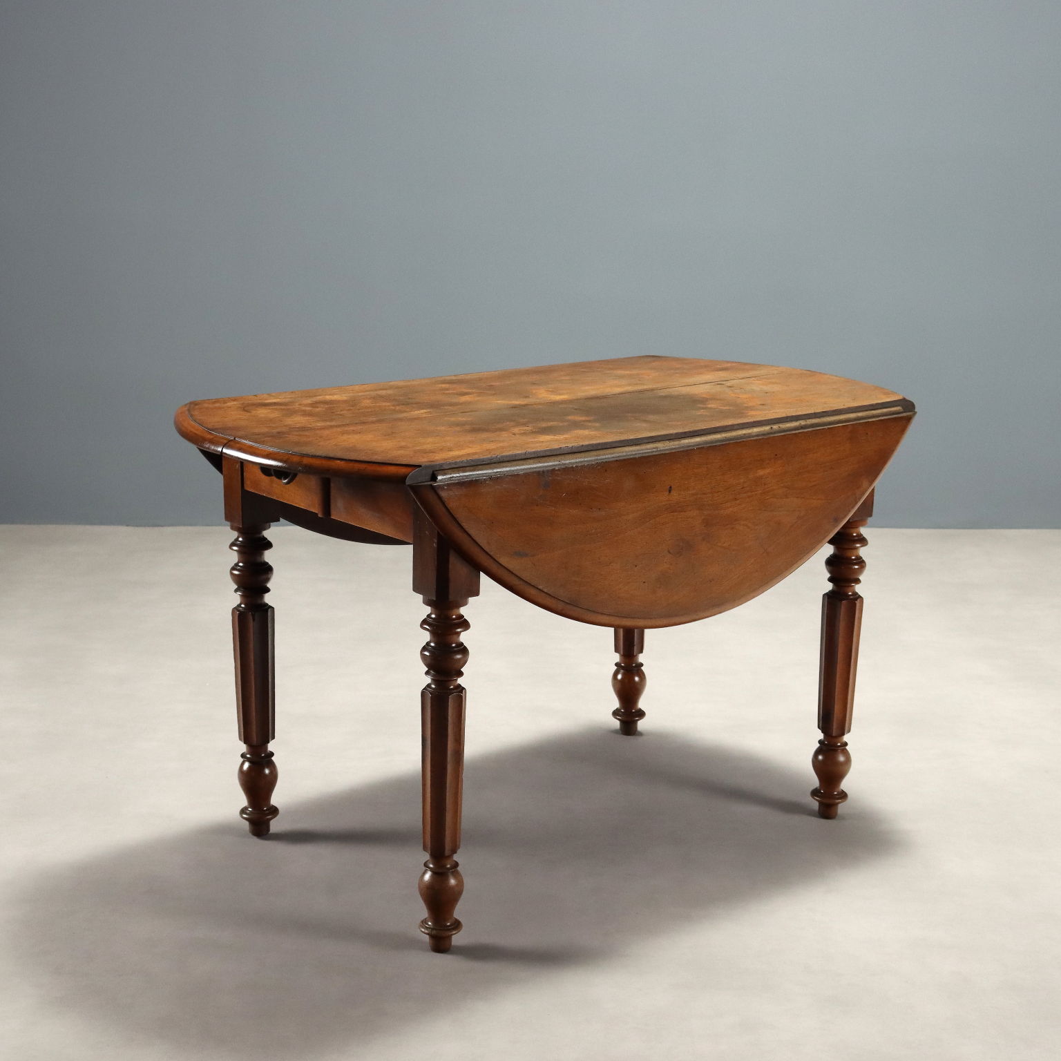 Tavolo a bandelle in noce allungabile, sorretto da quattro gambe tornite e sgorbiate. Prolunghe mancanti. Italia, fine XIX Secolo.