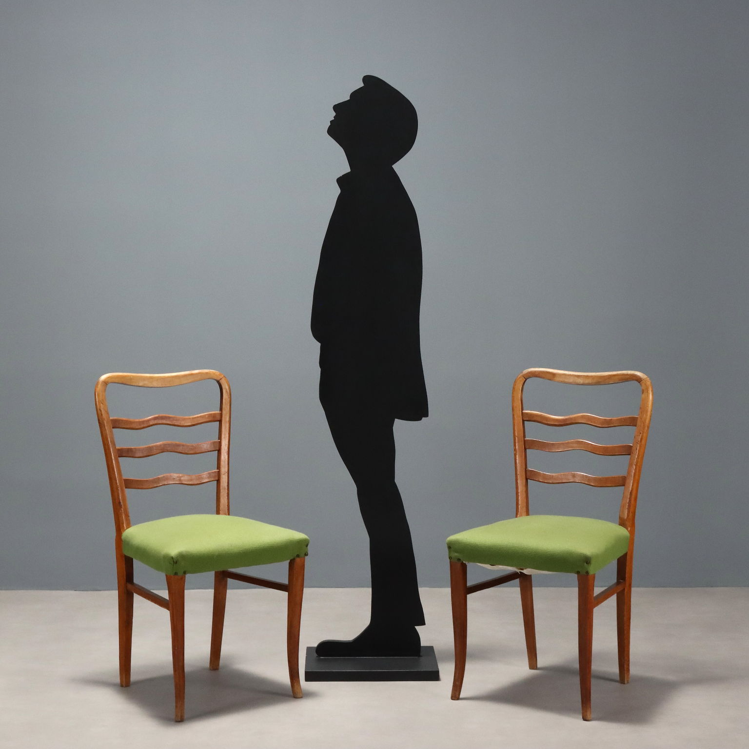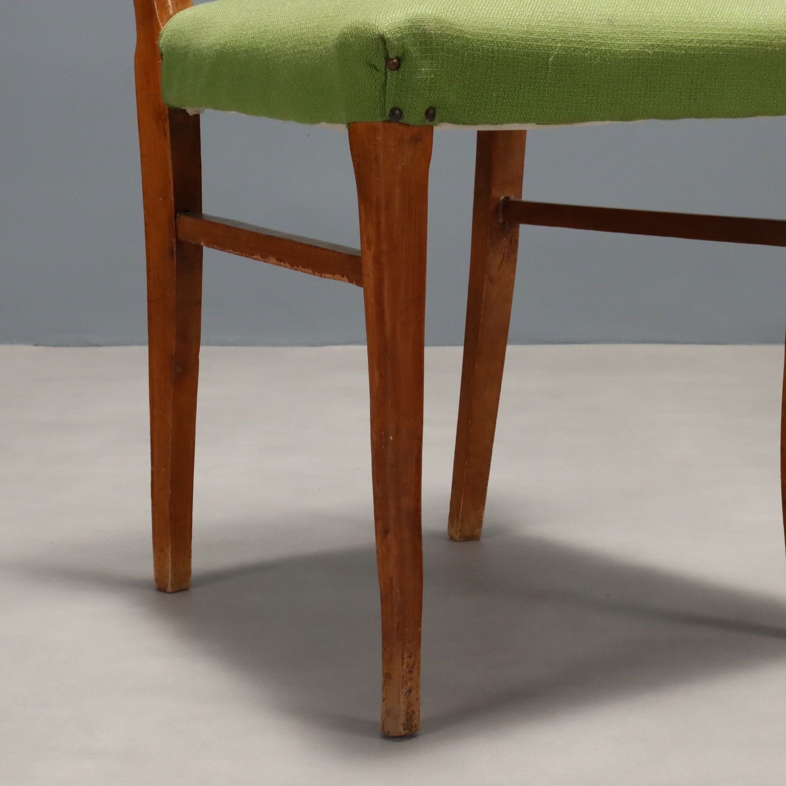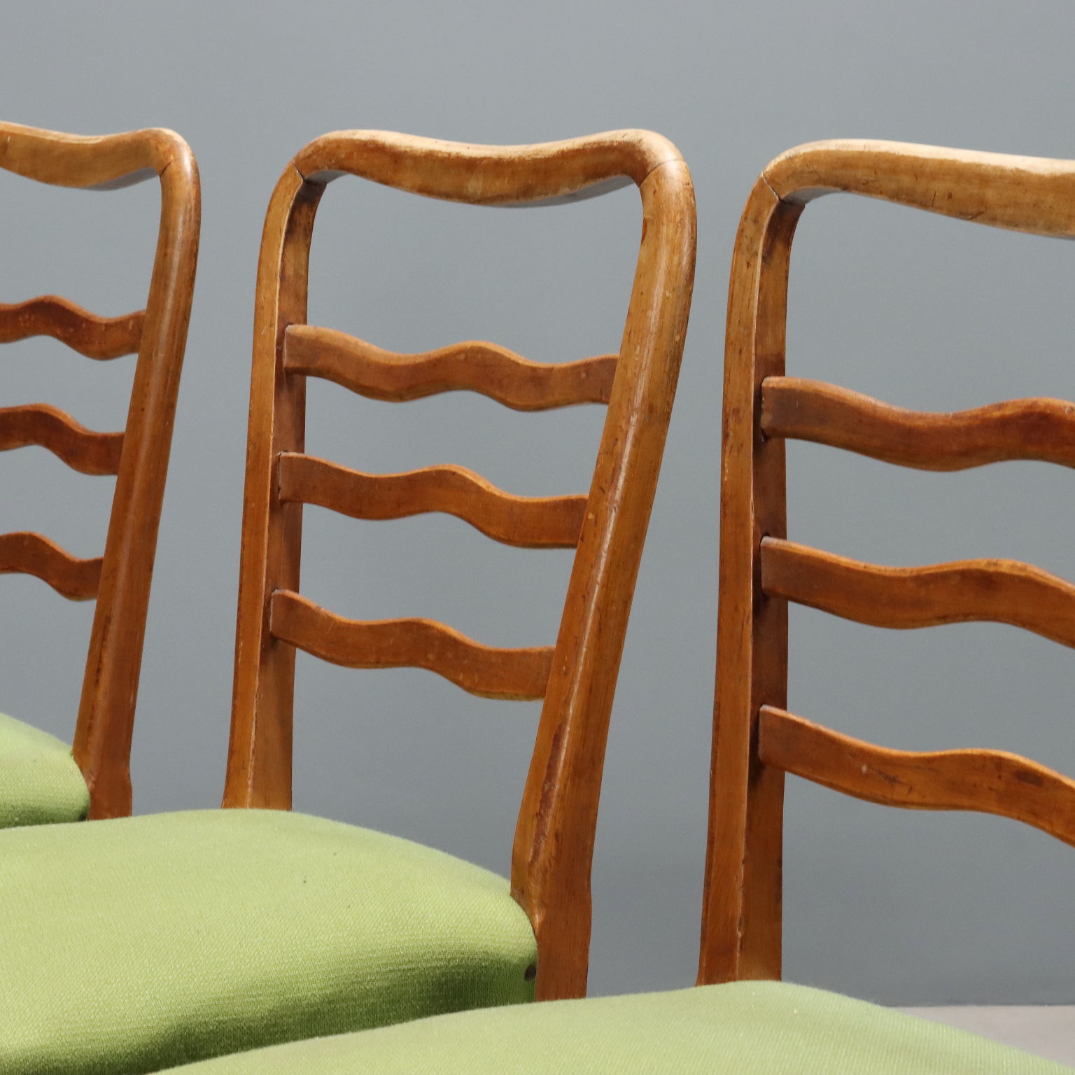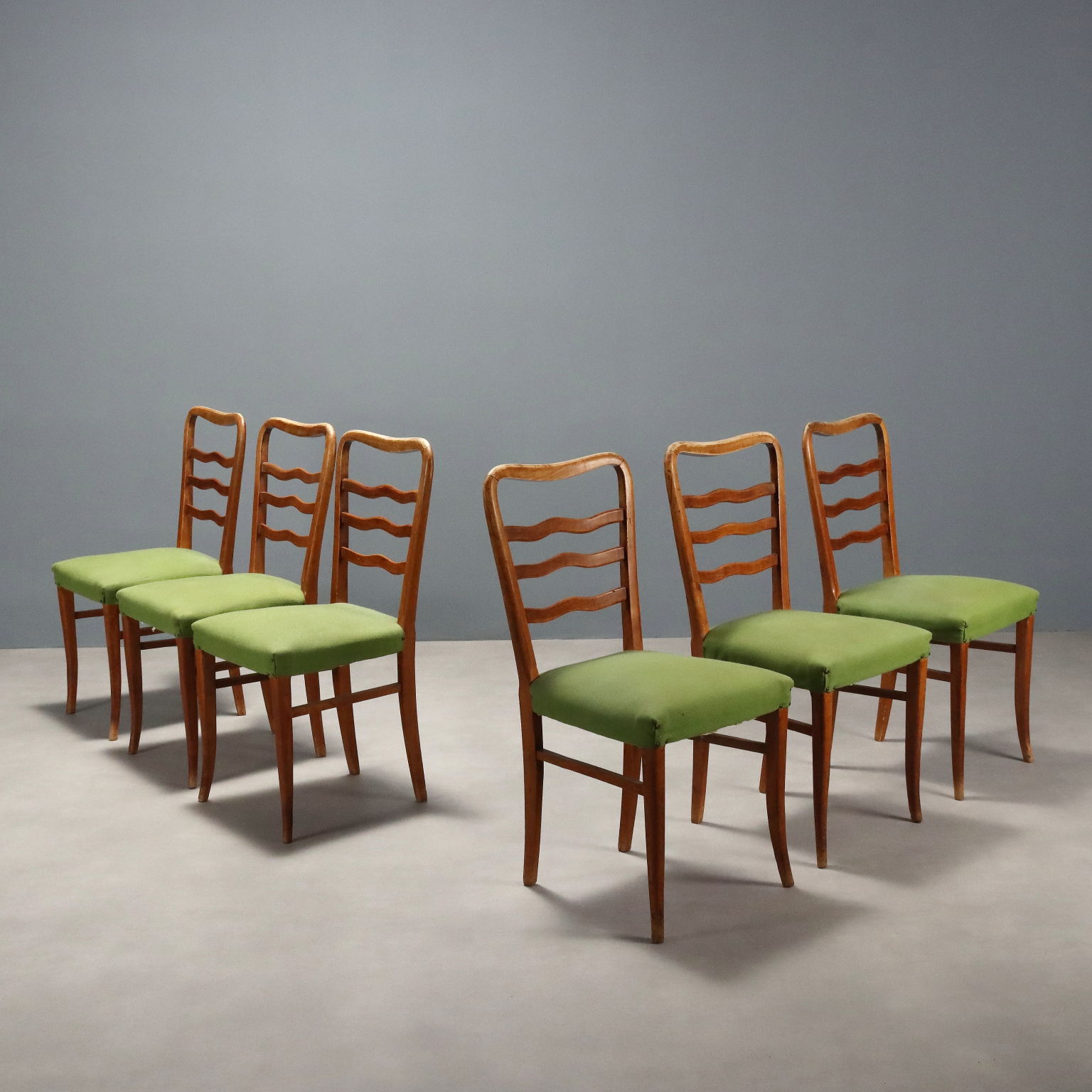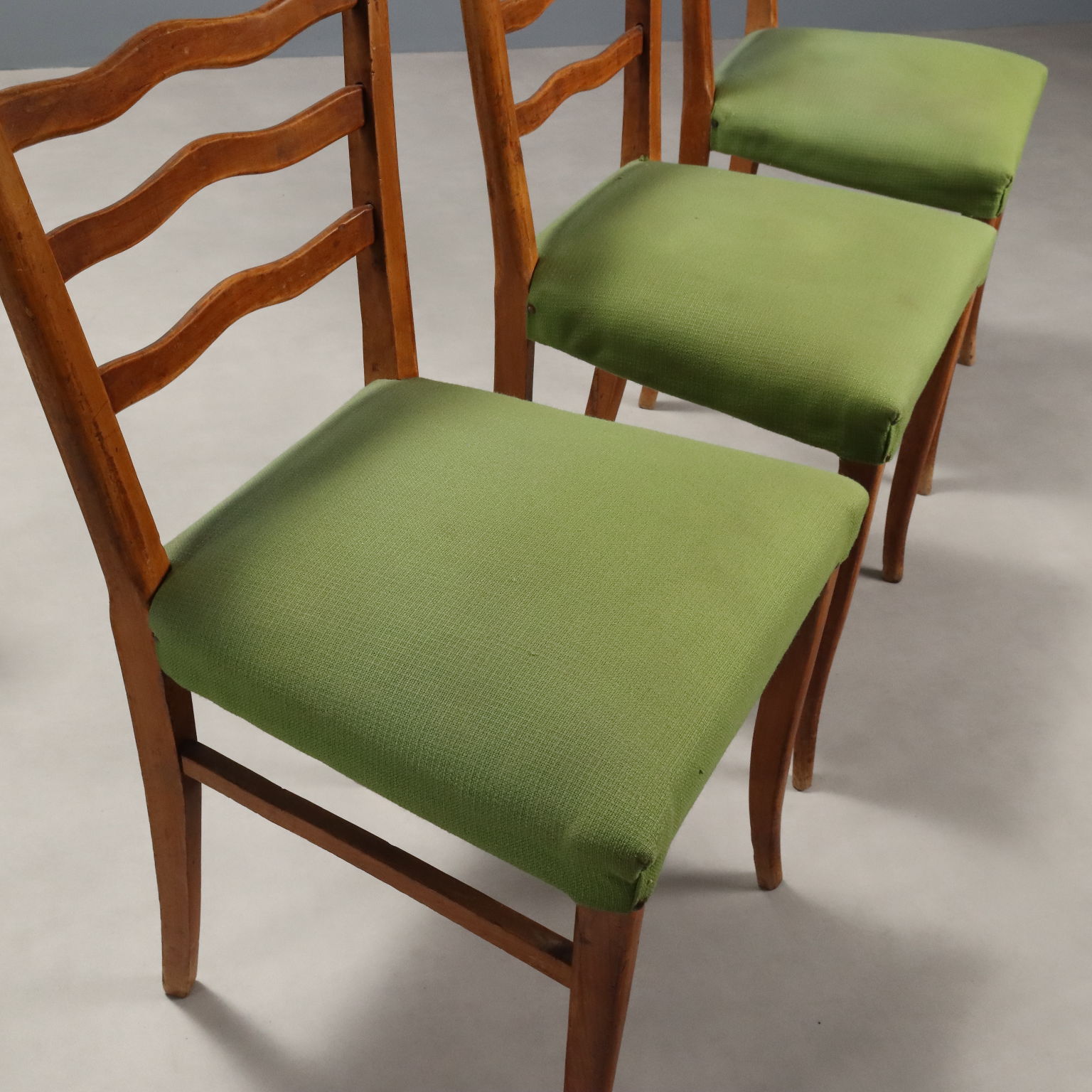 Set di sedie vintage anni '50 nello stile di Paolo Buffa con struttura in legno di faggio con seduta - da rifare - in tessuto verde originale del periodo.