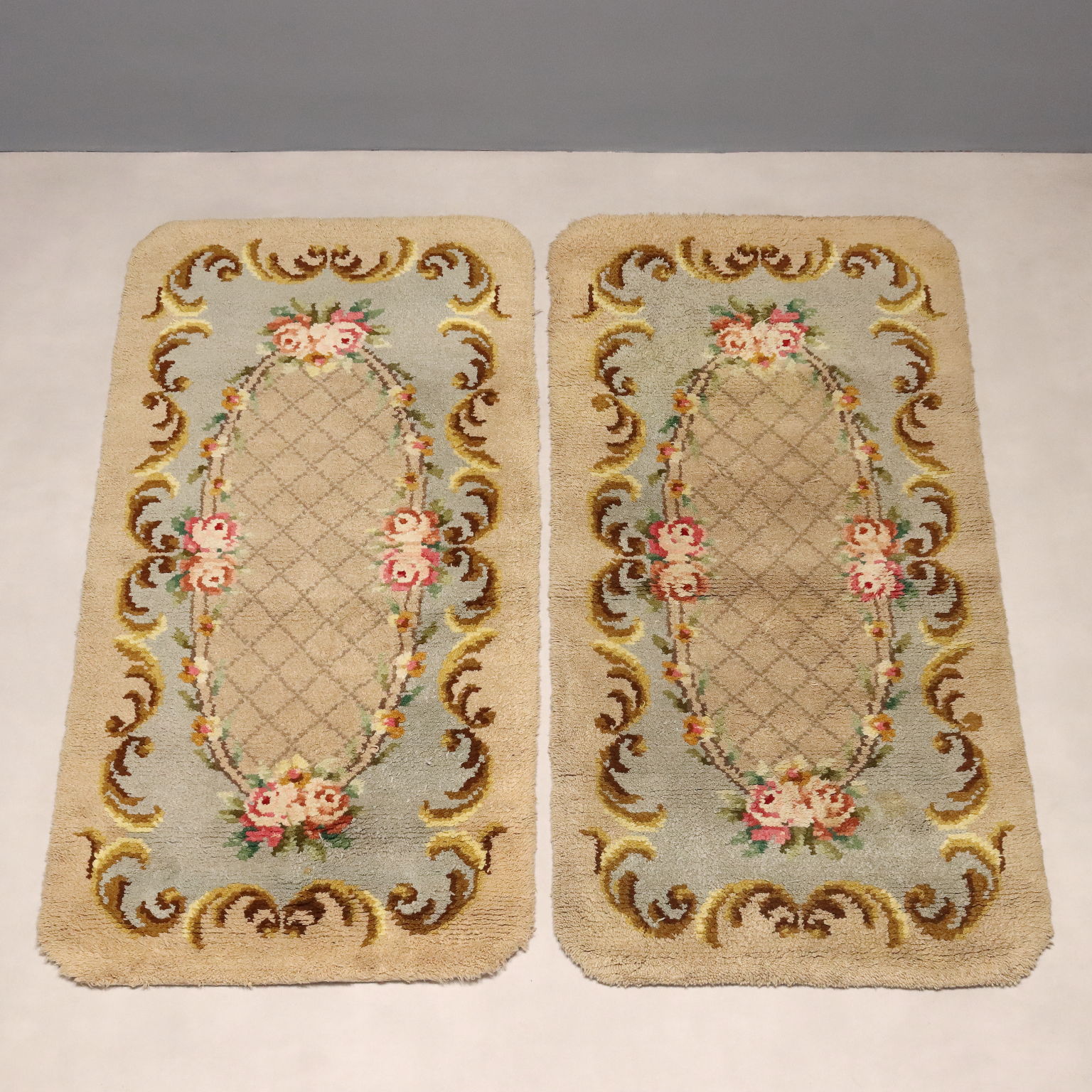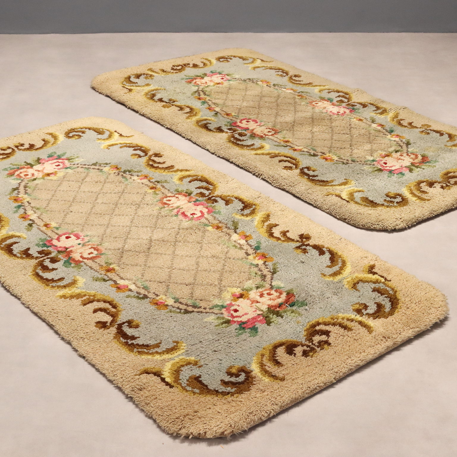 Coppia di Tappeti Aubusson in cotone e lana; nodo grosso. Fabbricazione manuale.