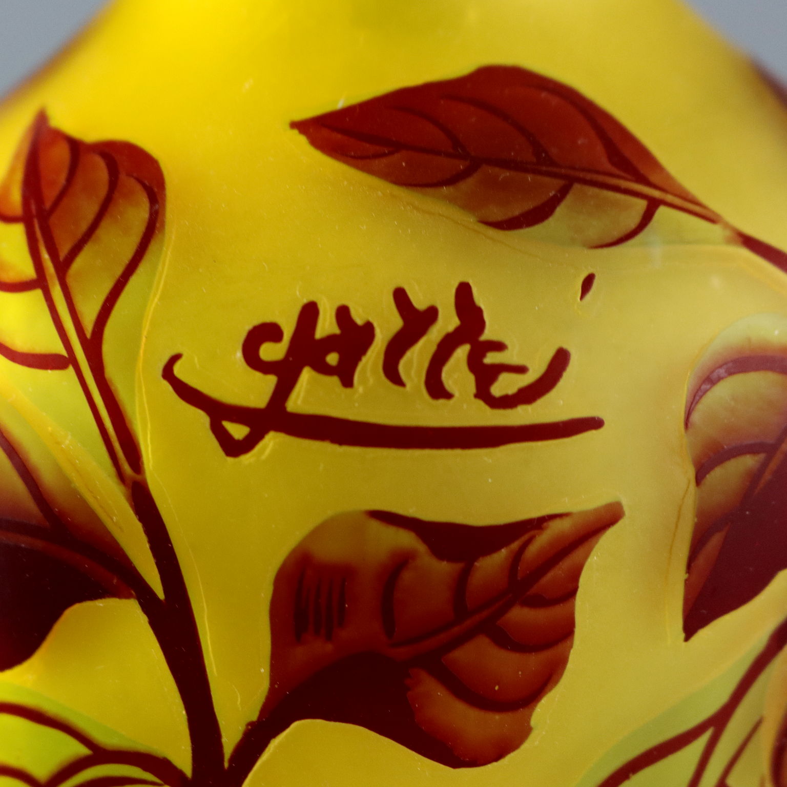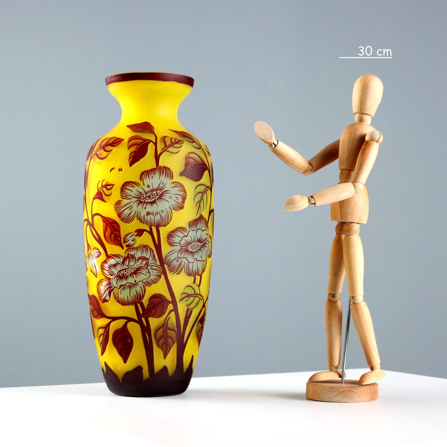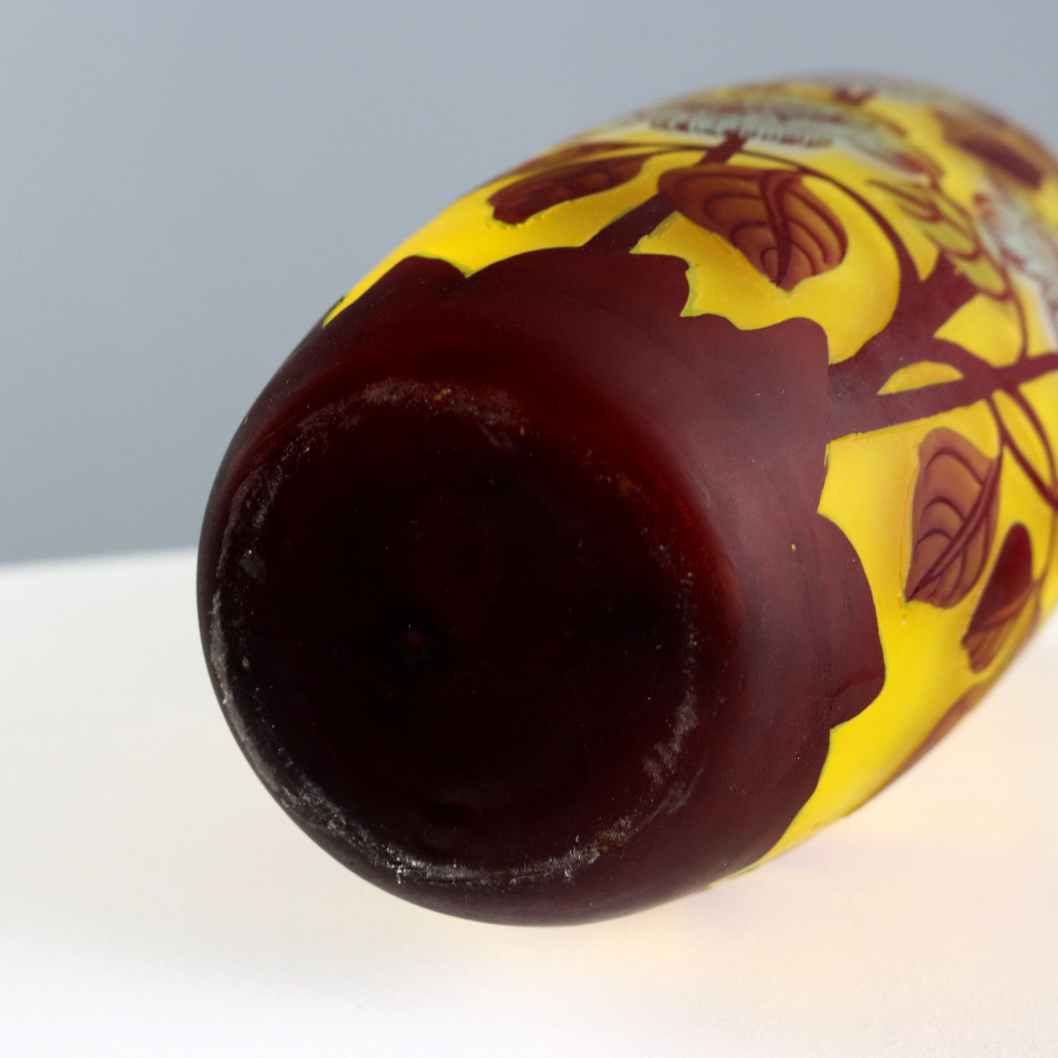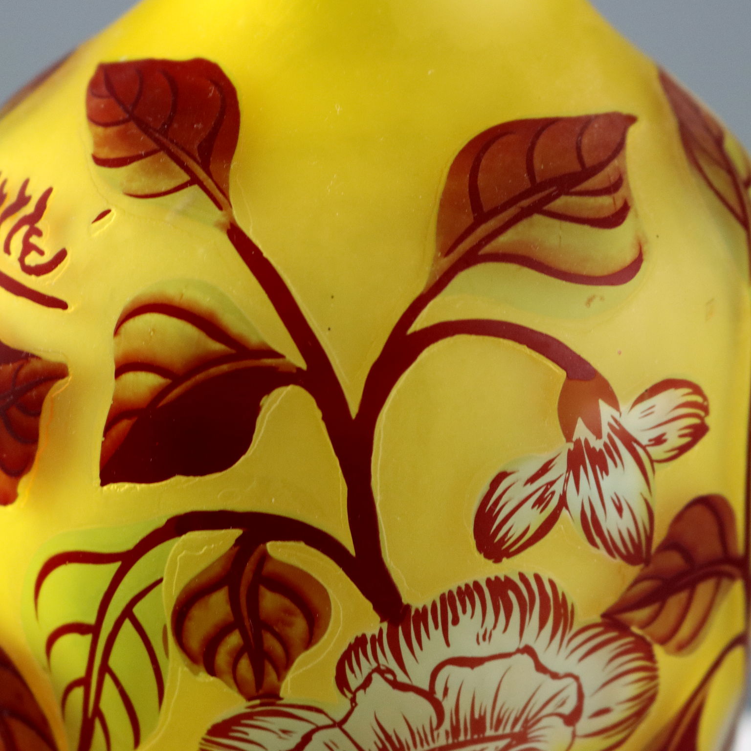 Vaso in vetro policromo decorato con rametti fioriti a tutto campo. Marchio della manifattura a rilievo.