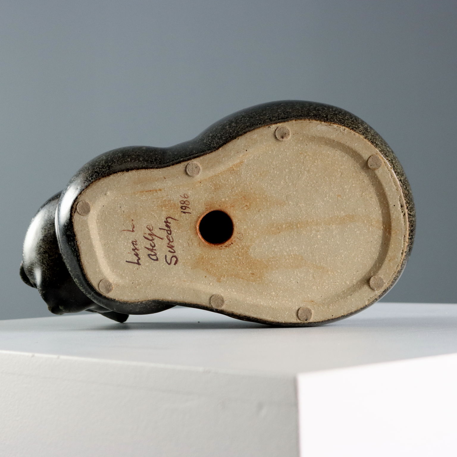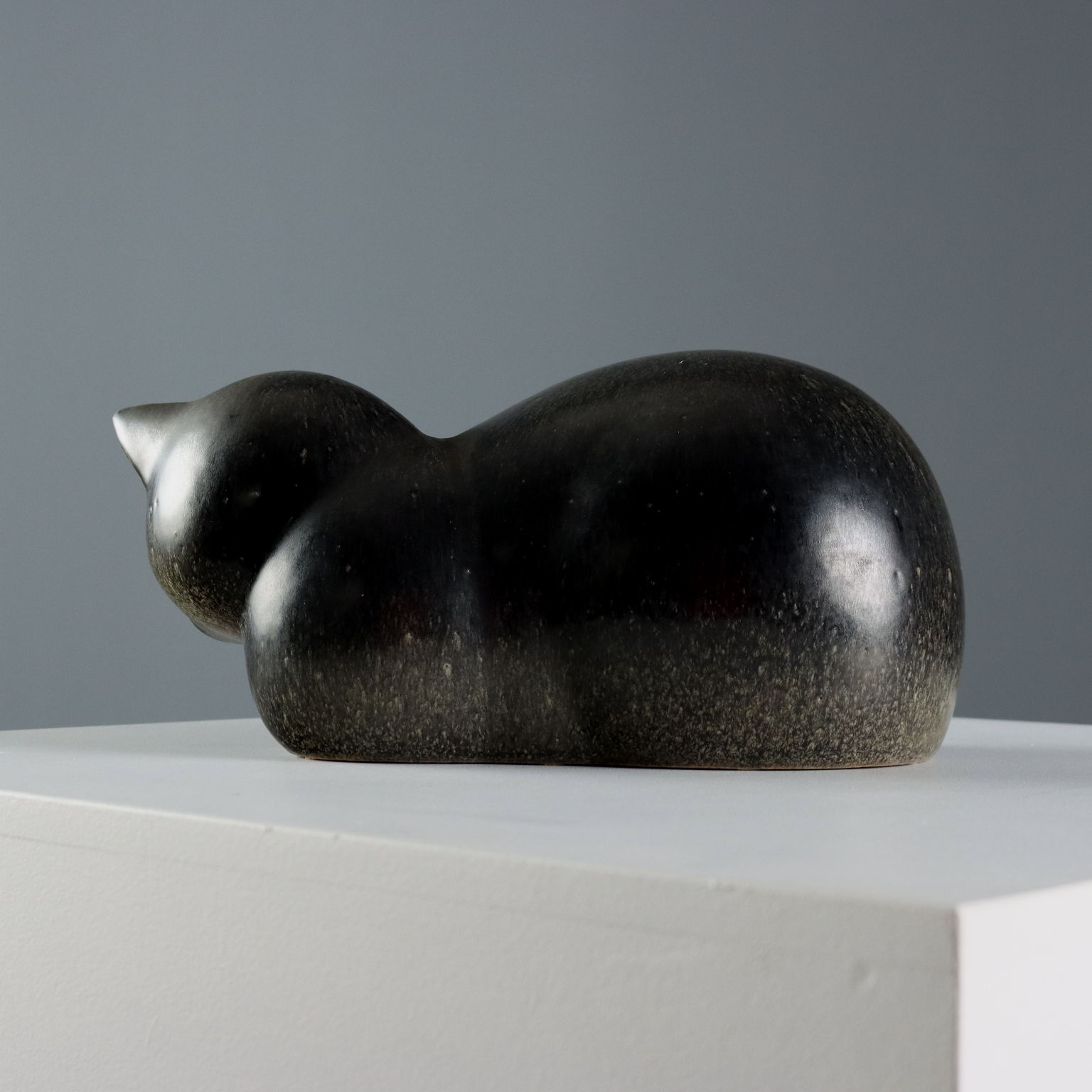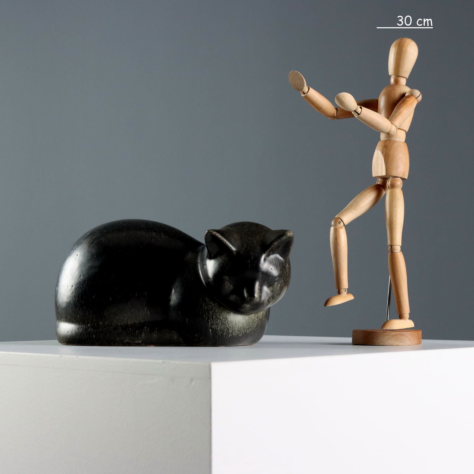 Scultura in gres modello Gatto Moses. Firma dell'autrice e data dipinte sotto la base.