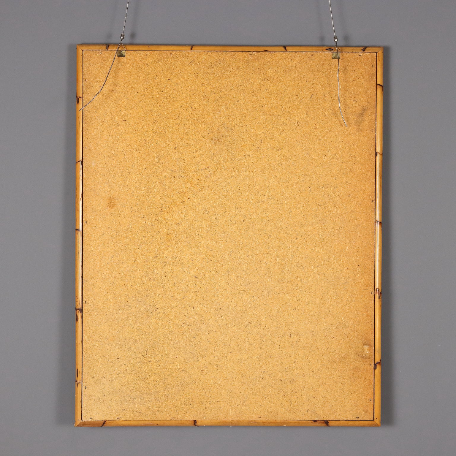 Specchio Anni '80 con Cornice in Bambù e Vimini