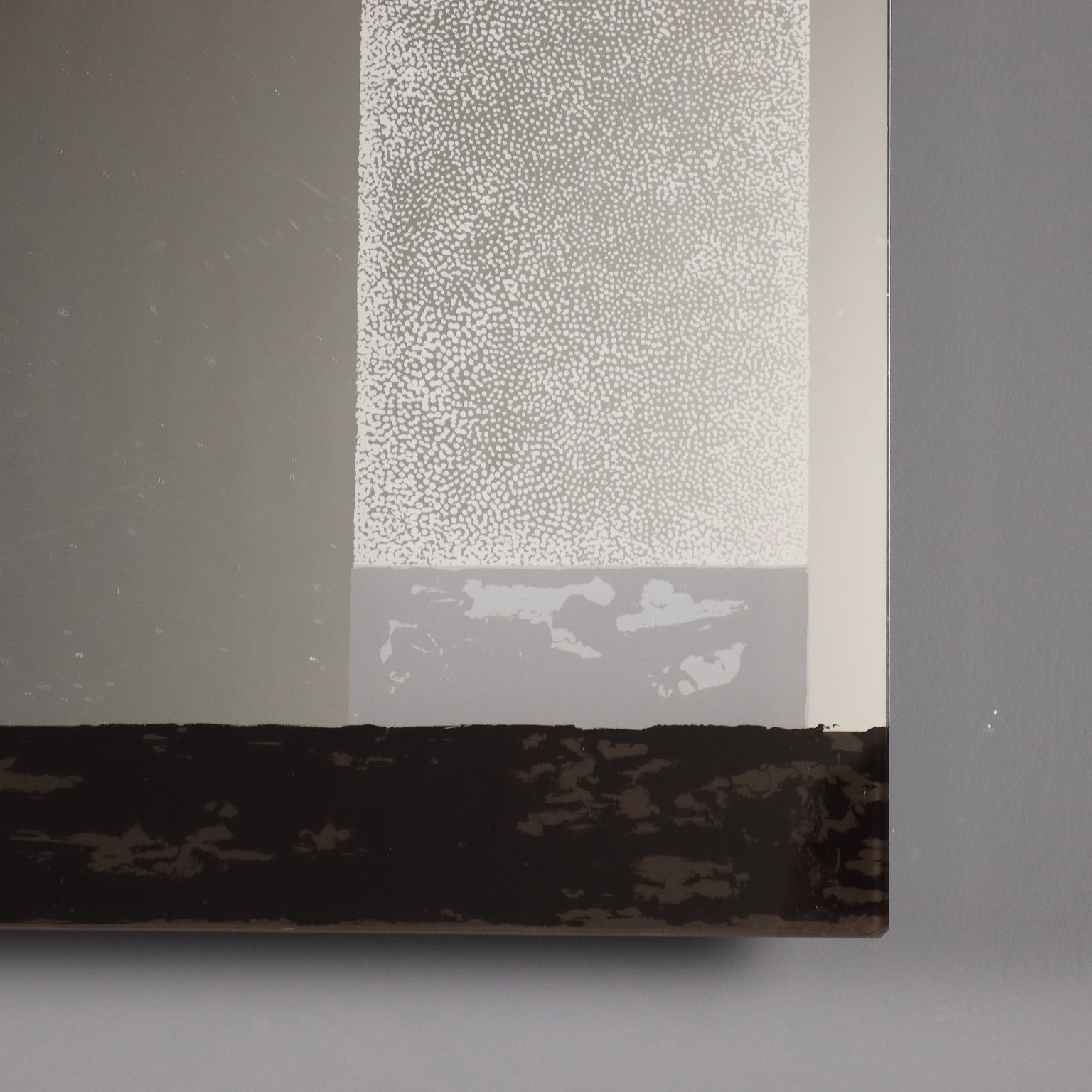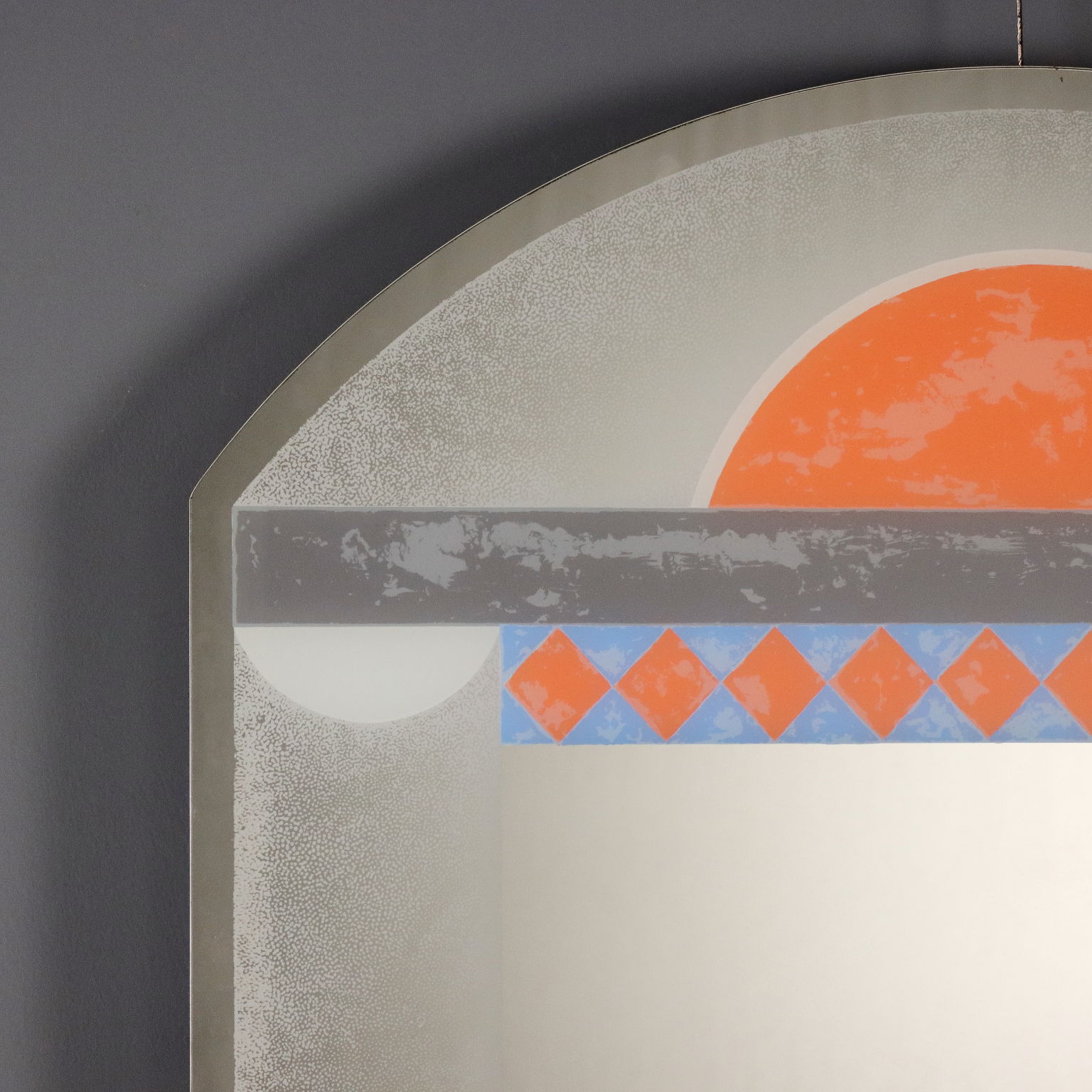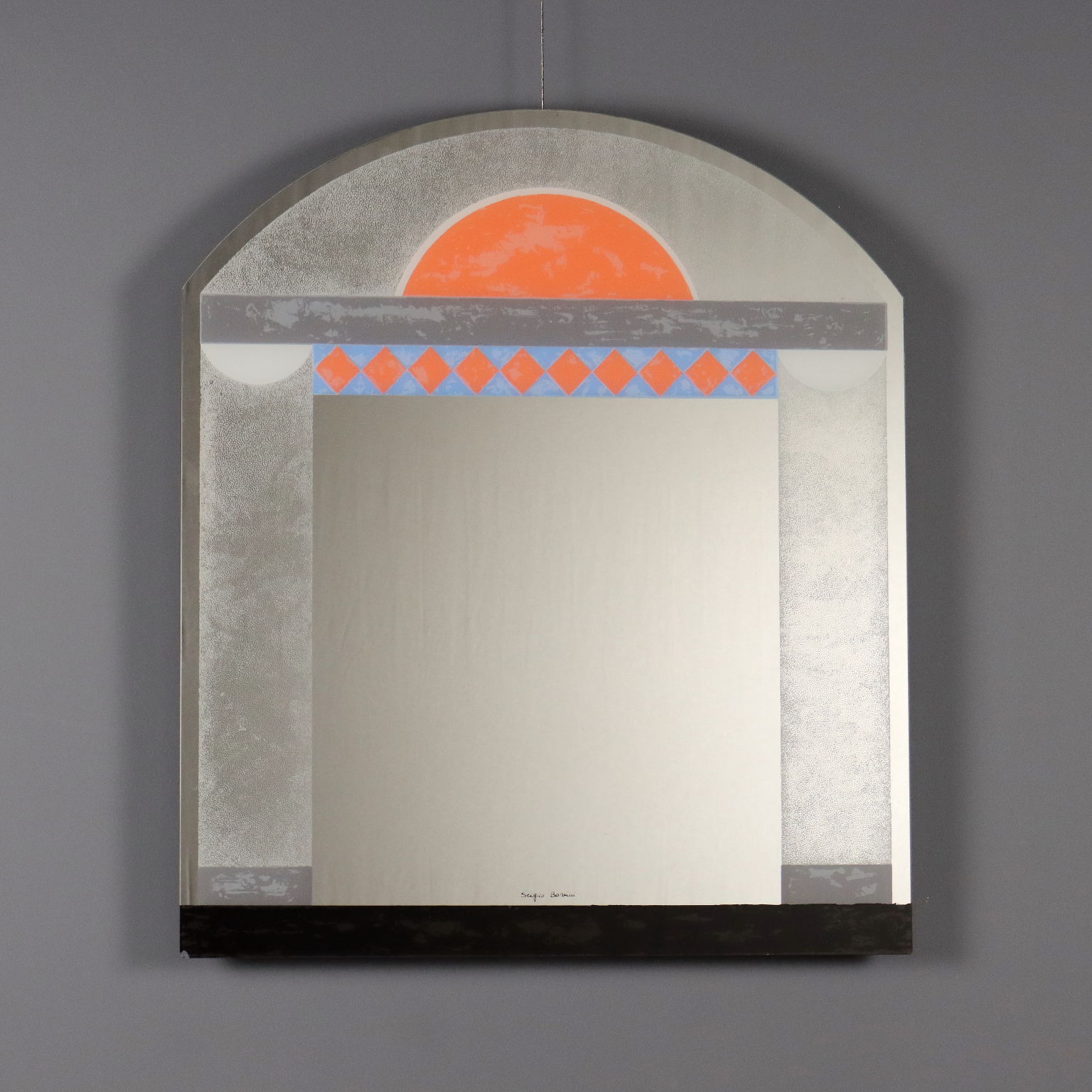 Specchio vintage serigrafato modello 'Teatrino'. Piccola sbeccatura come visibile foto. Riporta la firma dell'artista e l'etichetta della produzione.