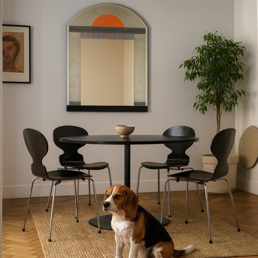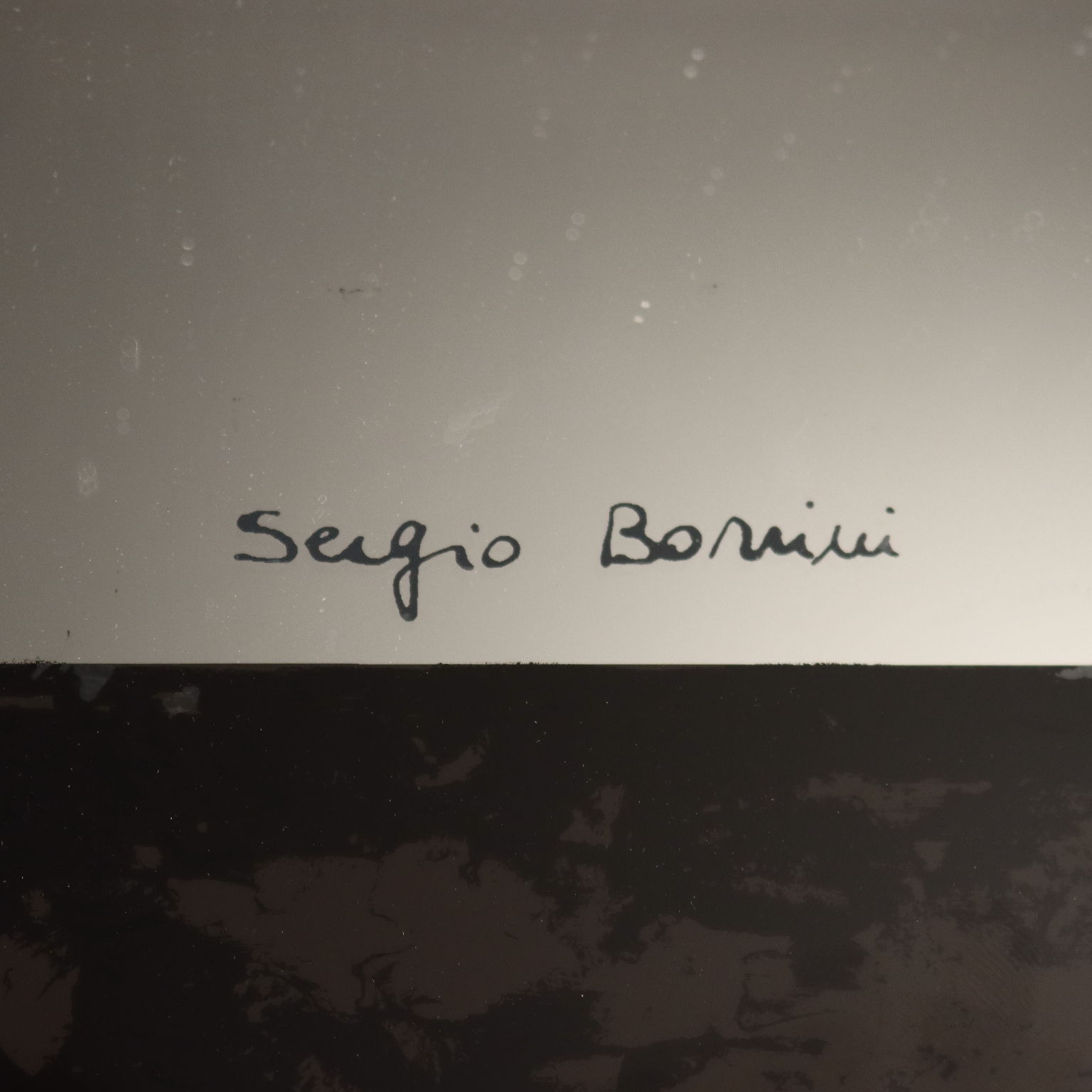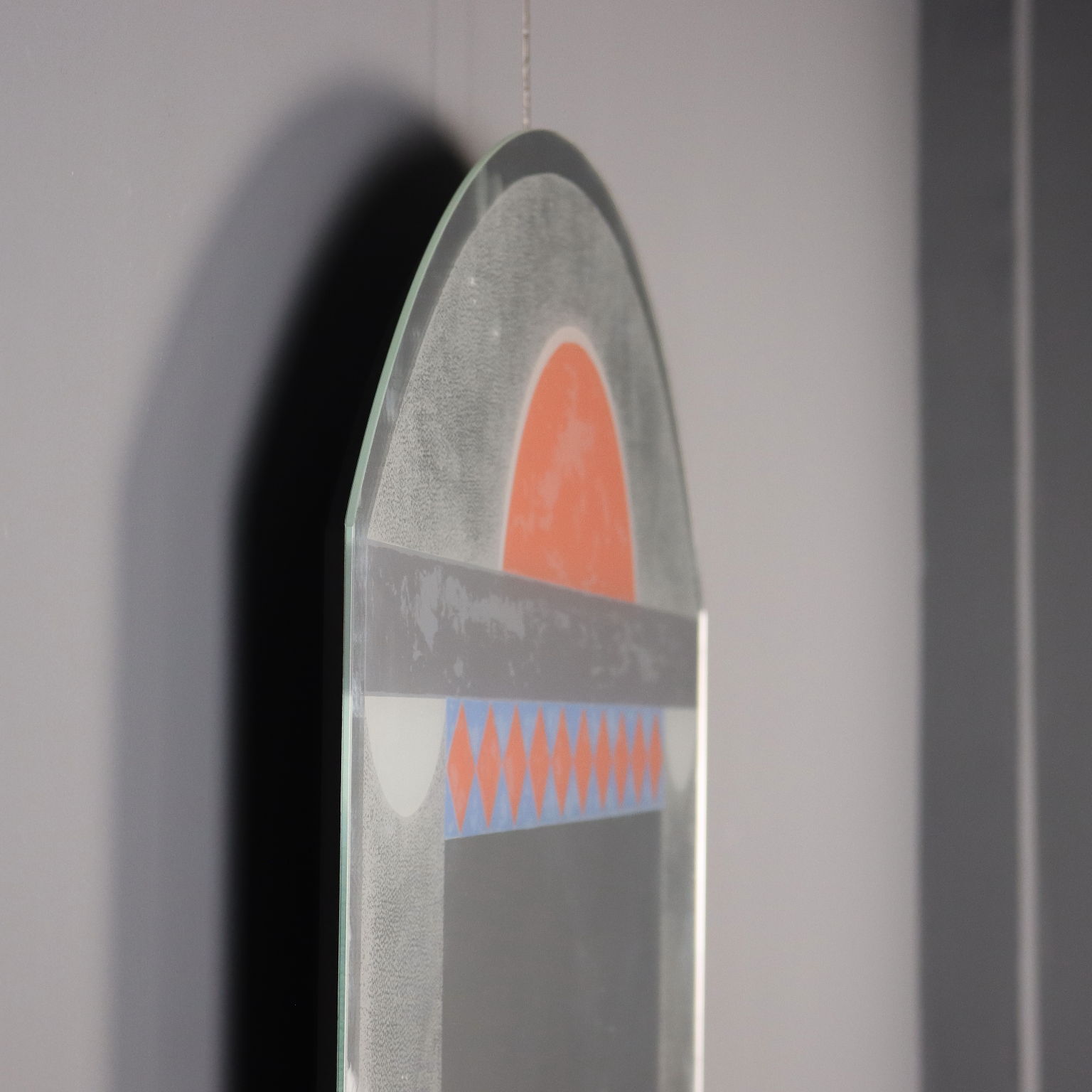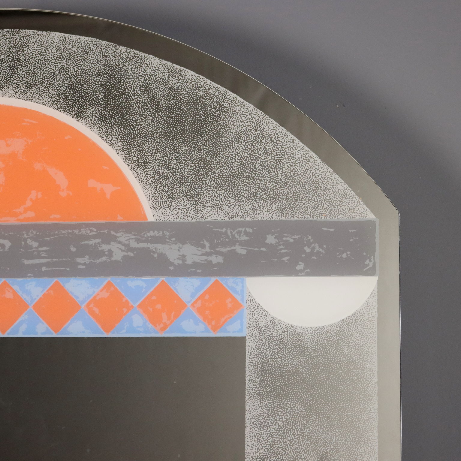 Specchio vintage serigrafato modello 'Teatrino'. Piccola sbeccatura come visibile foto. Riporta la firma dell'artista e l'etichetta della produzione.