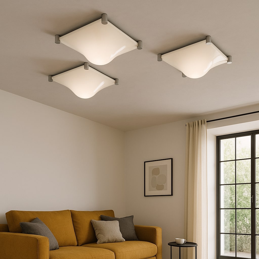 Tris di lampade vintage da soffitto o parete in metallo e metacrilato.