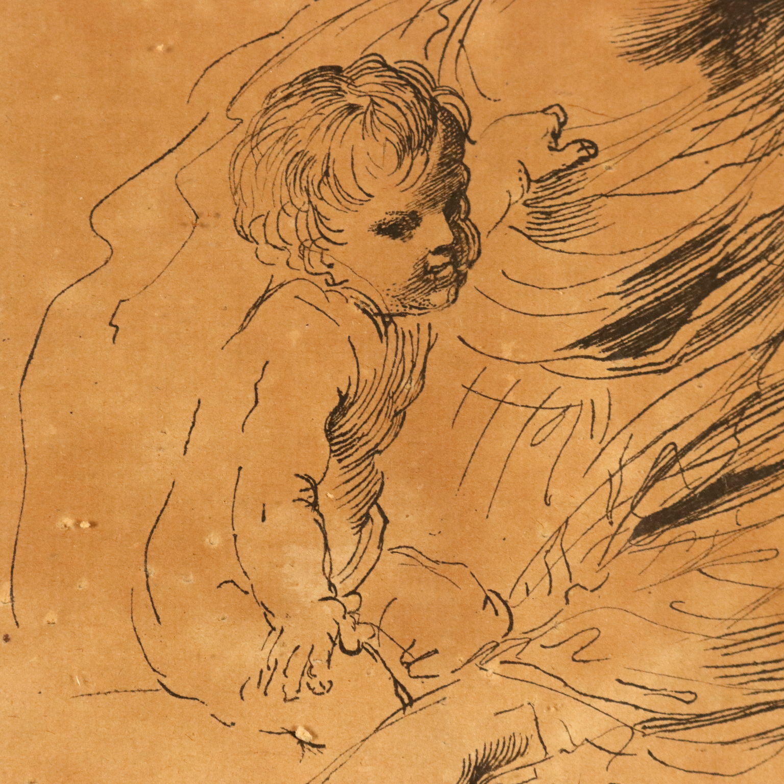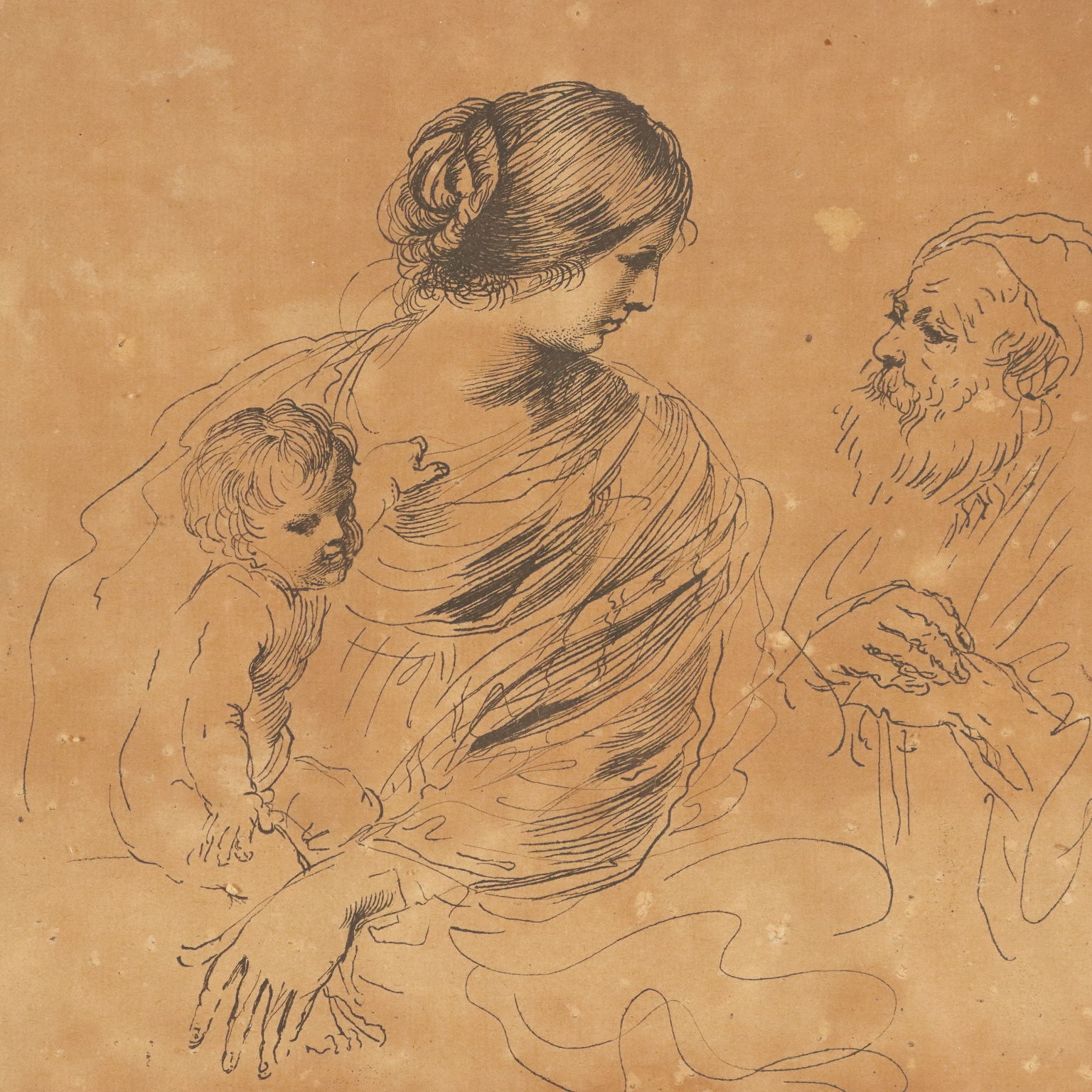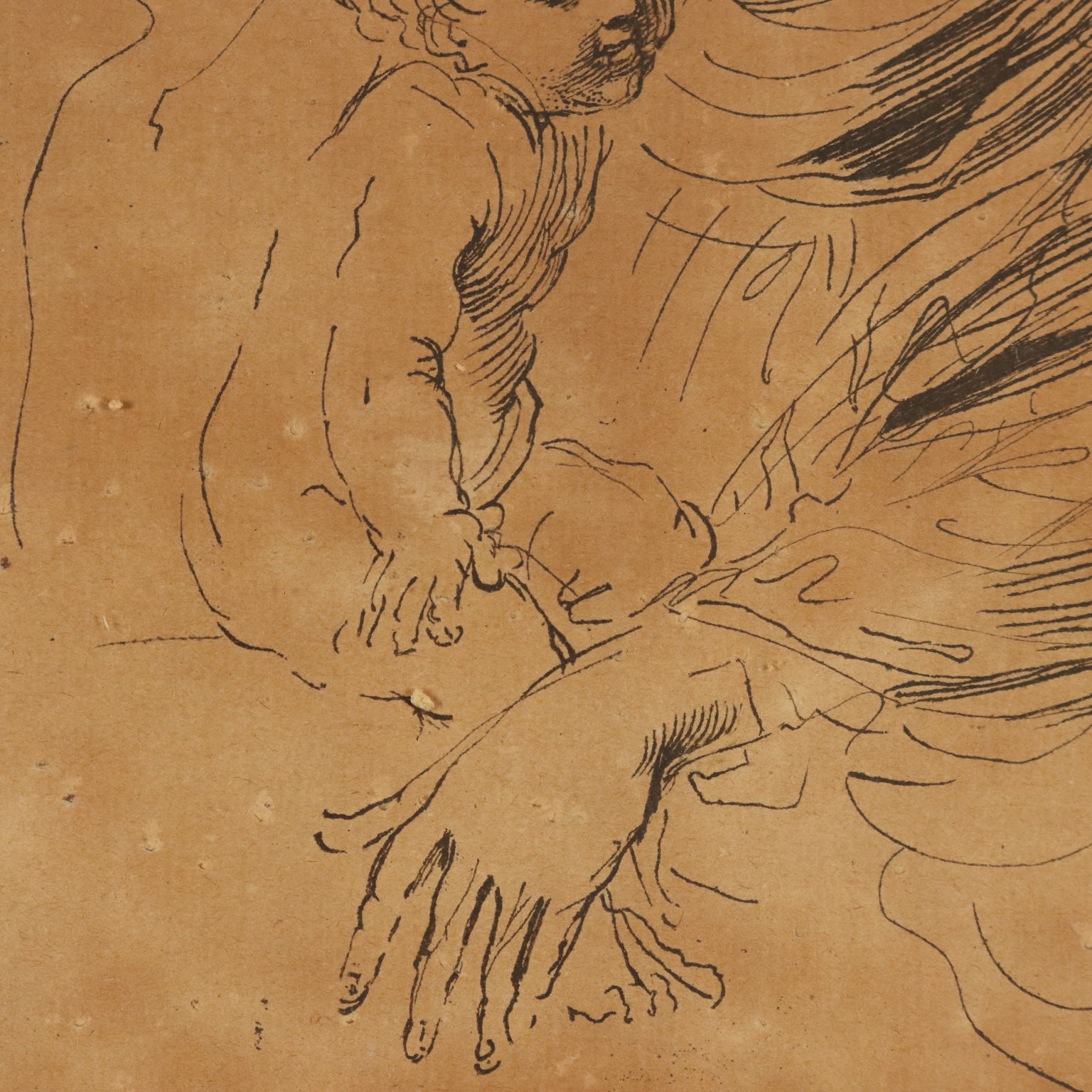 Incisione su carta. Il soggetto è tratto da un disegno del Il Guercino (Giovanni Francesco Barbieri 1591 -1666), che dedicò a tale soggetto numerose sue opere. In cornice.