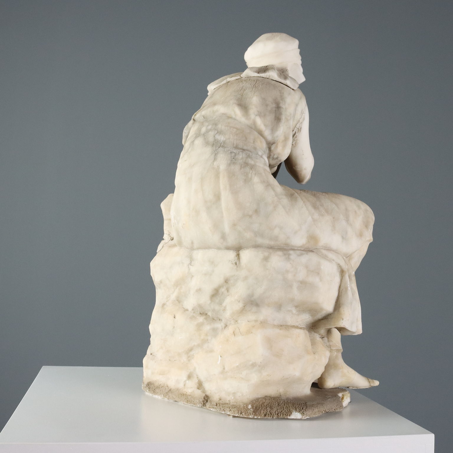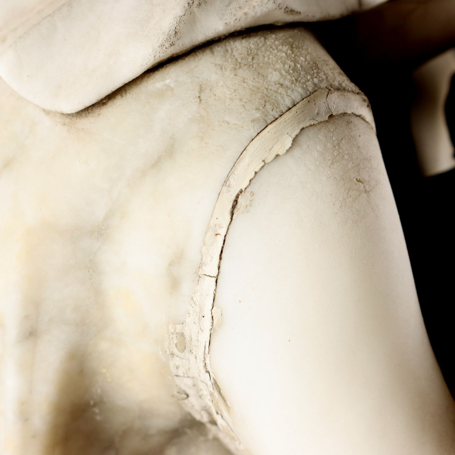 Descrizione Scultura in marmo raffigurante giovane donna al pozzo. Evidenti mancanze e segni di restauro.