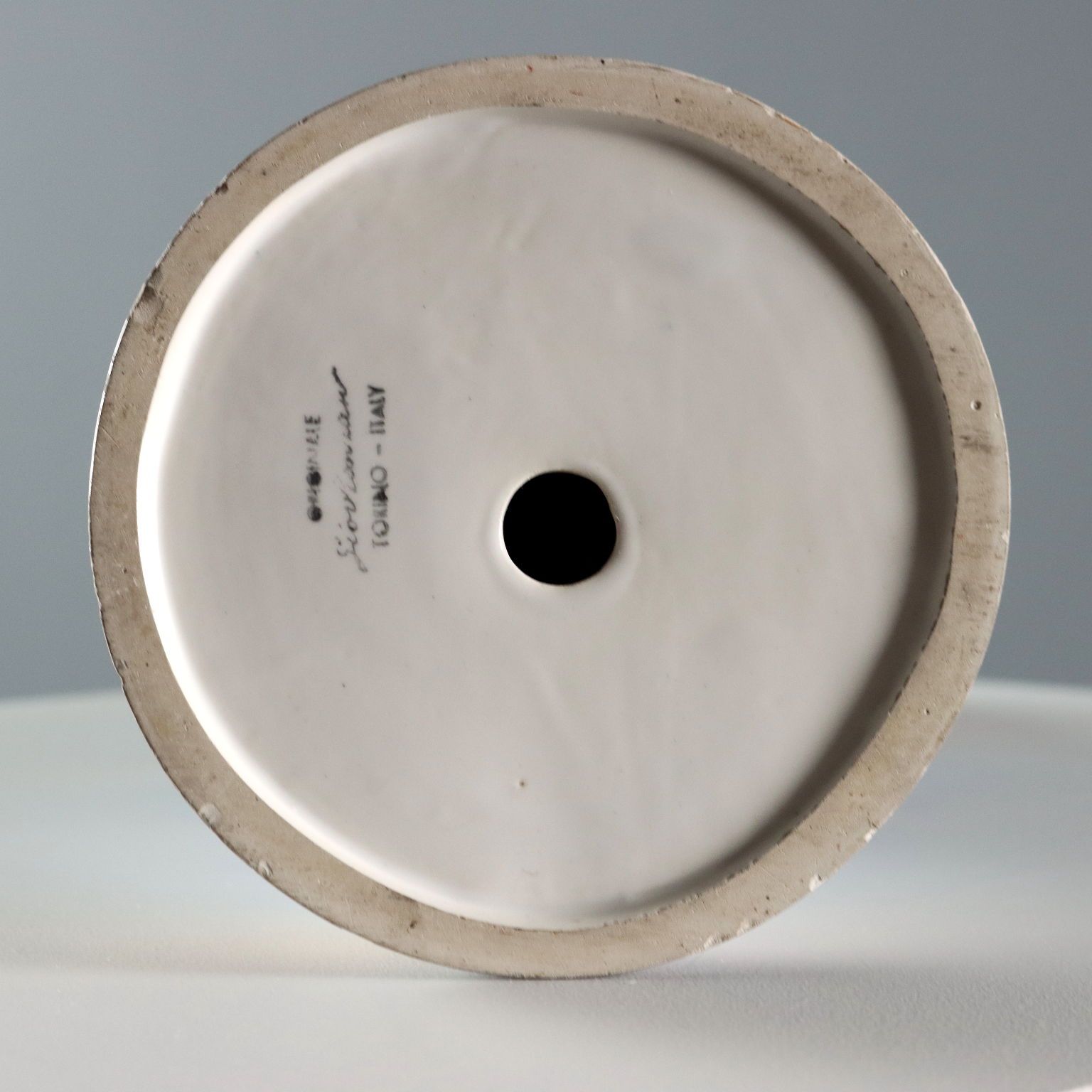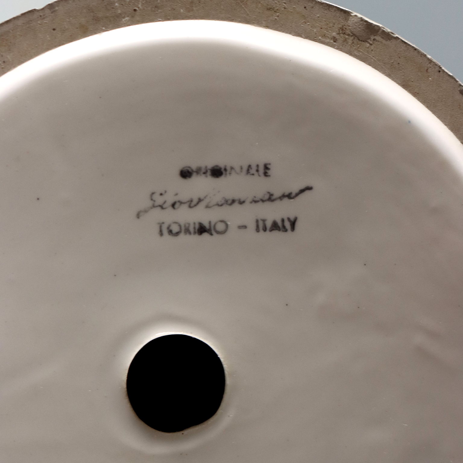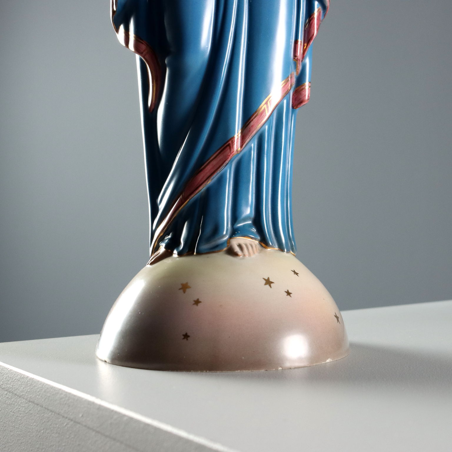Statua raffigurante Madonna con Bambino. Sotto la base marchio della manifattura: "Giovanni Ronzan, Torino Italia".