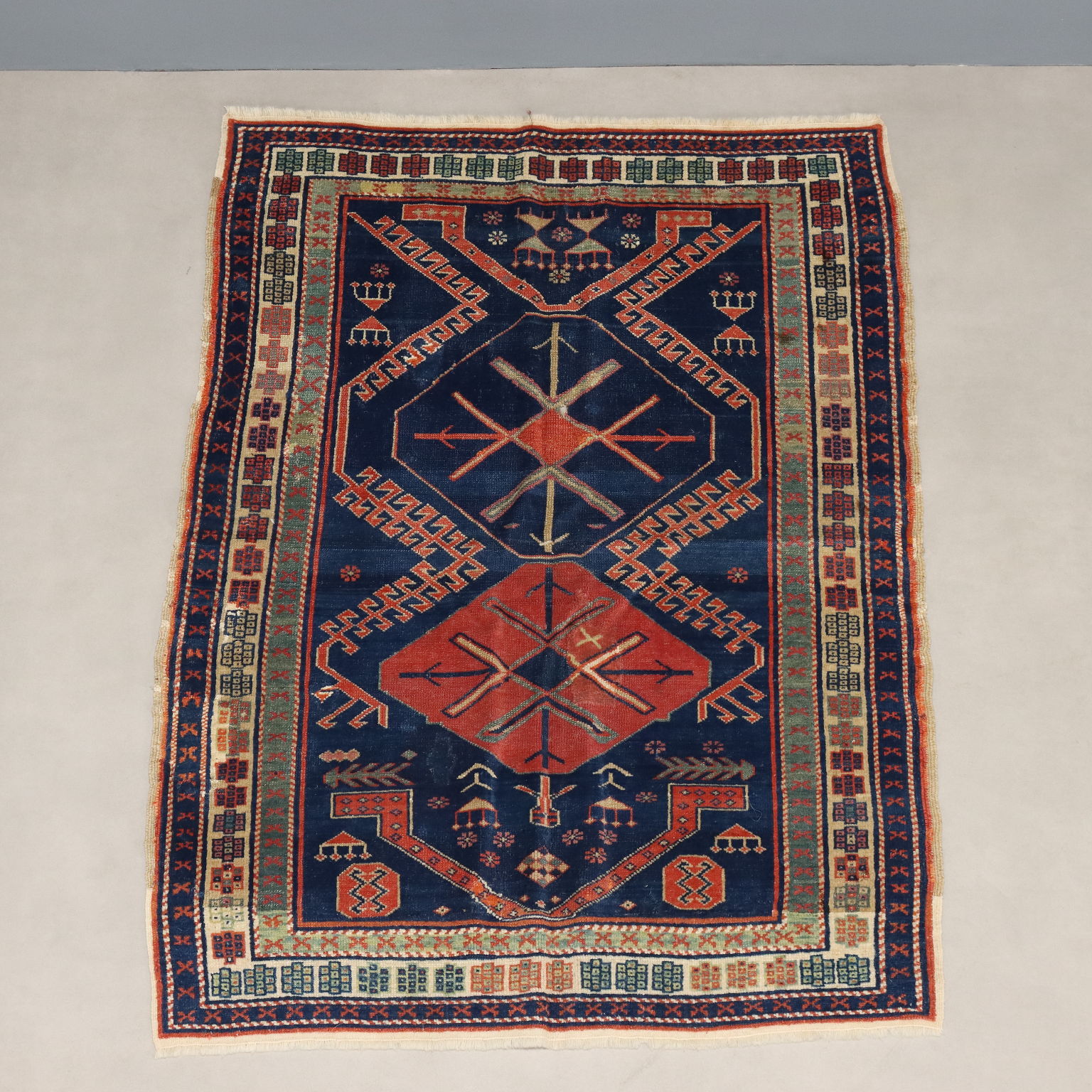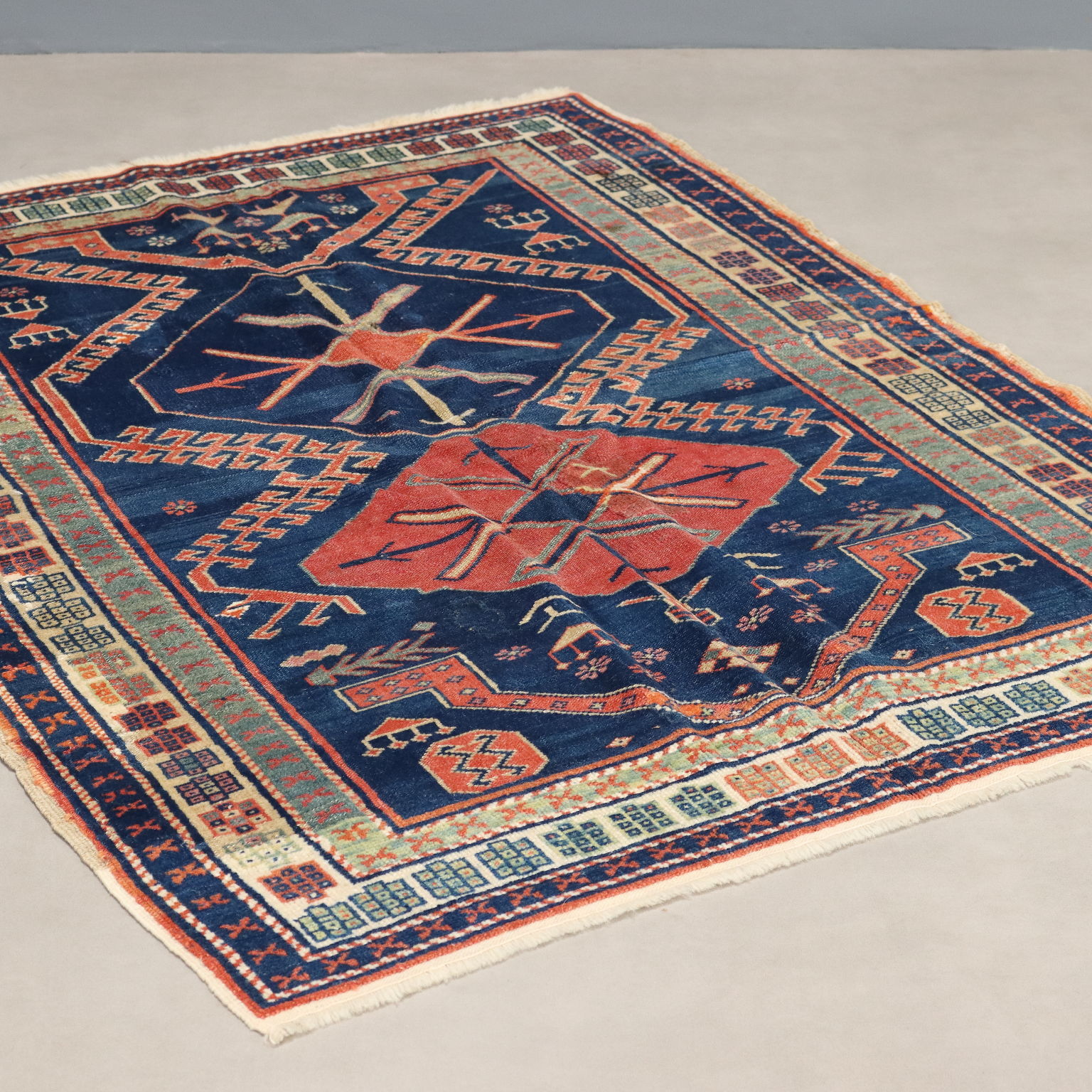 Tappeto Shirvan in lana, nodo fine, fabbricazione manuale.