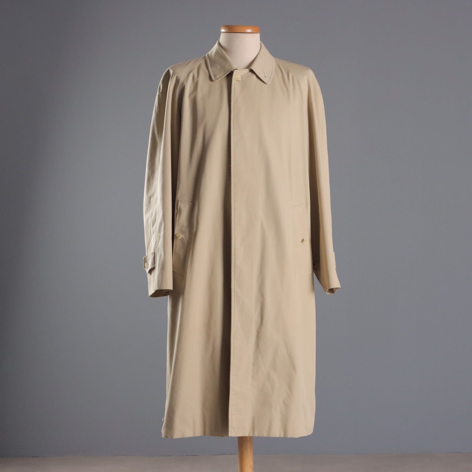 Trench firmato Burberry in cotone dai colori iconici: beige all'esterno e stampa check nella fodera interna. Allacciatura monopetto, due tasche inserite e spacco posteriore.