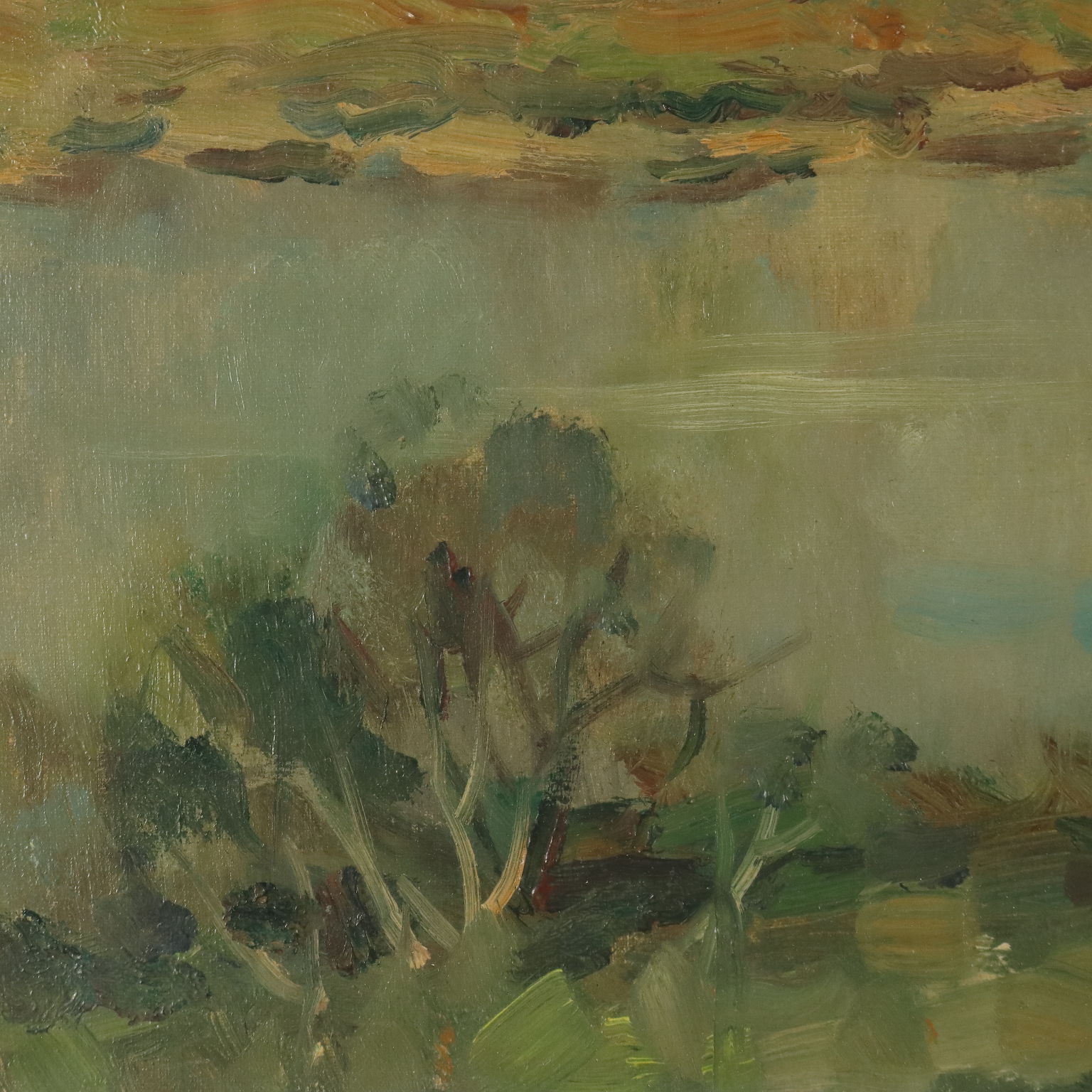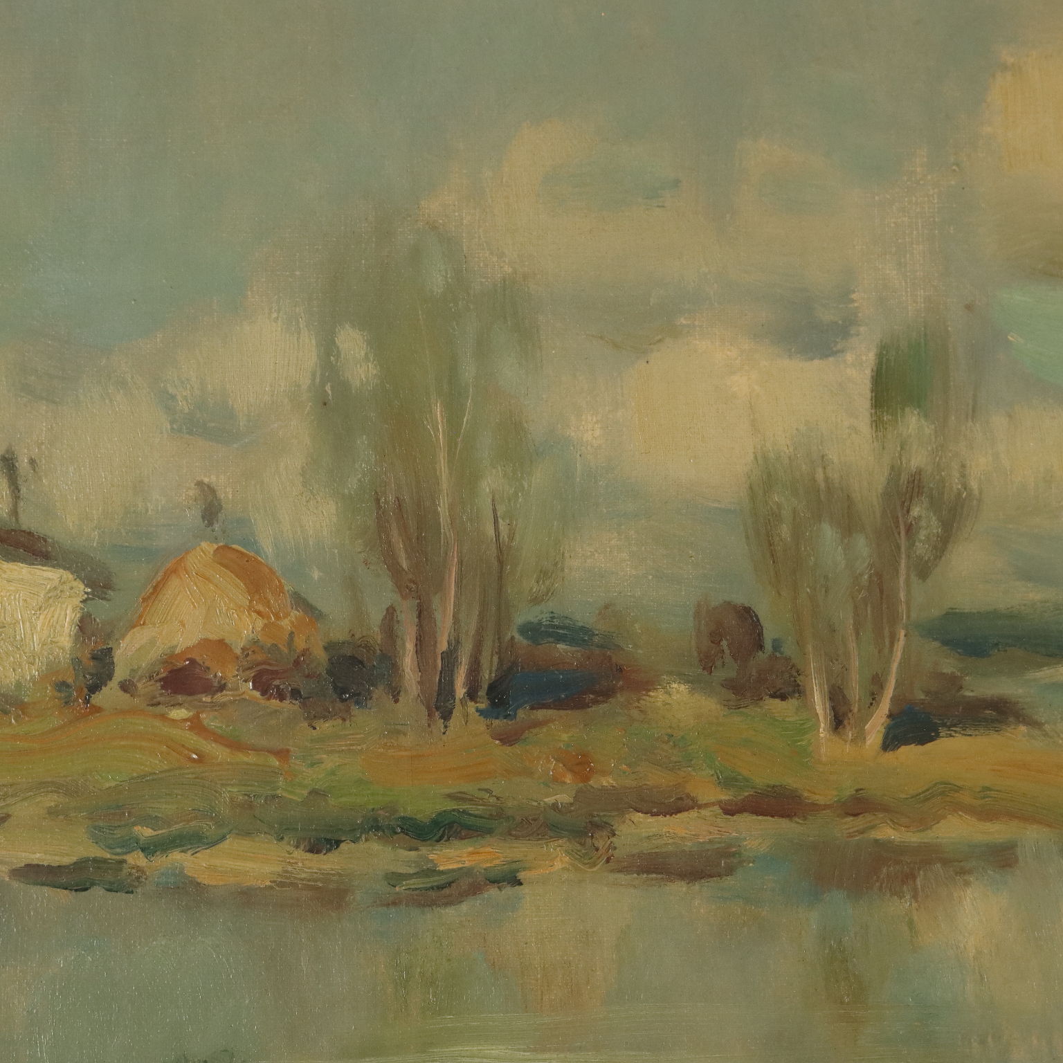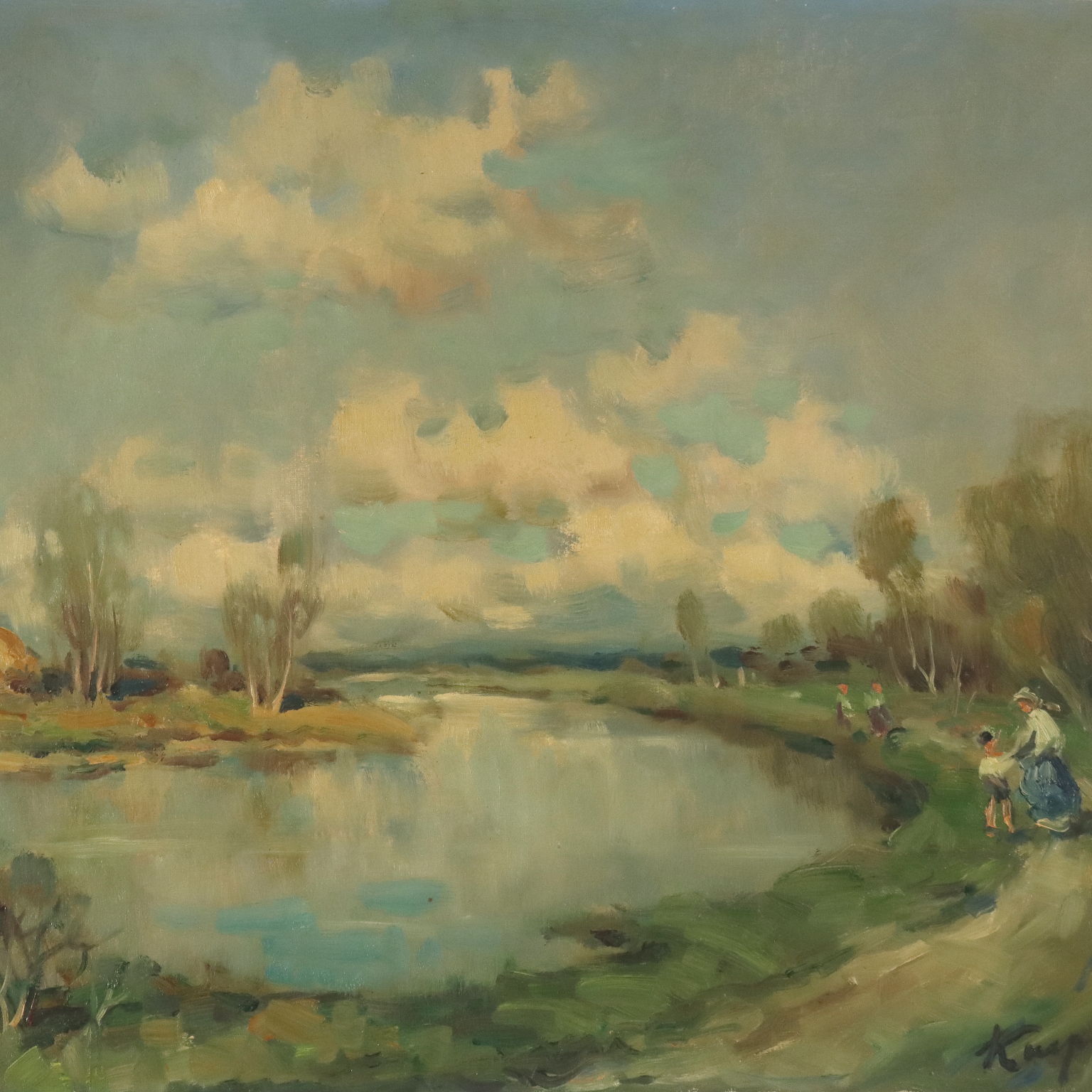 Dipinto di Ivan Karpoff - Paesaggio Fluviale con Figure
