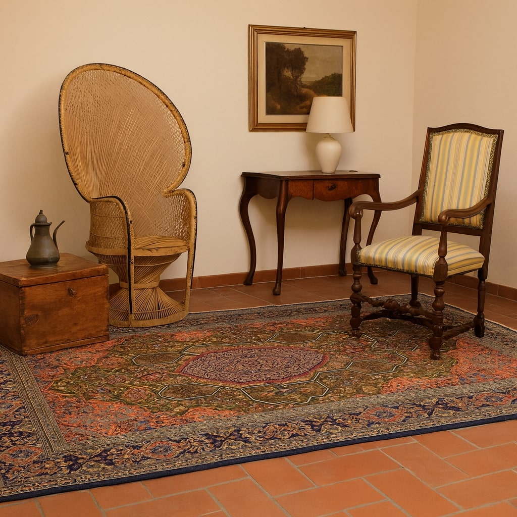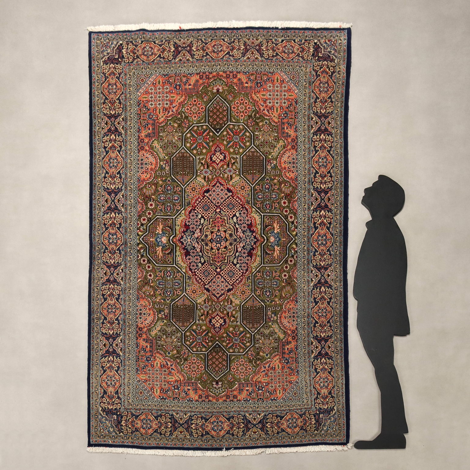 Tappeto in cotone e lana, nodo fine, fabbricazione manuale.