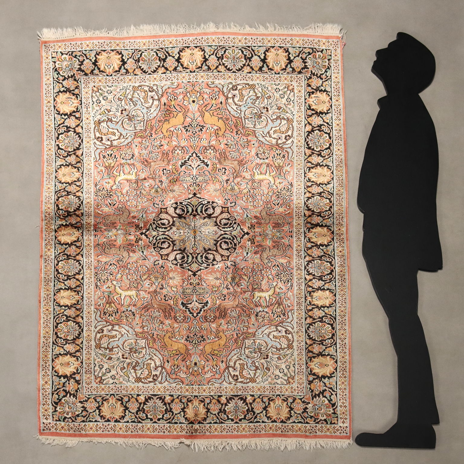 Tappeto Srinagar in cotone e lana, nodo fine e fabbricazione manuale. Buone condizioni.