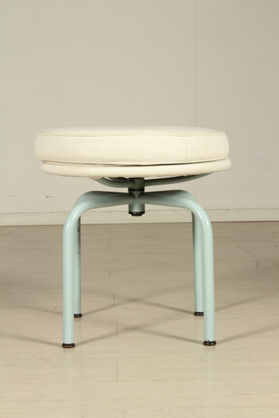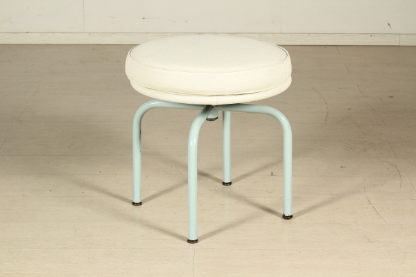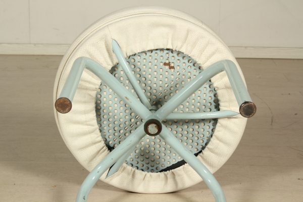 Sgabello; metallo verniciato, imbottitura in espanso, rivestimento in tessuto. Buone condizioni, presenta piccoli segni di usura.