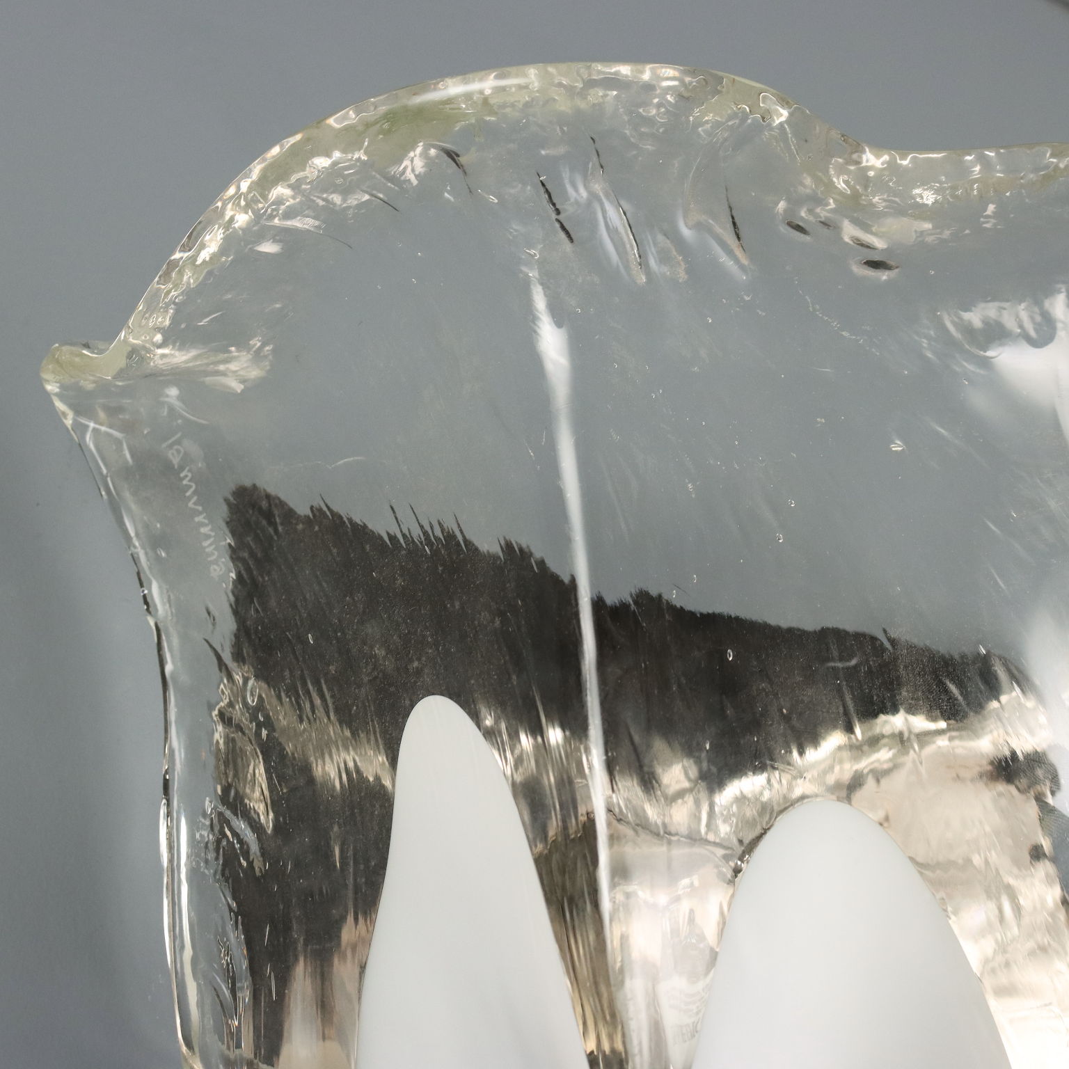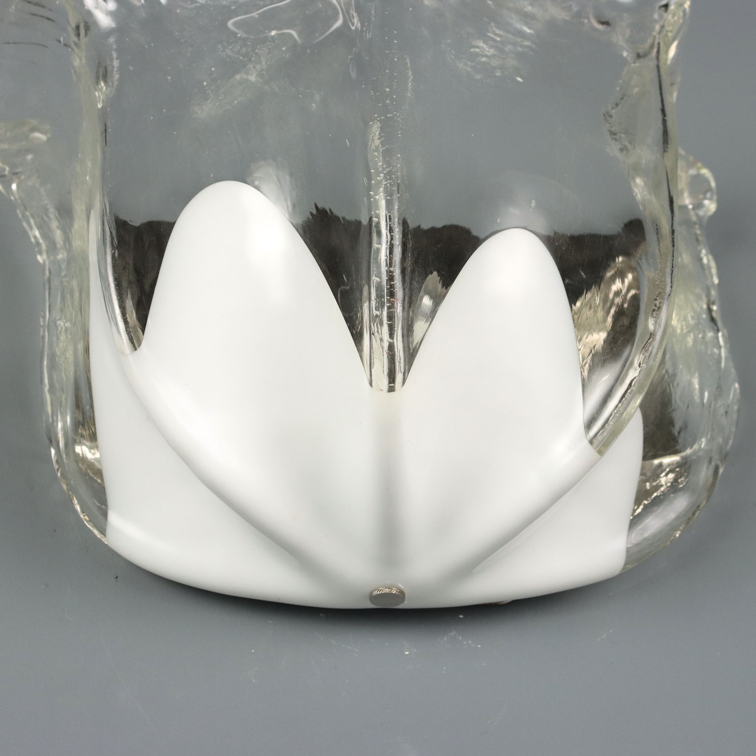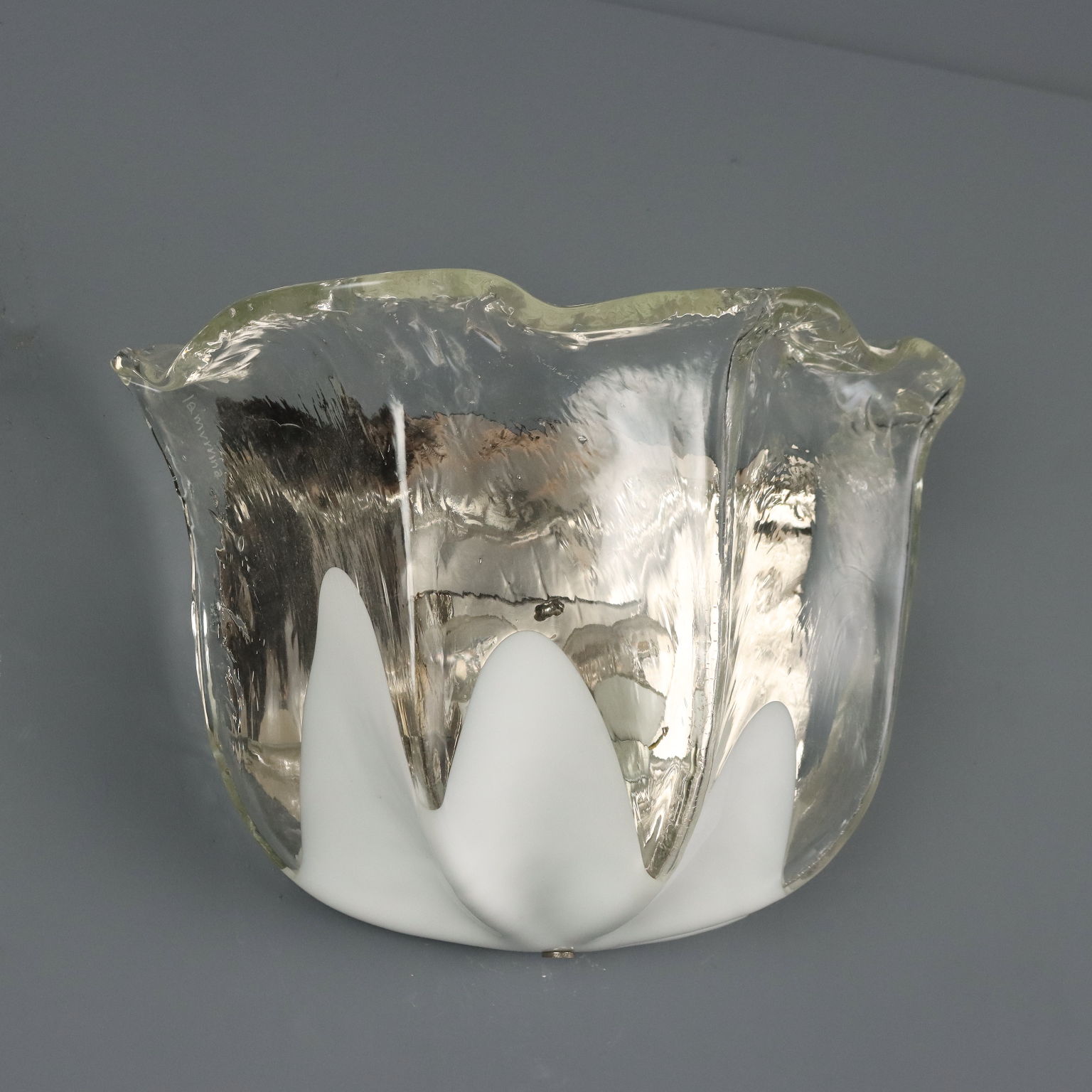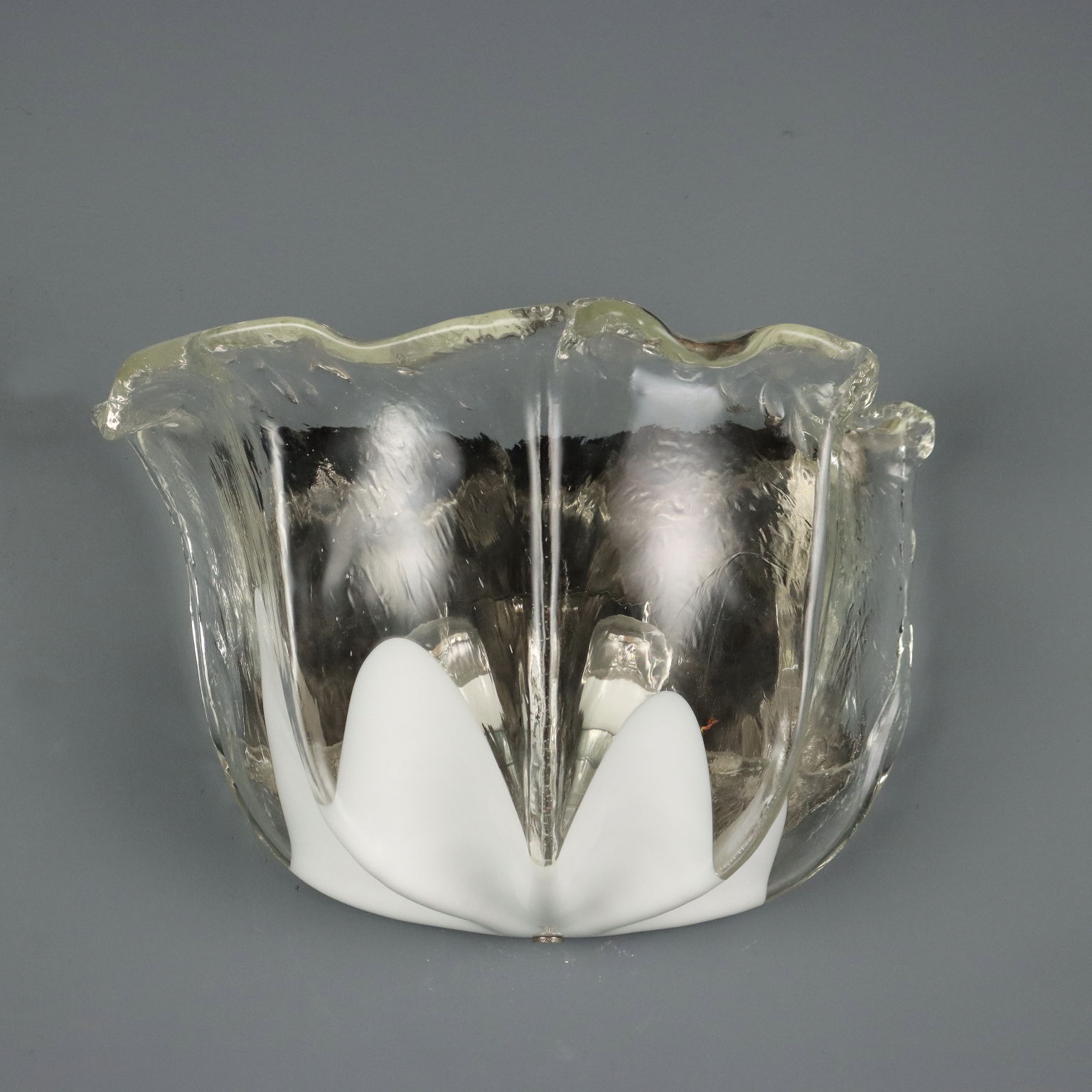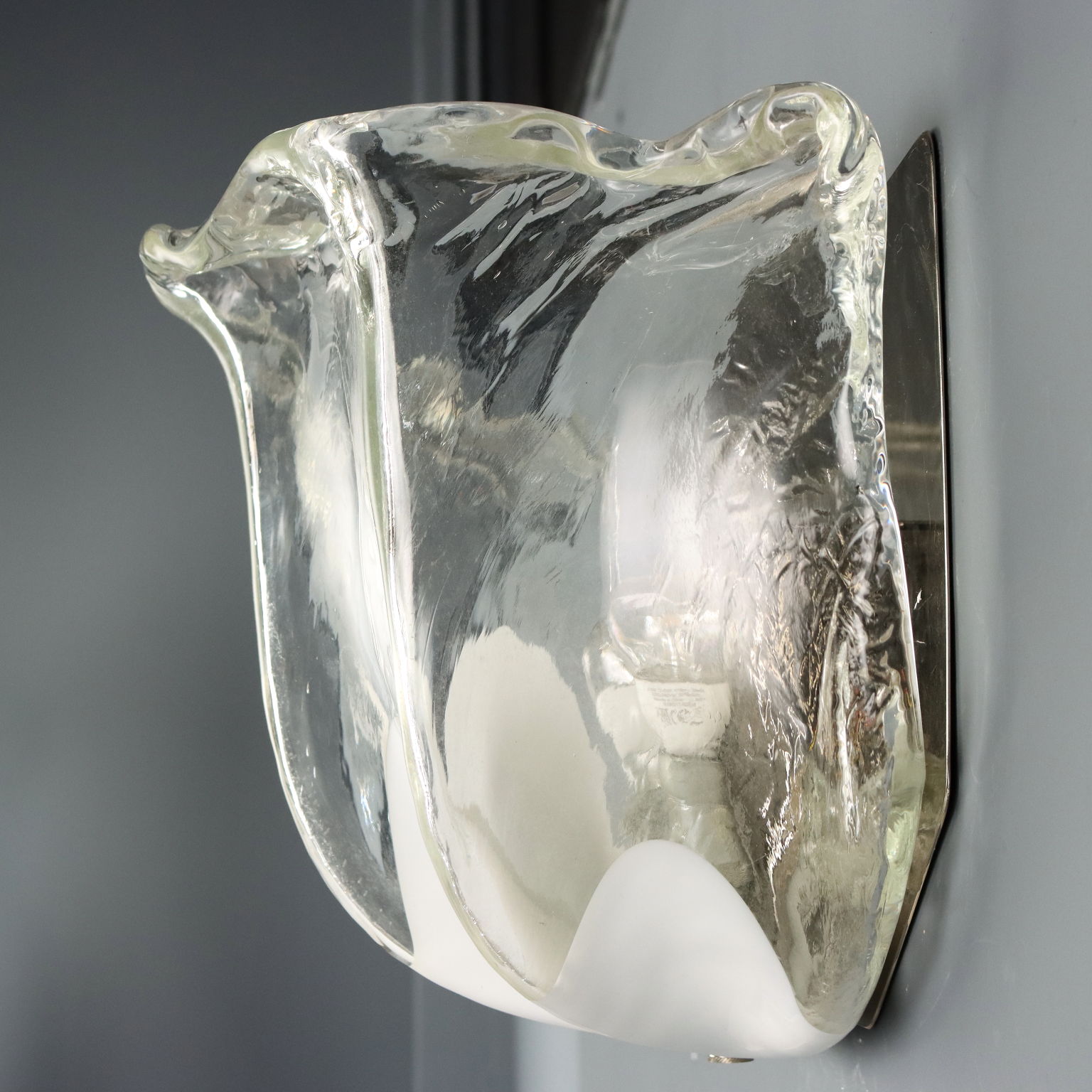 Applique a due luci in vetro incolore e bianco. Marchio della manifattura a graffio sul lato.