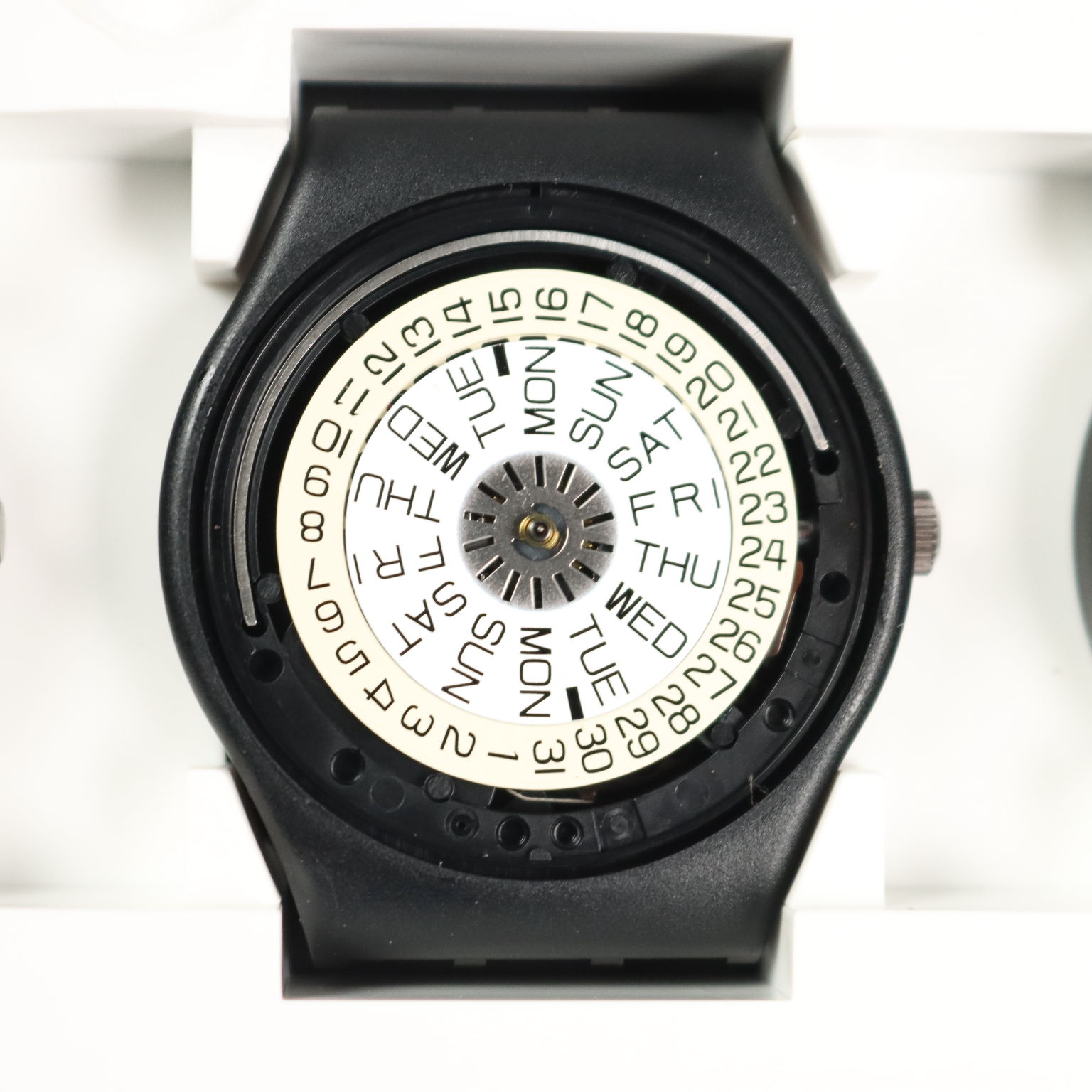Orologio Swatch autentico nuovo con etichette: non usato e non indossato, nella confezione originale. Meccanismo e batteria non testata. Dopo l'acquisto gli orologi sono stati conservati fino ad ora e mai indossati. Dopo 20-35 anni sia i cinturini in plastica che quelli in pelle potrebbero essersi asciugati e diventare troppo fragili da indossare. Indossarli è a tuo rischio e pericolo in quanto non possiamo garantire quanto durerà il cinturino quando lo metti al polso. Cerchiamo di presentare lo stato reale dell'oggetto nel modo più completo possibile con le foto. Qualora alcuni particolari non risultassero chiari dalle foto, fa fede quanto riportato nella descrizione.