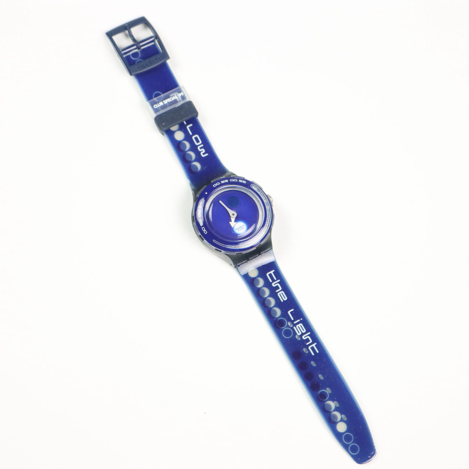 Gruppo di quattro orologi. Scuba 200 Follow The Light SDZ105, Beatnik Mission SQ7 1014, The Club Fasi Lunari GZ160, Oracle GZ 151. Orologio Swatch nuovo, non usato e non indossato. Nella confezione originale. Orologio con movimento al quarzo