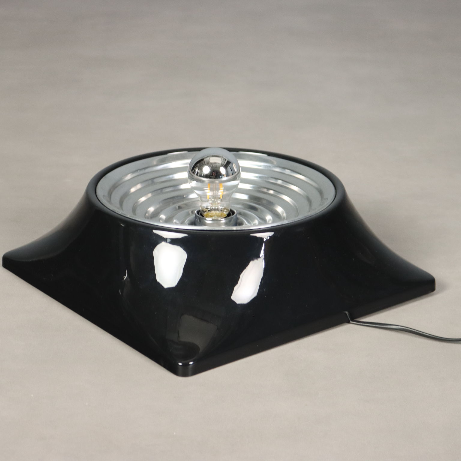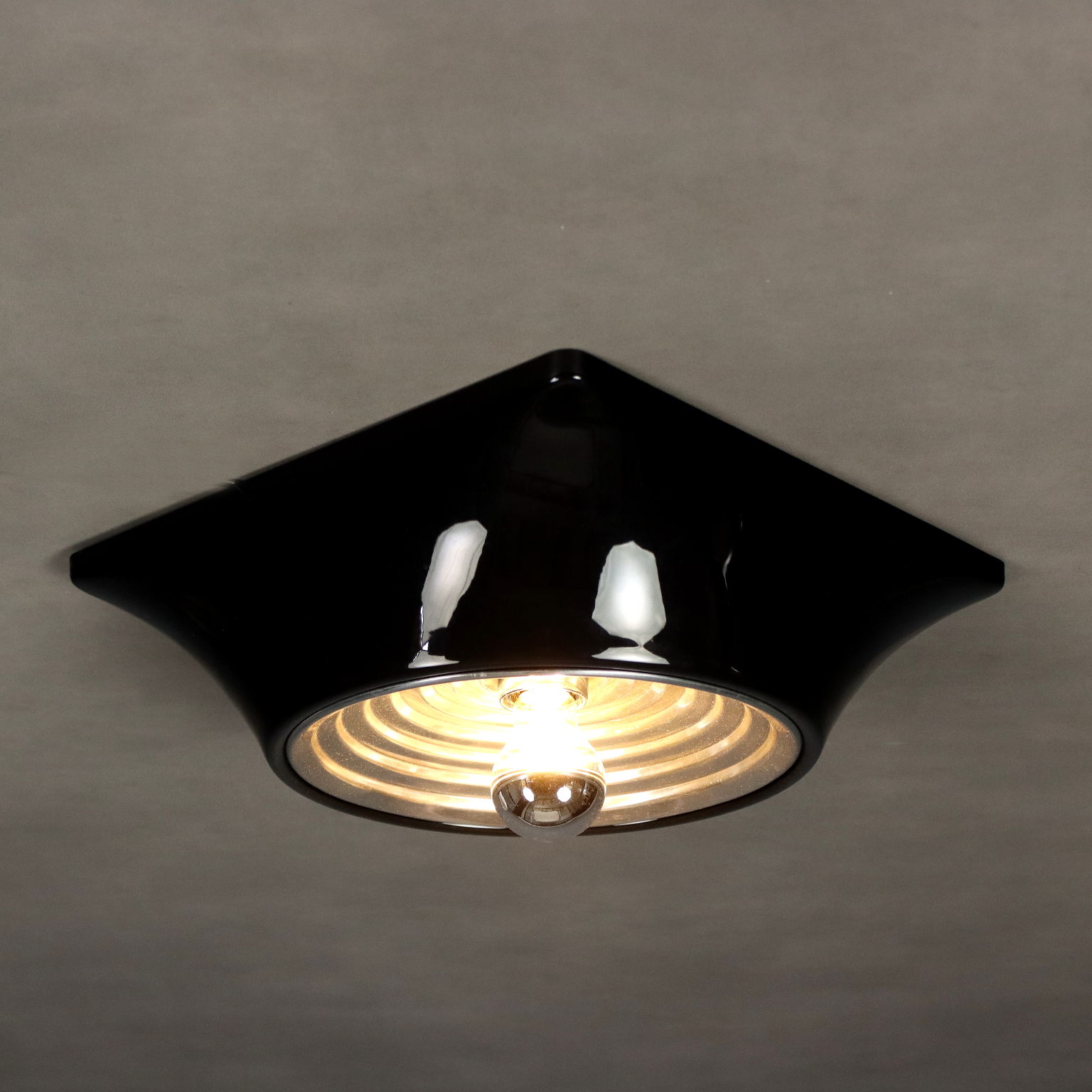 Lampada a soffitto/parete con struttura in materiale plastico nero e alluminio laccato. (1 lampadina E27 max 100)