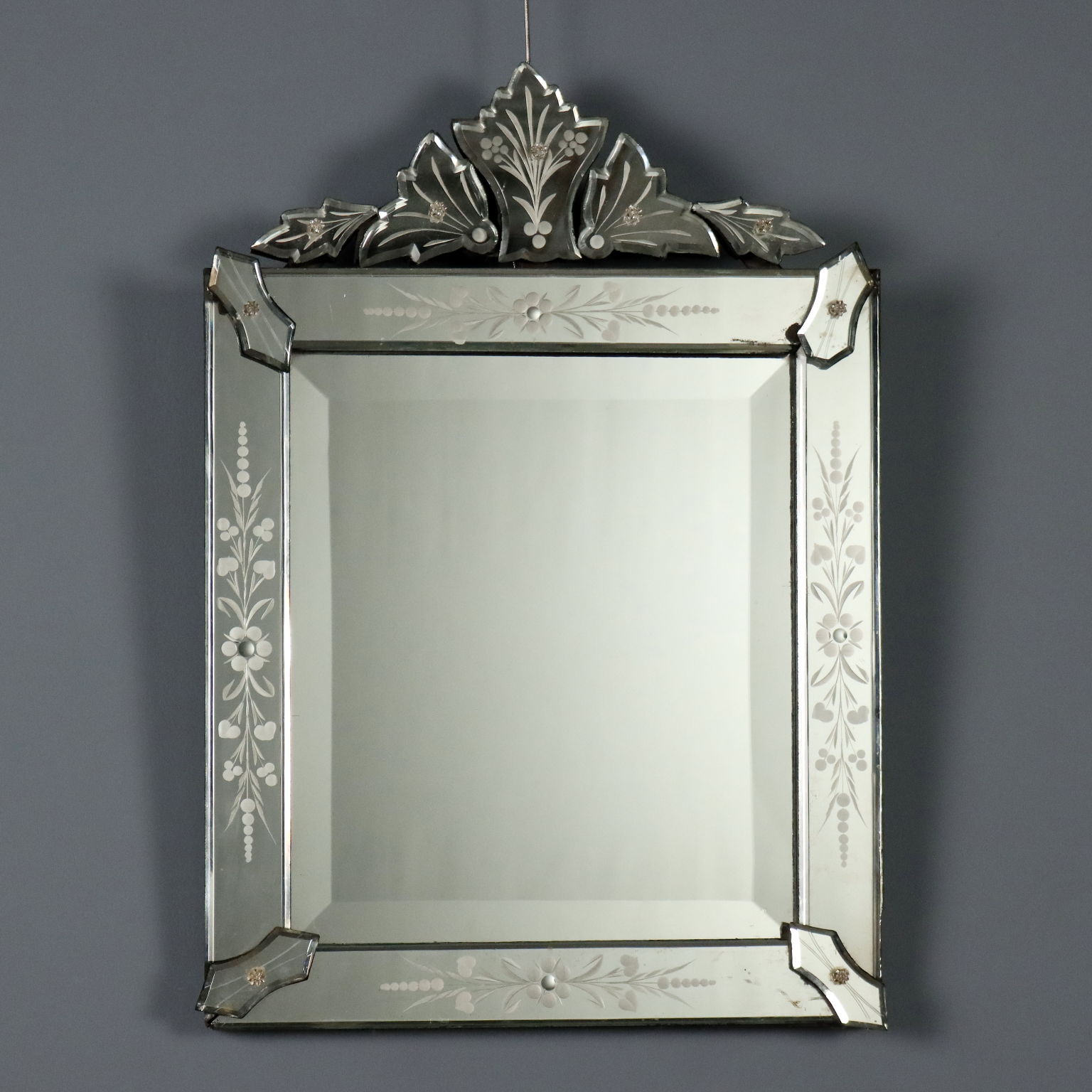 Specchiera Veneziana composta da vetri bisellati e incisi a soggetti floreali e fogliacei. Venezia, XX Secolo.