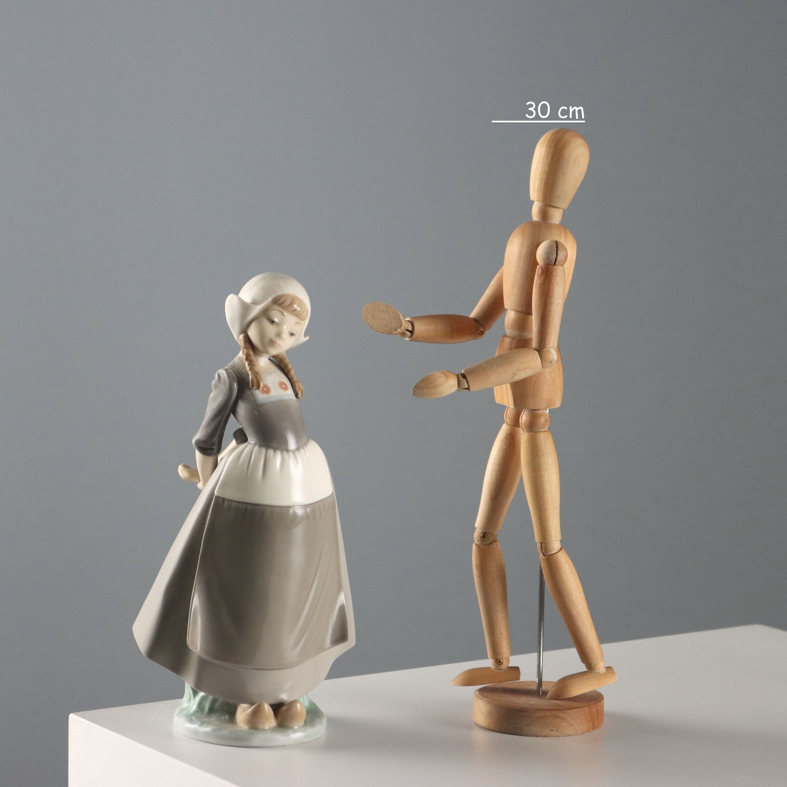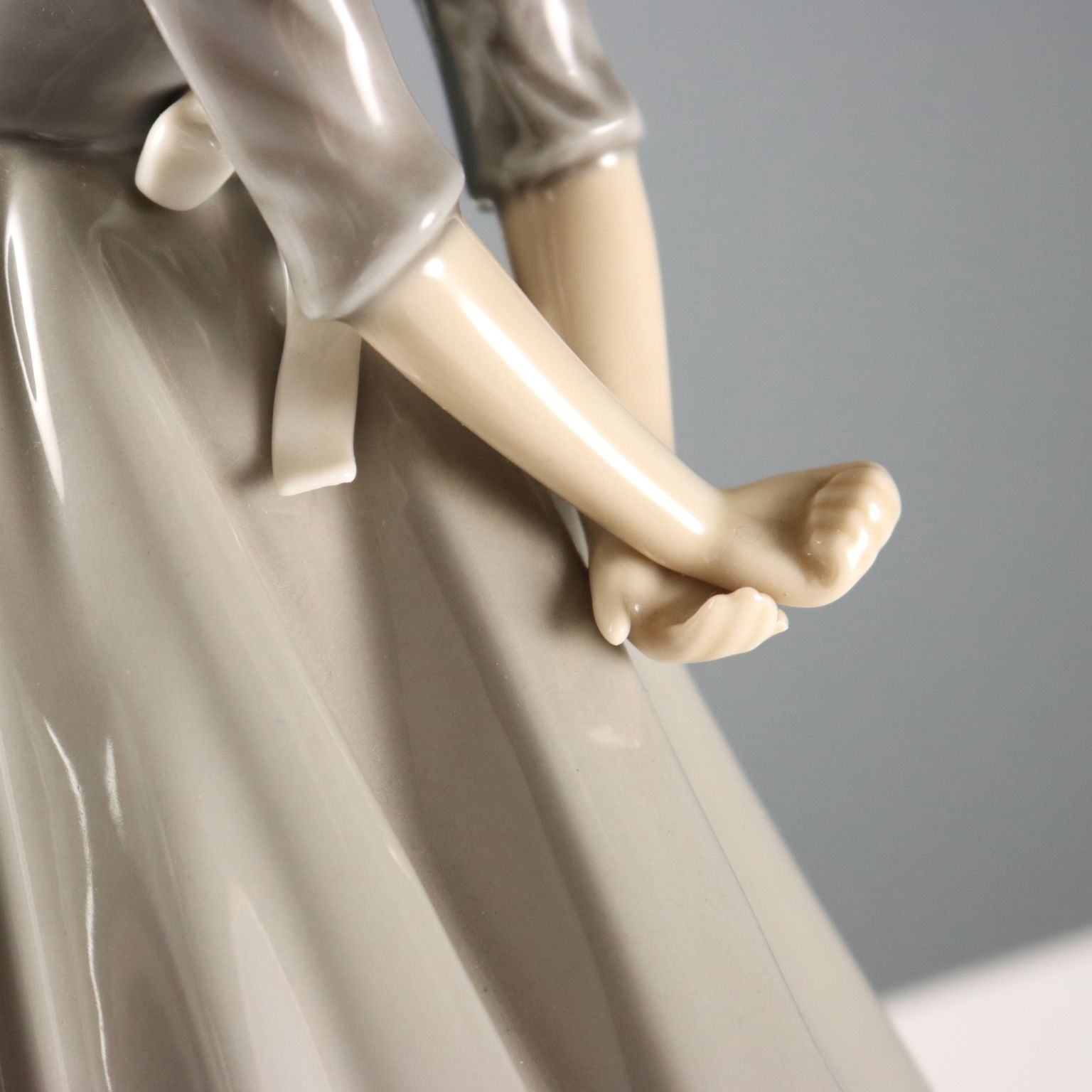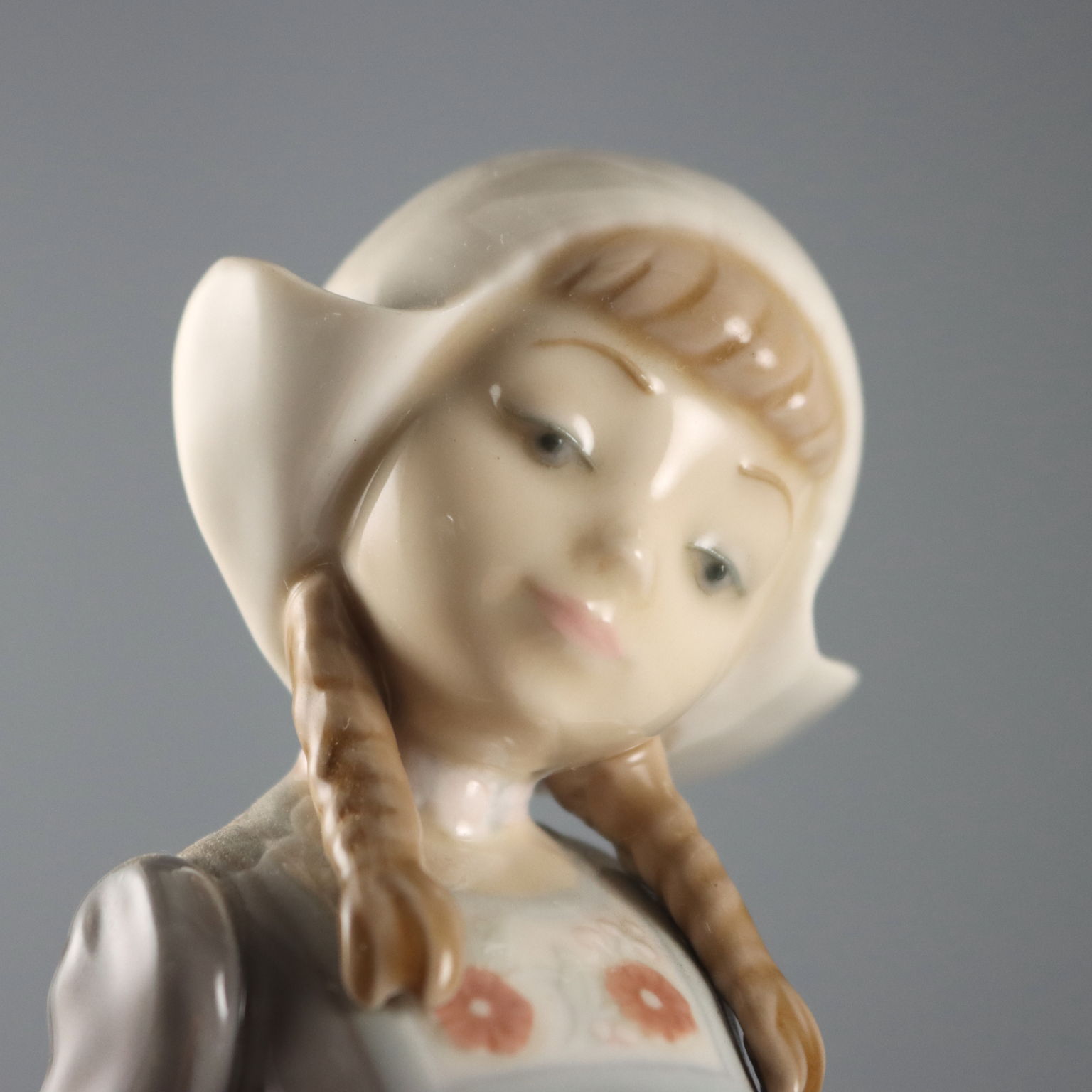 Scultura in porcellana raffigurante olandesina in posa vezzosa. Sotto la base marchio della manifattura e numero di serie.