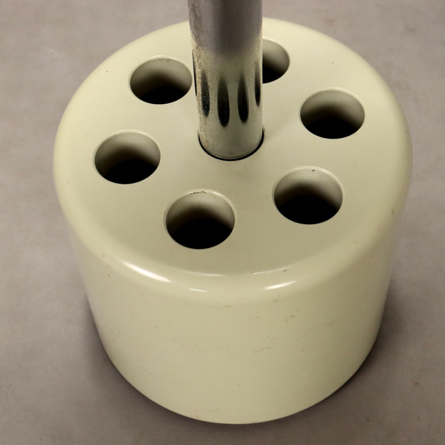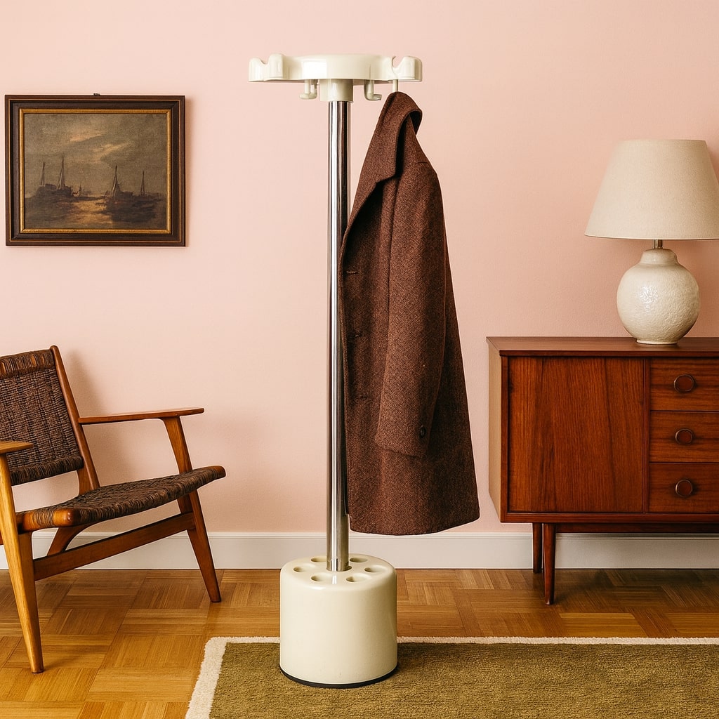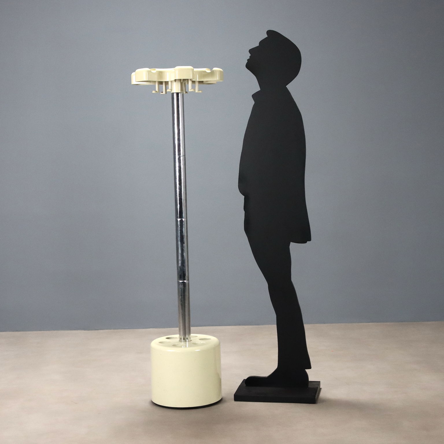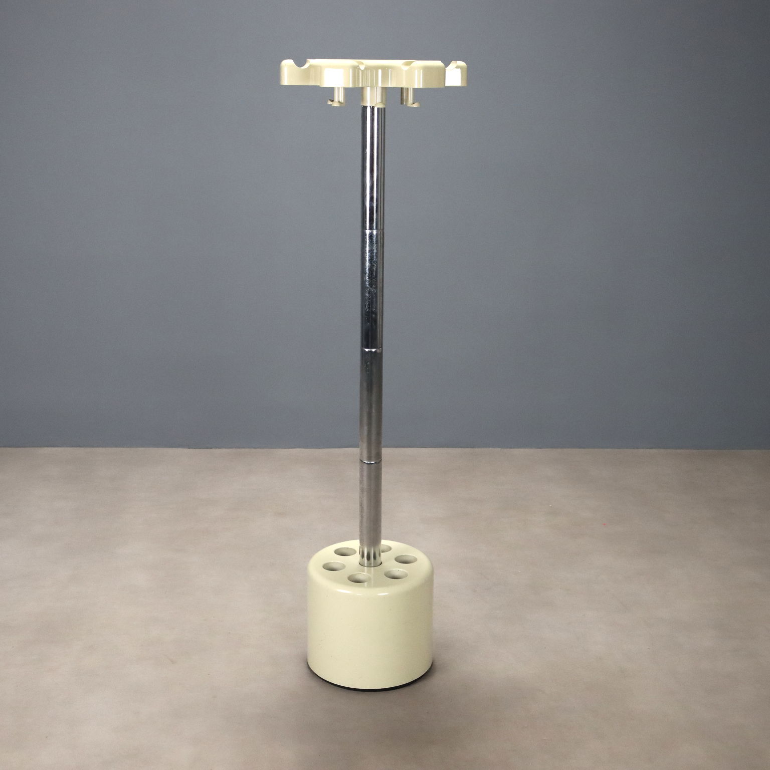 Appendiabiti con porta ombrelli in materiale plastico e metallo cromato.