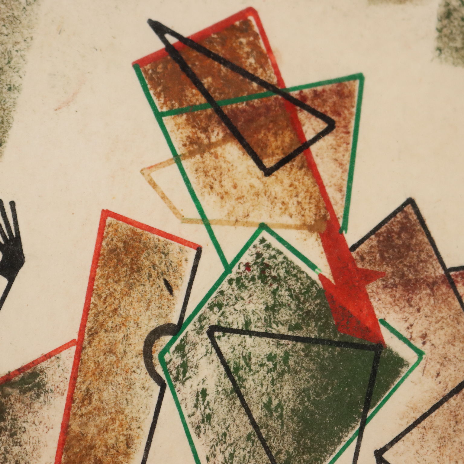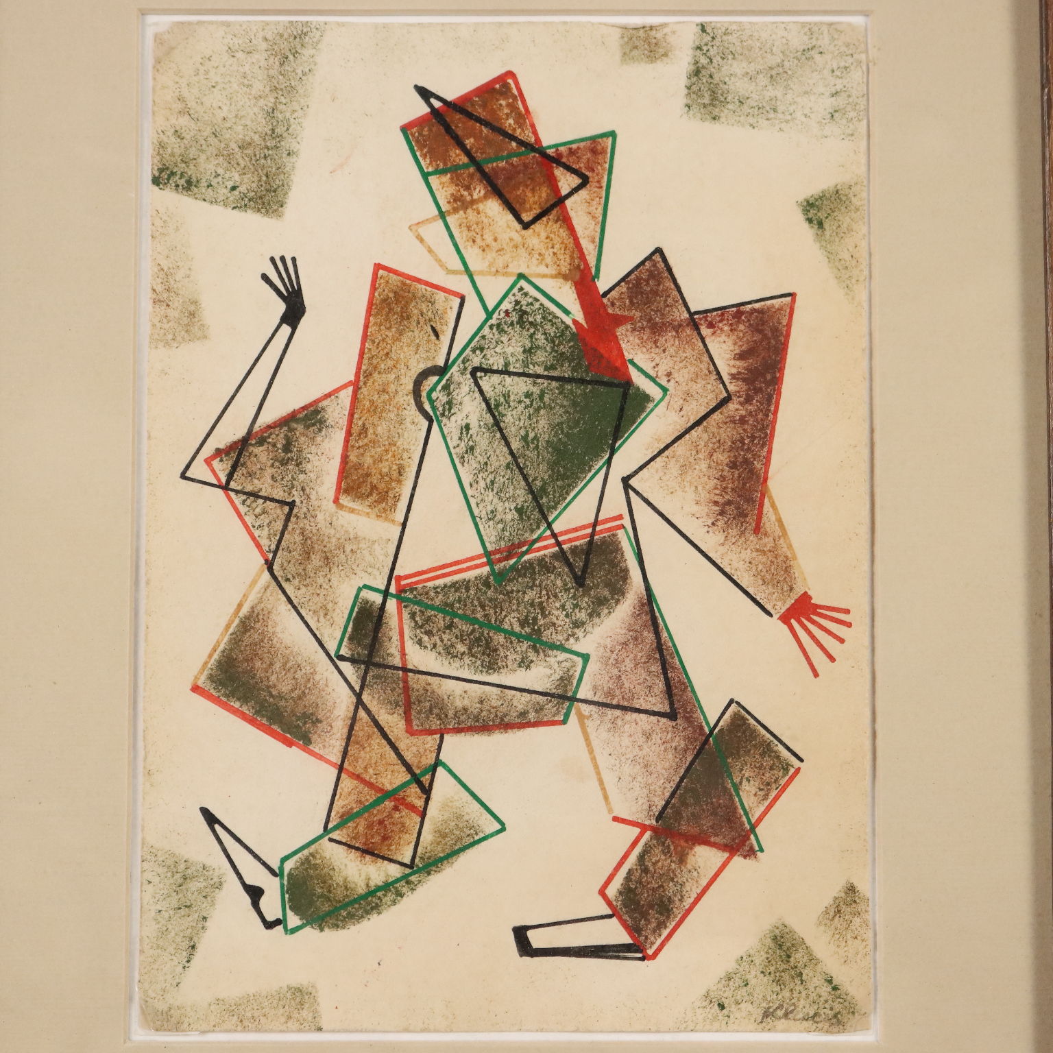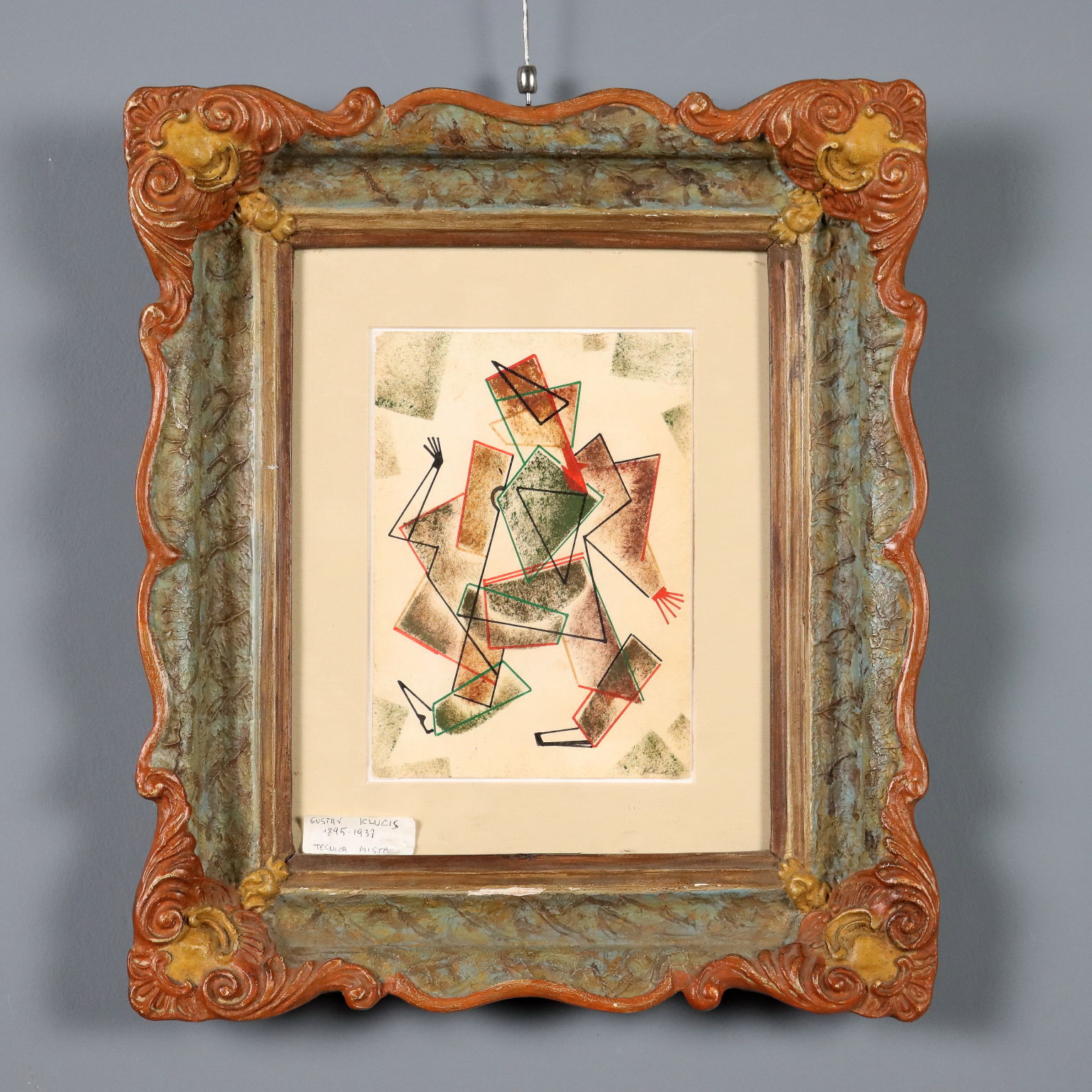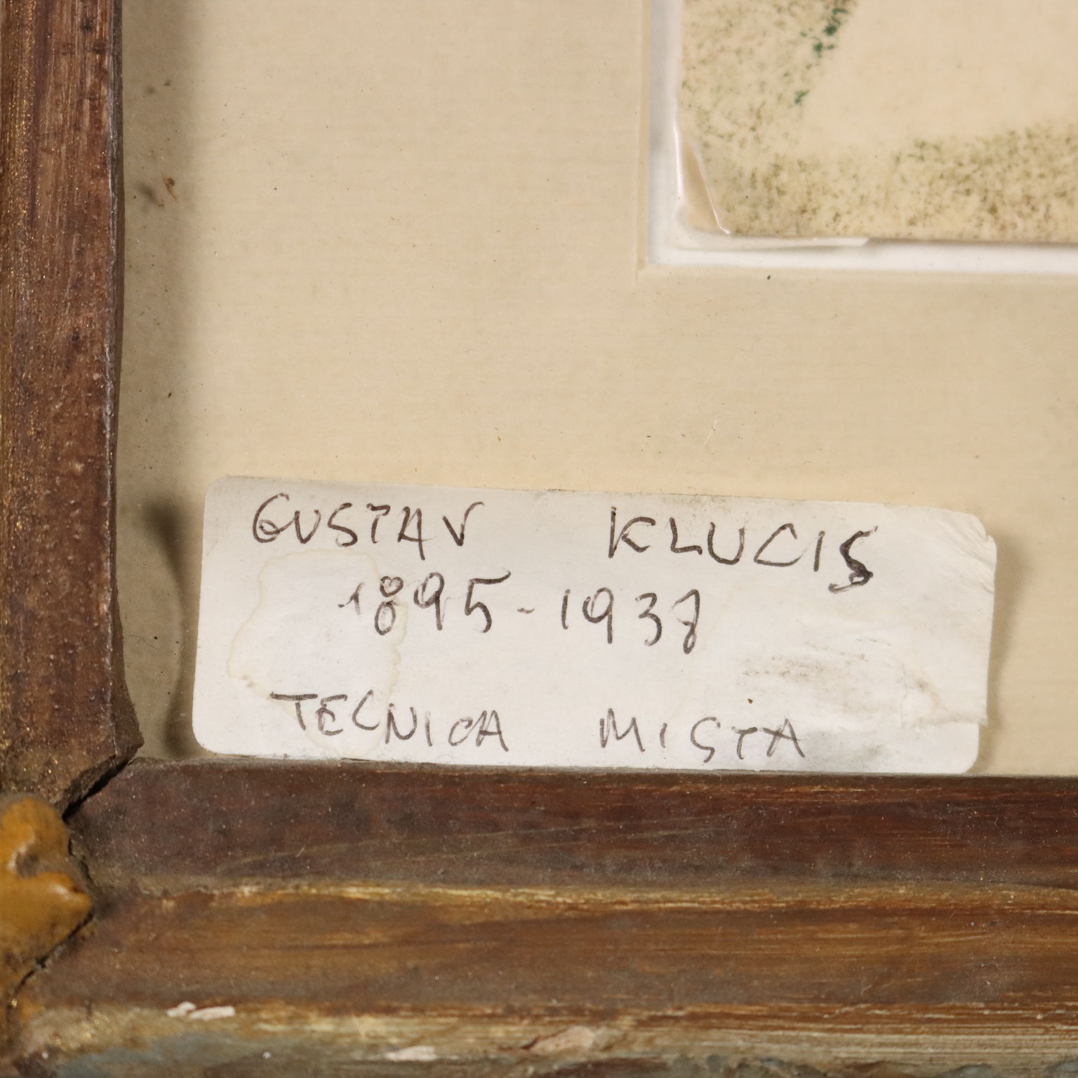 Tecnica mista su carta. Firmato in basso a destra. Gusta Klunis, artista e fotografo russo, è stato uno dei maggiori pionieri dell'avanguardia costruttivista del XX secolo, movimento artistico e architettonico nato in Russia nel 1913, che si sviluppò in parallelo alla Rivoluzione del 1917. Il suo scopo era creare un'arte con una funzione sociale utile e pratica, abbandonando l'idea dell'arte fine a sé stessa. I costruttivisti utilizzarono un linguaggio astratto geometrico per progettare oggetti, edifici e manifesti che promuovessero gli ideali della rivoluzione e contribuissero alla costruzione di una società socialista. Opera in cornice.