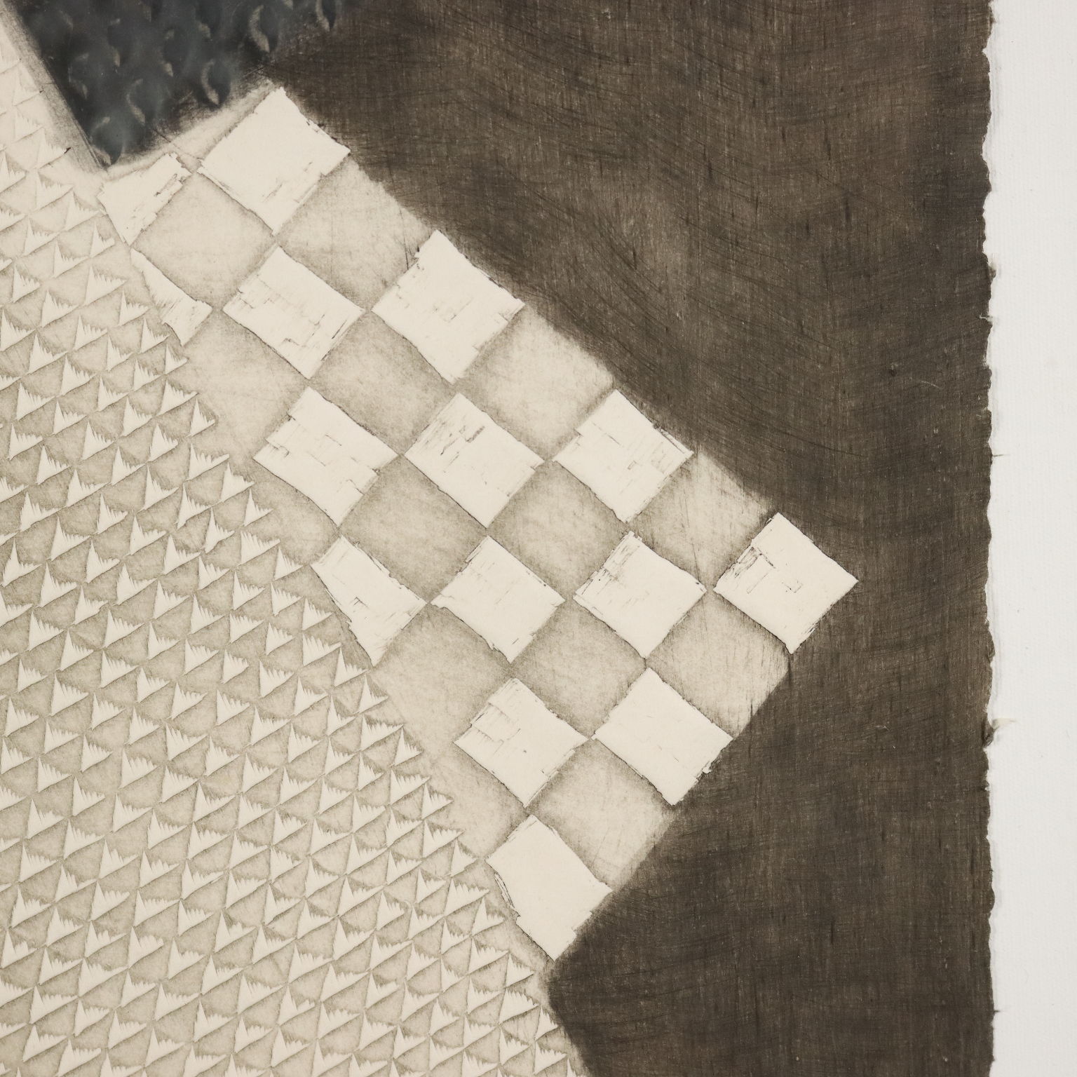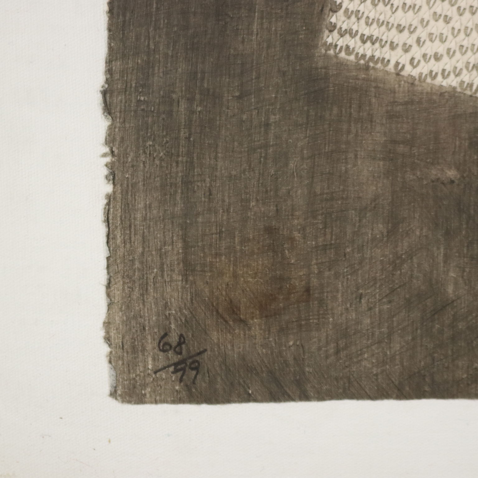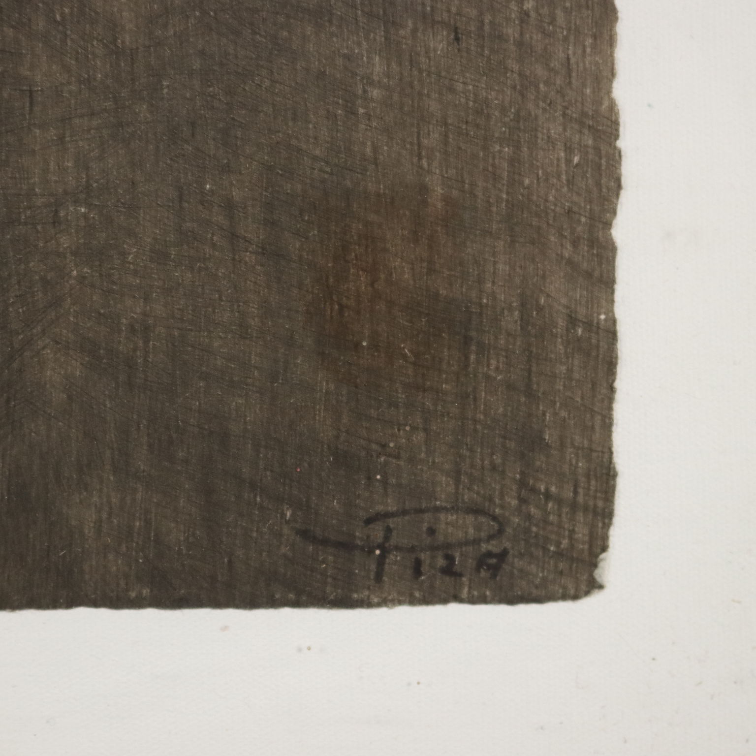 Incisione a rilievo. Firmata in basso a destra; a sinistra il numero di edizione 68/99. Piza, pittore, scultore e incisore brasiliano, si è affermato soprattutto per la sua tecnica di incisione con lo scalpello, realizzata tagliando le lastre di rame a formare piccole scaglie. In cornice.