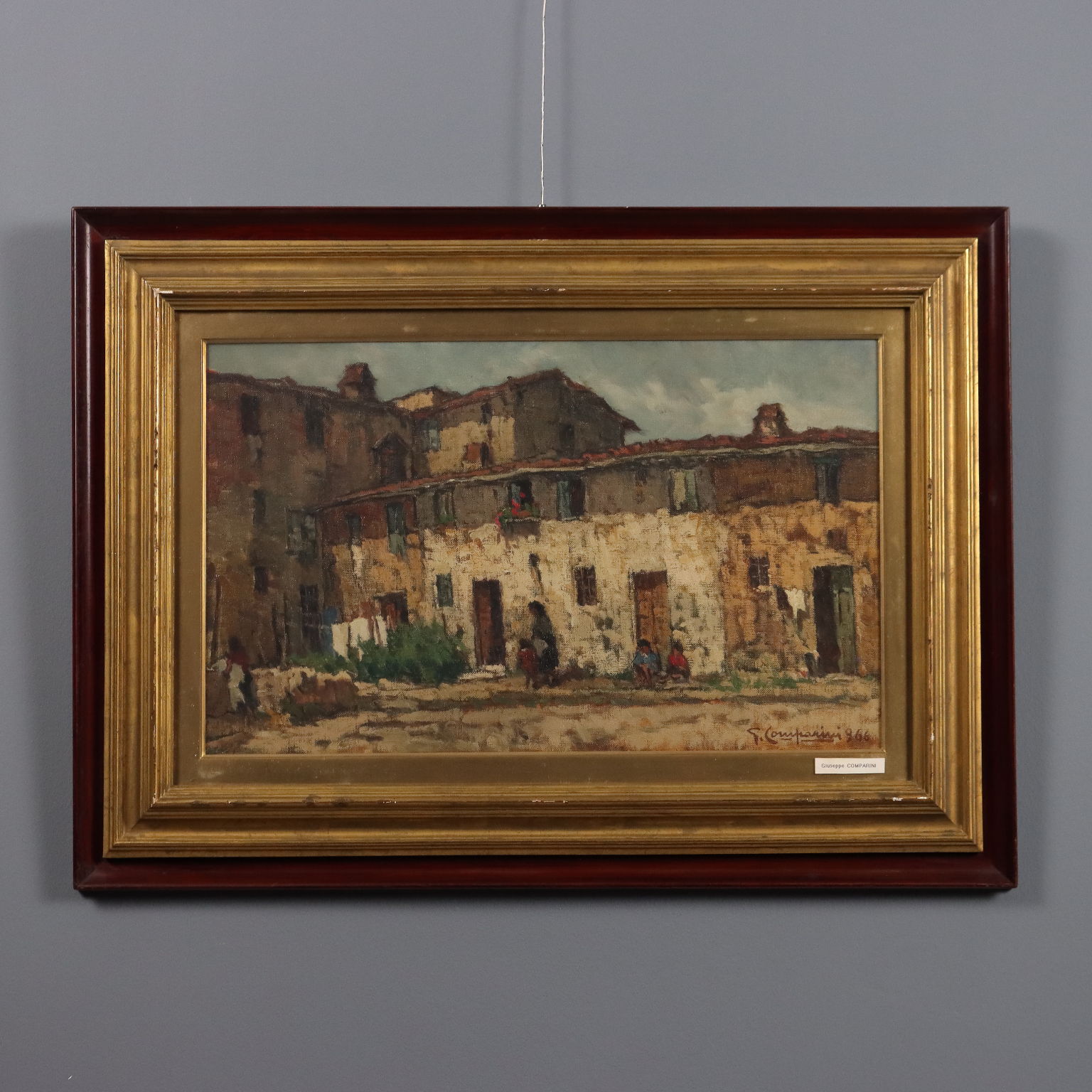 Olio su tela. Firmato e datato in basso a destra. Al verso presenti titolo, ulteriore firma e timbro della Galleria Bolzani di Milano. Giuseppe Comparini è un pittore fiorentino di chiara discendenza macchiaiola: con l'intento di rappresentare sulla tela i cambiamenti di luce nei diversi momenti della giornata. egli ha creato opere in cui le tematiche trattate - vedute, paesaggi, contadini al lavoro, la campagna toscana - pur intrise di realismo, sono impostate su giochi di luce che donano un significante accento di lirismo. La diffusione delle sue opere è legata fortemente al suo sodalizio col gallerista milanese Guido Bolzani (1957), che ha ospitato periodicamente esposizioni dell'artista. Opera in cornice.