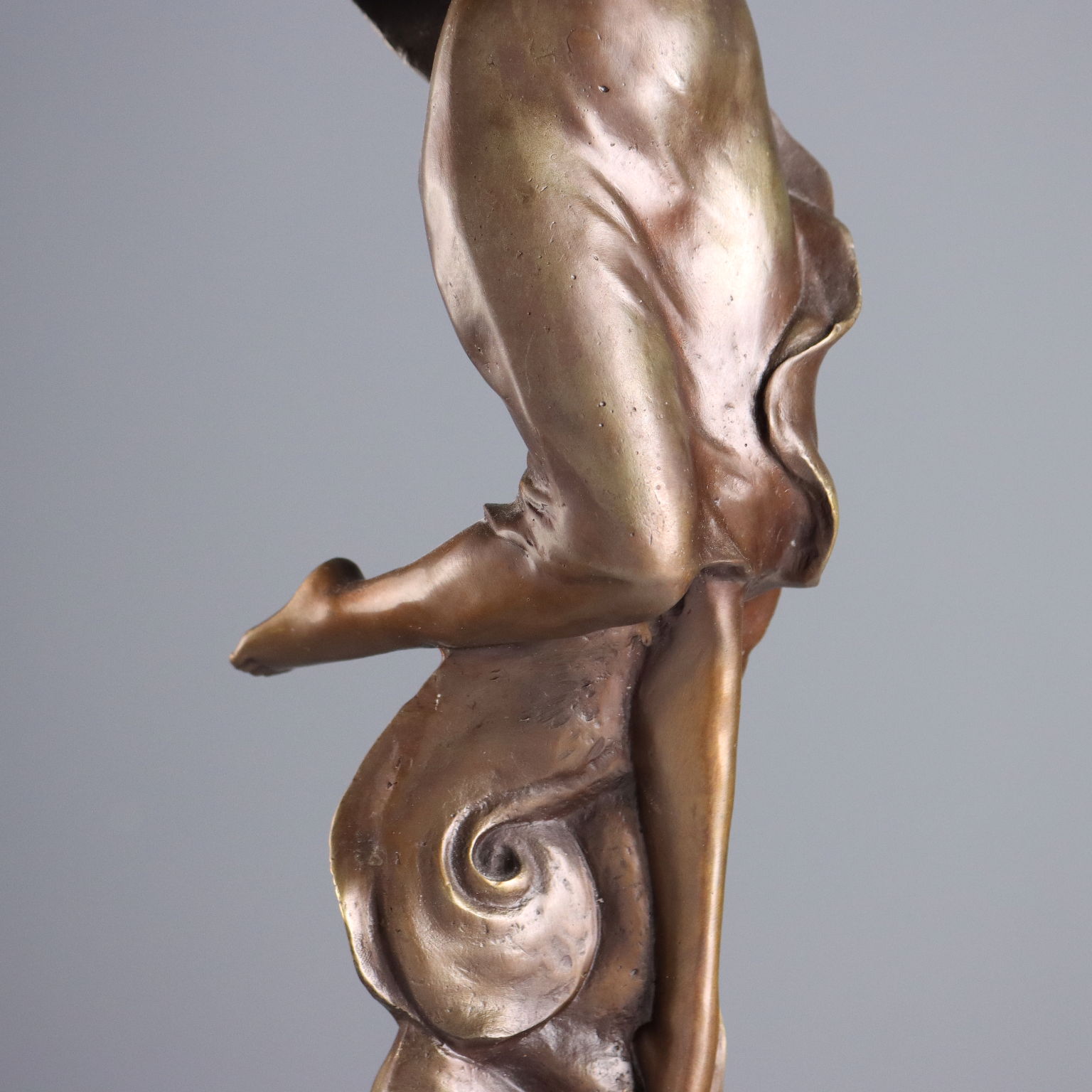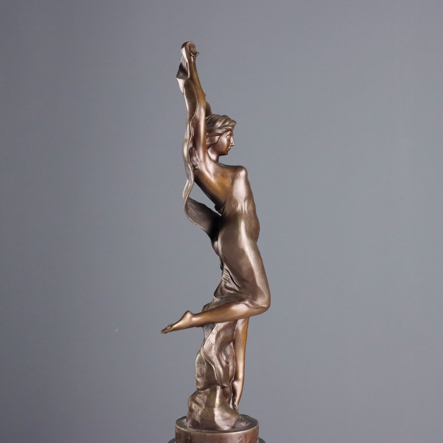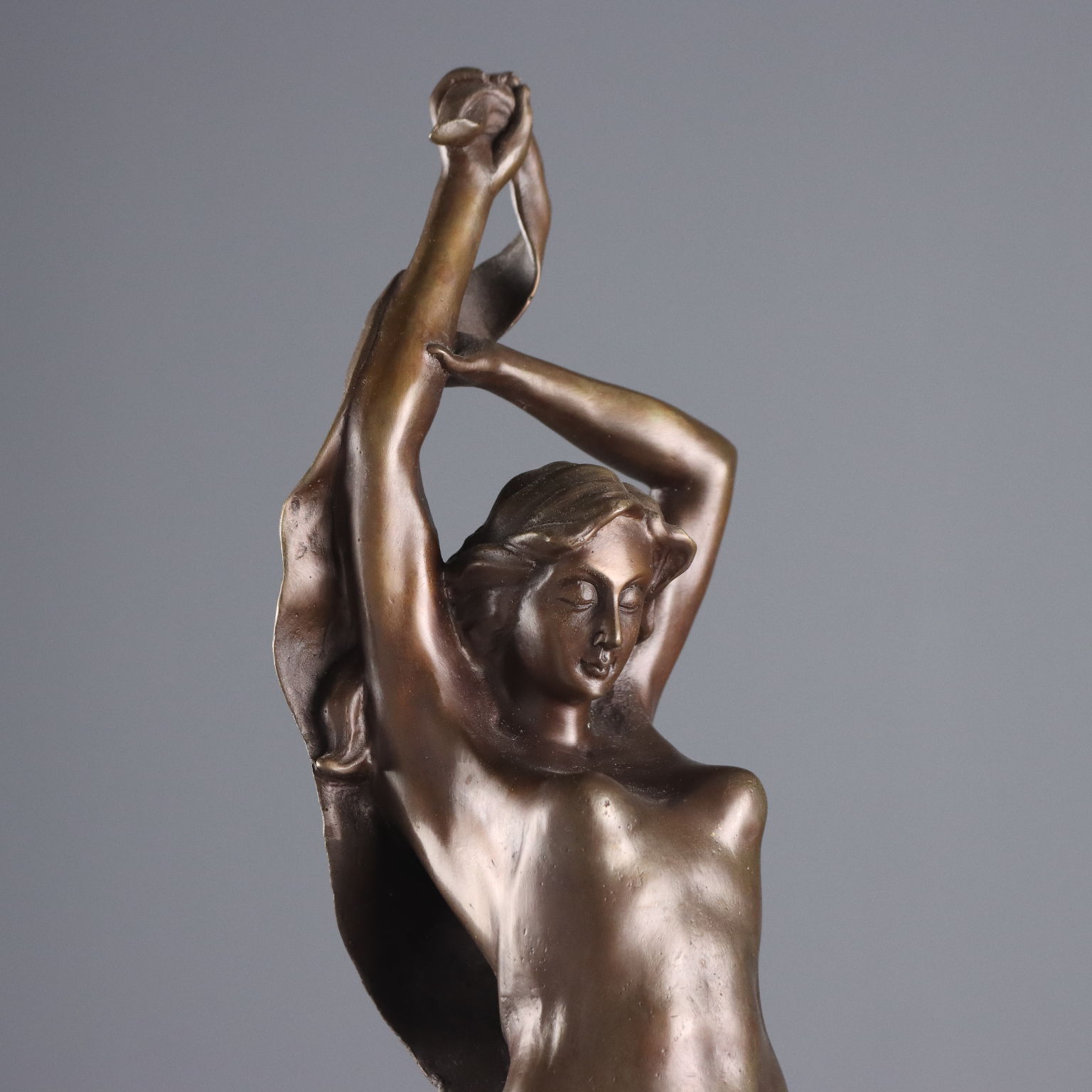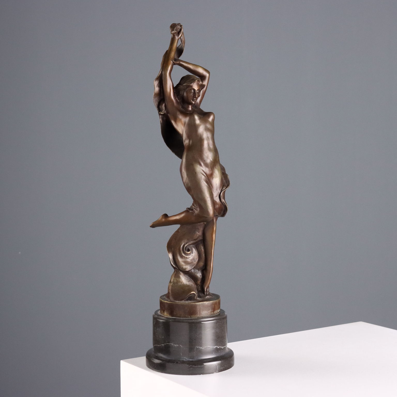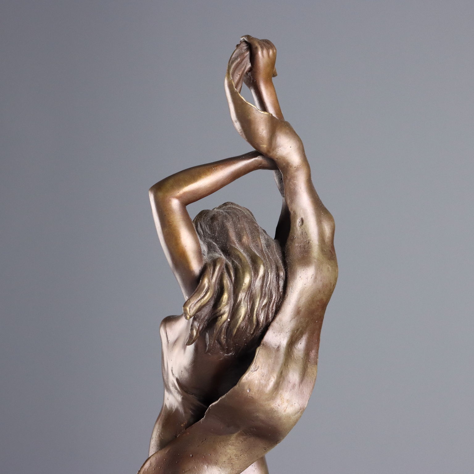 Scultura in bronzo su base in marmo nero raffigurante nudo femminile.