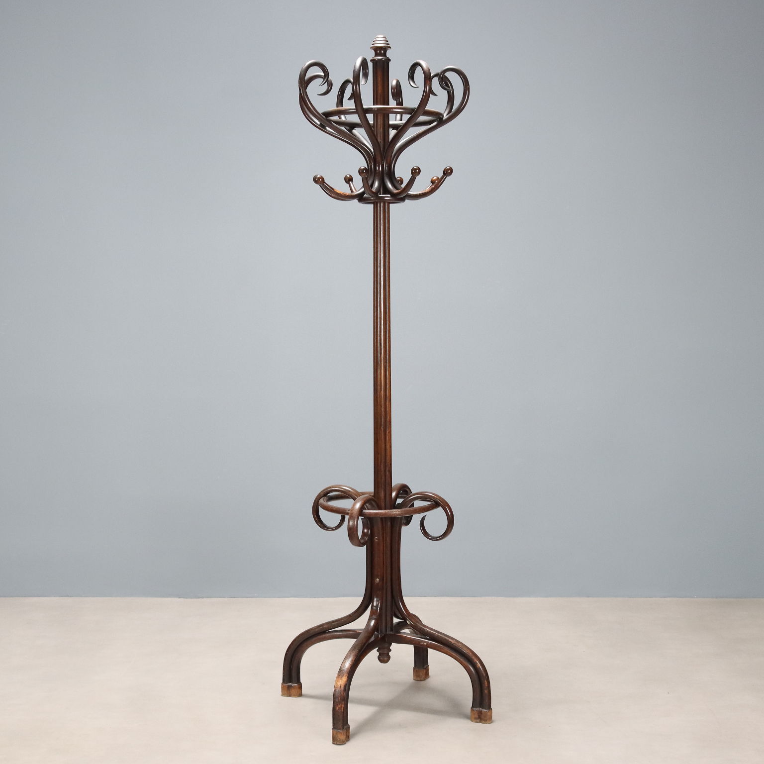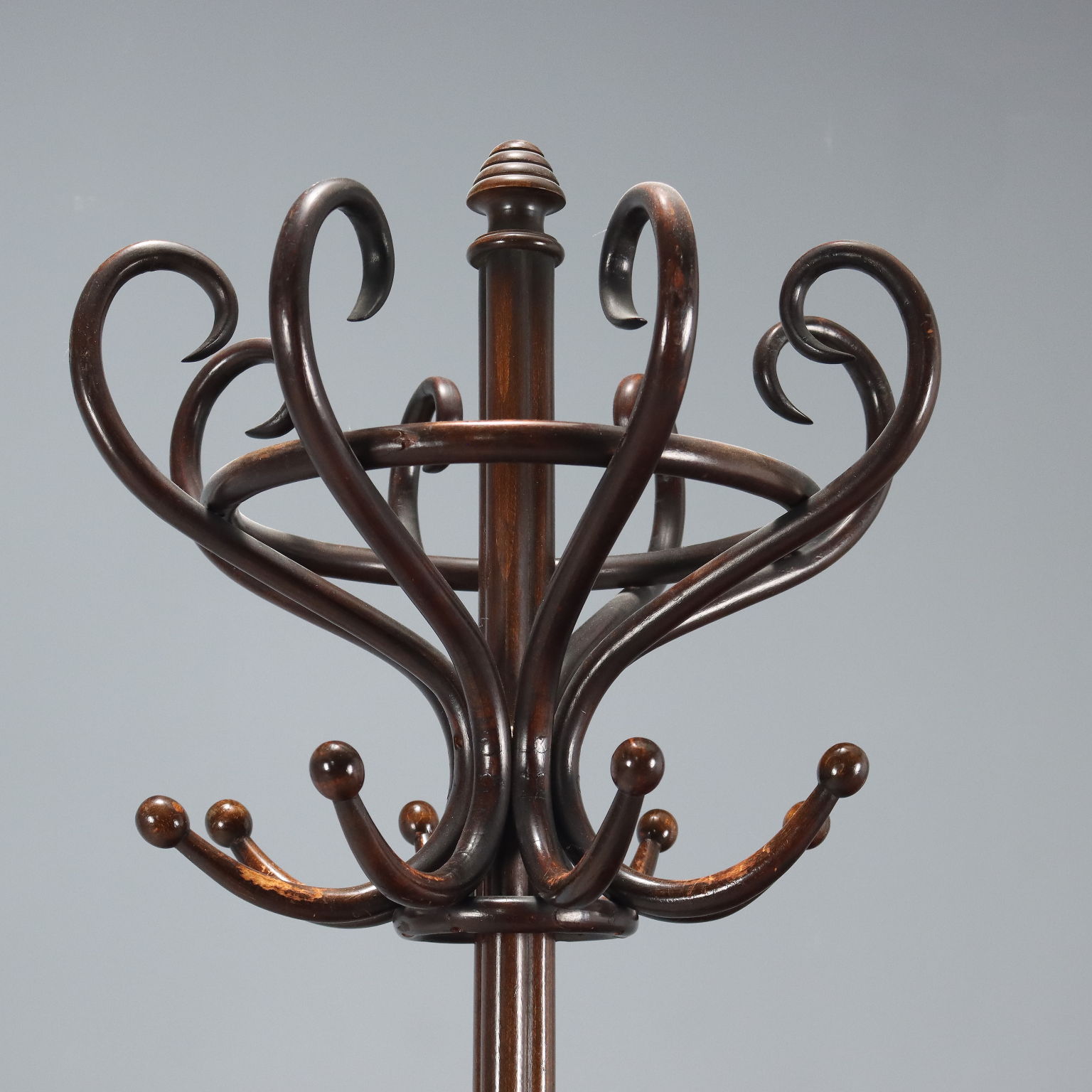 Appendiabiti in stile Thonet in faggio ricurvo tinto noce. Austria, inizio XX Secolo.