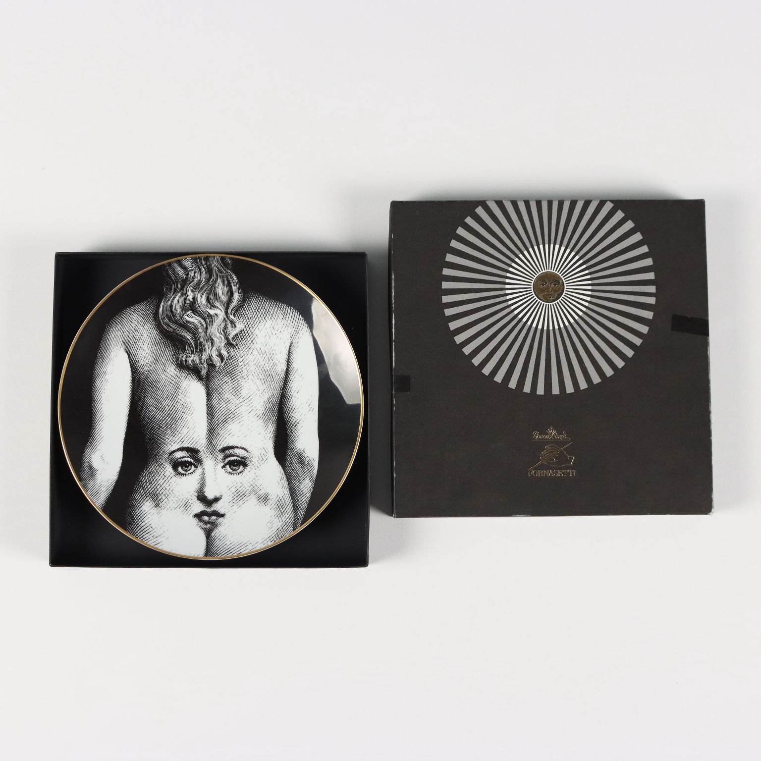 Piatto Piero Fornasetti per Rosenthal Temi e Variazioni numero 28. Scatola originale.