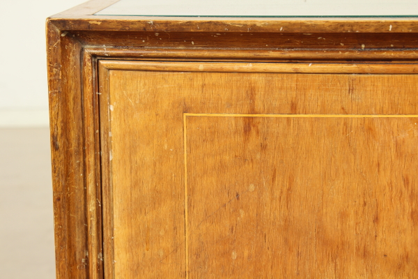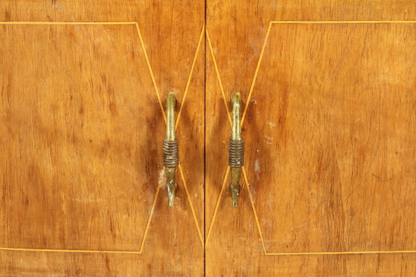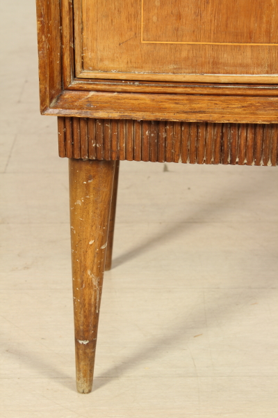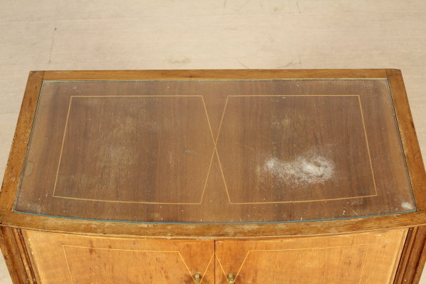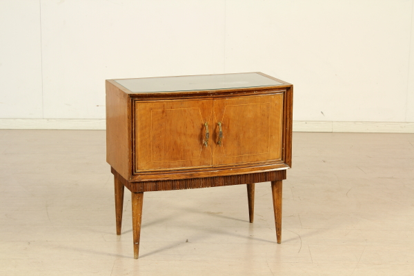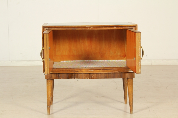 Comodino; legno impiallacciato ciliegio e noce. Buone condizioni, presenta piccoli segni di usura.