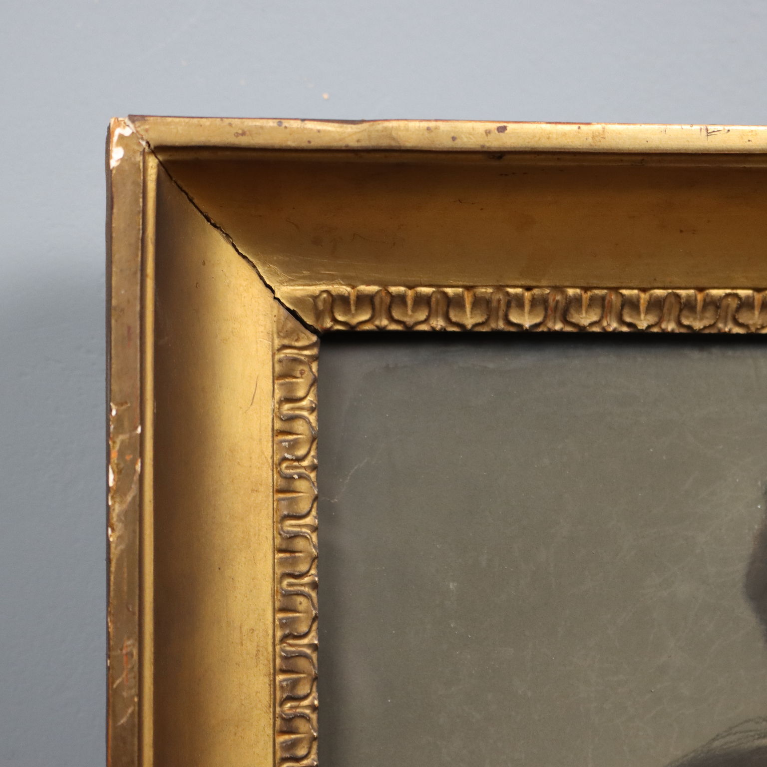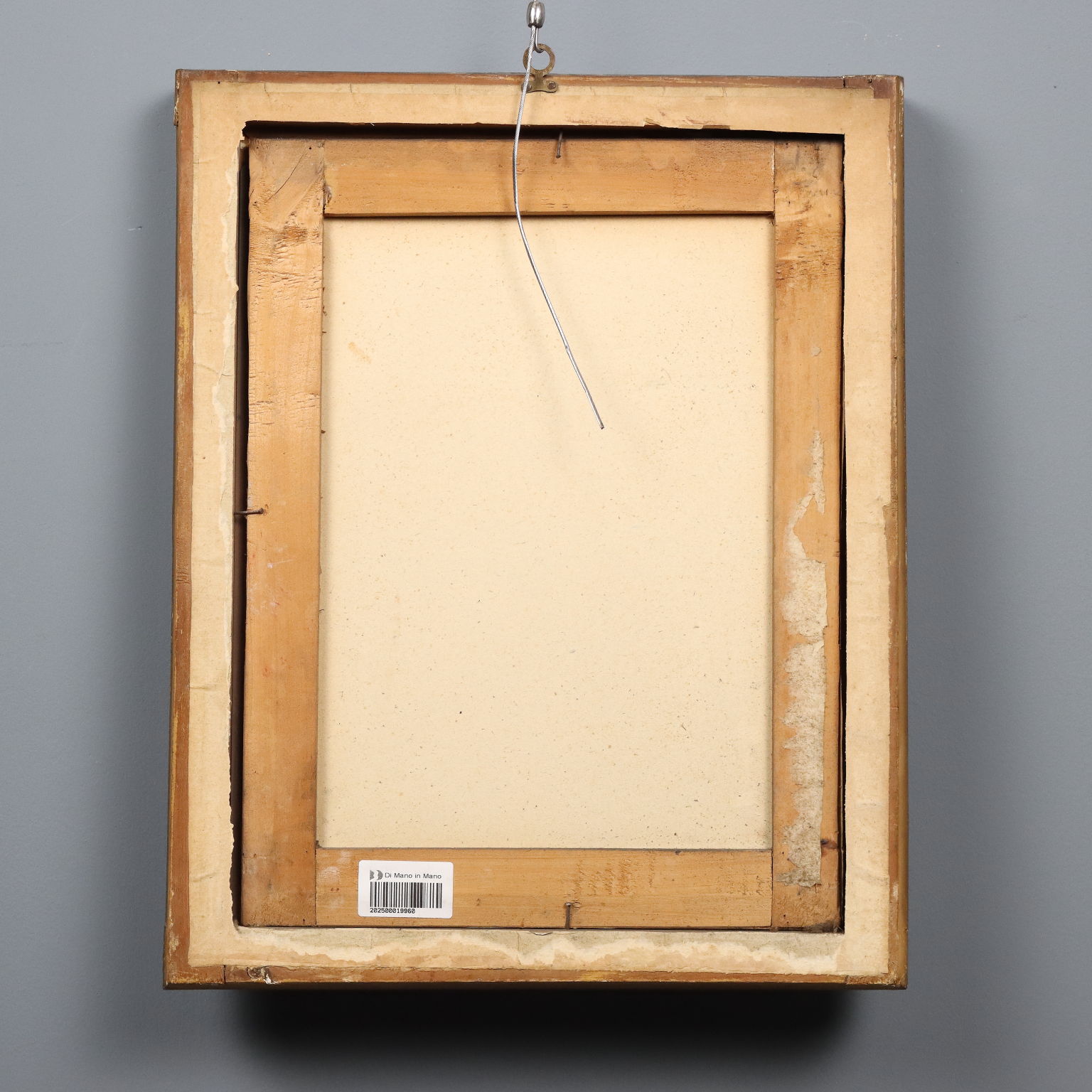 Pastelli su carta, applicata a telaio ligneo. Ritratto di giovane donna che ostenta sia una pettinatura che dei gioielli particolari, piuttosto eccentrici soprattutto il cammeo montato su cinturino e applicato sul capo. L'opera è presentata in cornice dorata del XIX secolo, con vetro coevo.