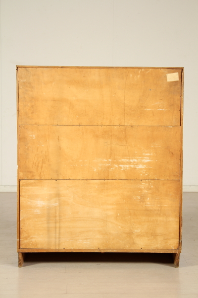 Etagere; legno impiallacciato rovere. Discrete condizioni; presenta alcuni segni di usura.