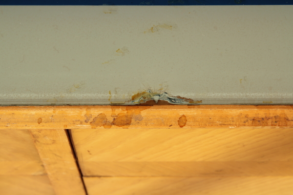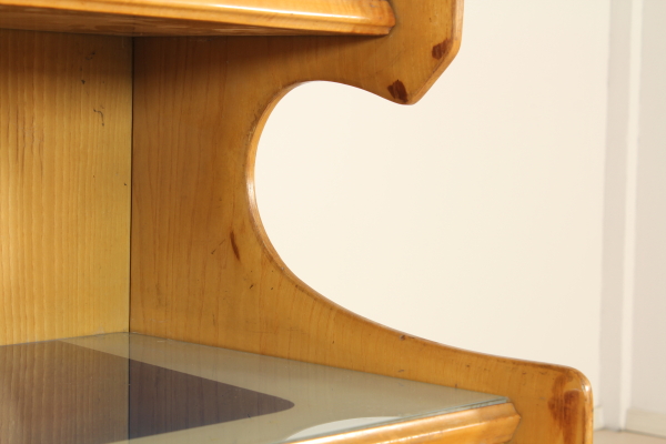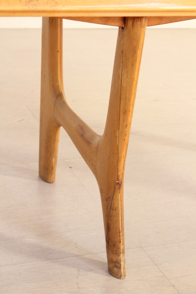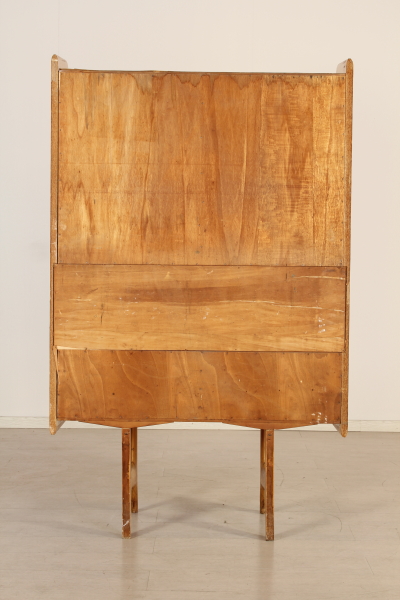 Credenza anni 40-50; legno impiallacciato frassino, maniglie in ceramica.