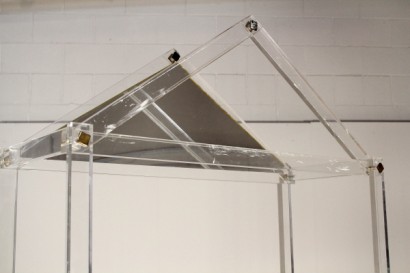 Appendiabiti in plexiglas; plexiglas, vetro, ottone. Discrete condizioni, presenta alcune rotture sulle traversine in plexiglass.