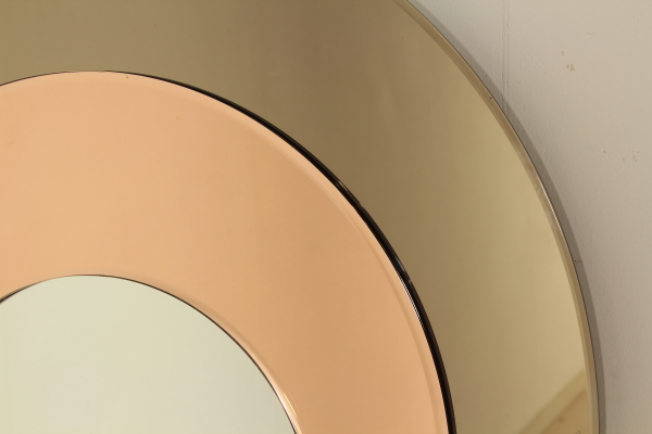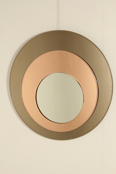 Specchio montato su pannello in legno; vetro a specchio a due colori. Buone condizioni, presenta piccoli segni di usura.