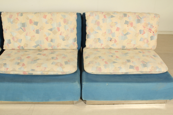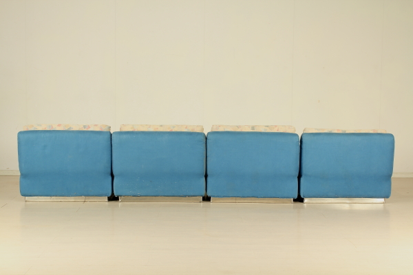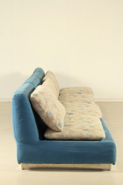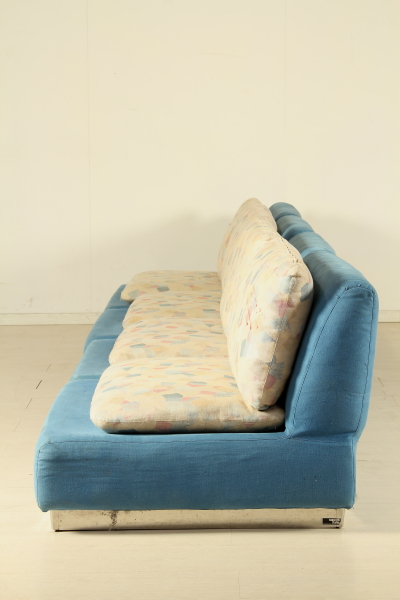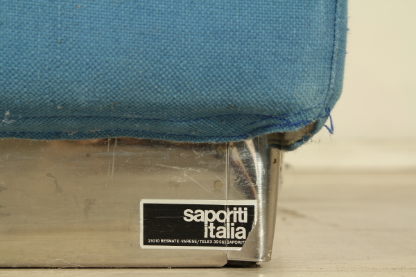 Divano "Saporiti". componibile a quattro elementi; imbottitura in espanso, rivestimento in tessuto. Discrete condizioni, presenta alcuni segni di usura.