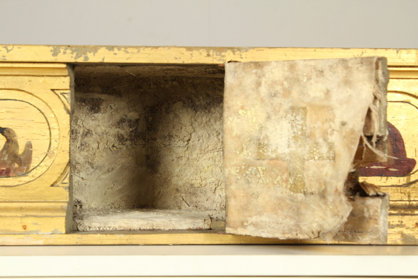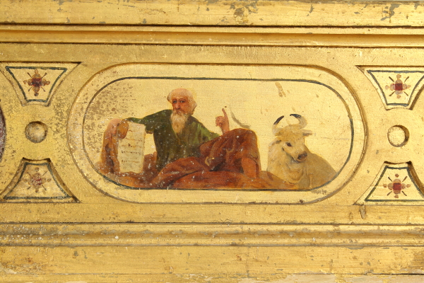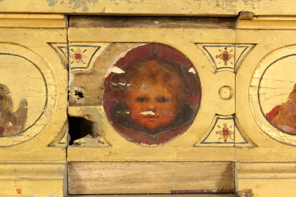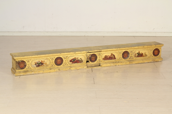 Basamento con fronte intagliato. Riserve dipinte in policromia corrente neoraffaellita.