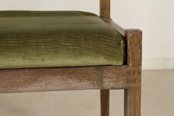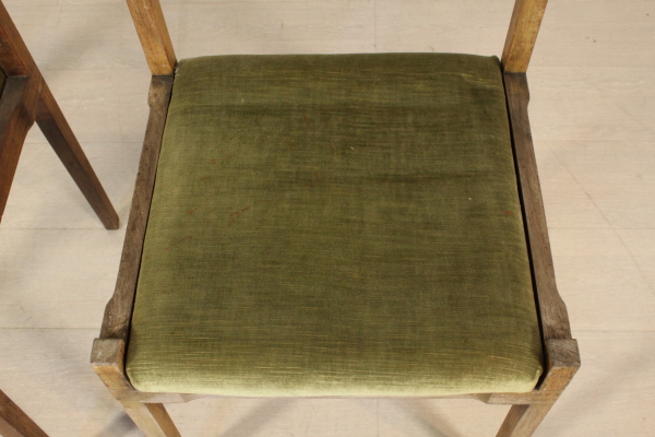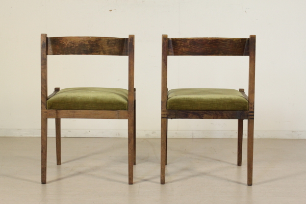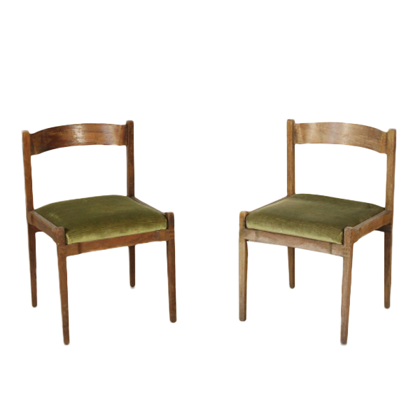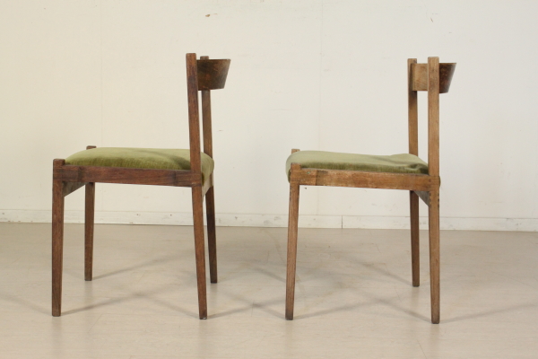 Coppia di sedie Cassina; legno di faggio, imbottitura in espanso, rivestimento in velluto.