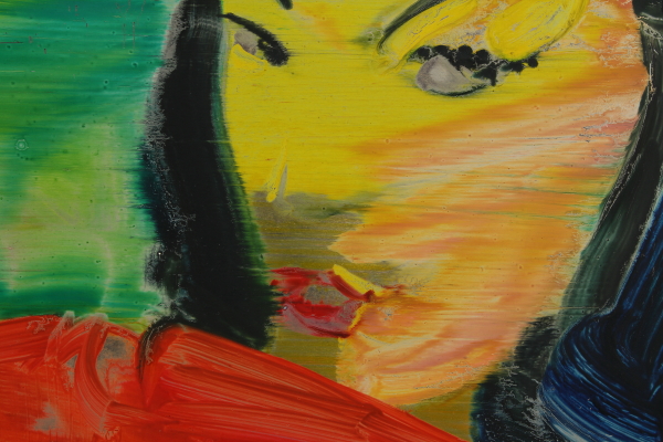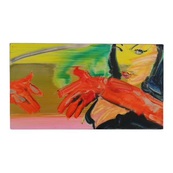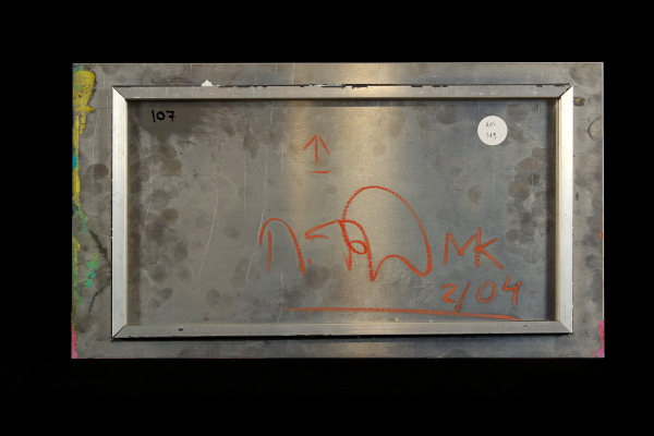 Olio su alluminio. Firmato e datato al retro. Matthias Köster è senza dubbio un pittore cinefilo: i suoi dipinti bloccano l'inquadratura mancante, quella che non esiste, per permettere che la nostra immagine sognante si proietti sullo schermo. Le forti influenze cinematografiche derivano dalla Roma barocca della "Dolce vita", dal gusto psico-surrealista nei rapporti sadomasochisti di "Belle de jour", dalla folle ispirazione all'opera d'arte totale di "Fitzcarraldo" e "Aguirre", dall'ostentazione parossistica della "Grande abbuffata" e dal pittoricismo paludoso negli stati del sud America nel cinema di Russ Meyer. Ciò che caratterizza, inoltre, l'artista è l'utilizzo dell' alluminio come supporto pittorico; questo materiale, che premette trasparenza e profondità, richiede velocità d'esecuzione e di conseguenza i dipinti vengono eseguiti di getto. (da "Matthias Köster, Allucinezione" catalogo della mostra, CorsoVeneziaOtto, dicembre 2005-gennaio 2006).